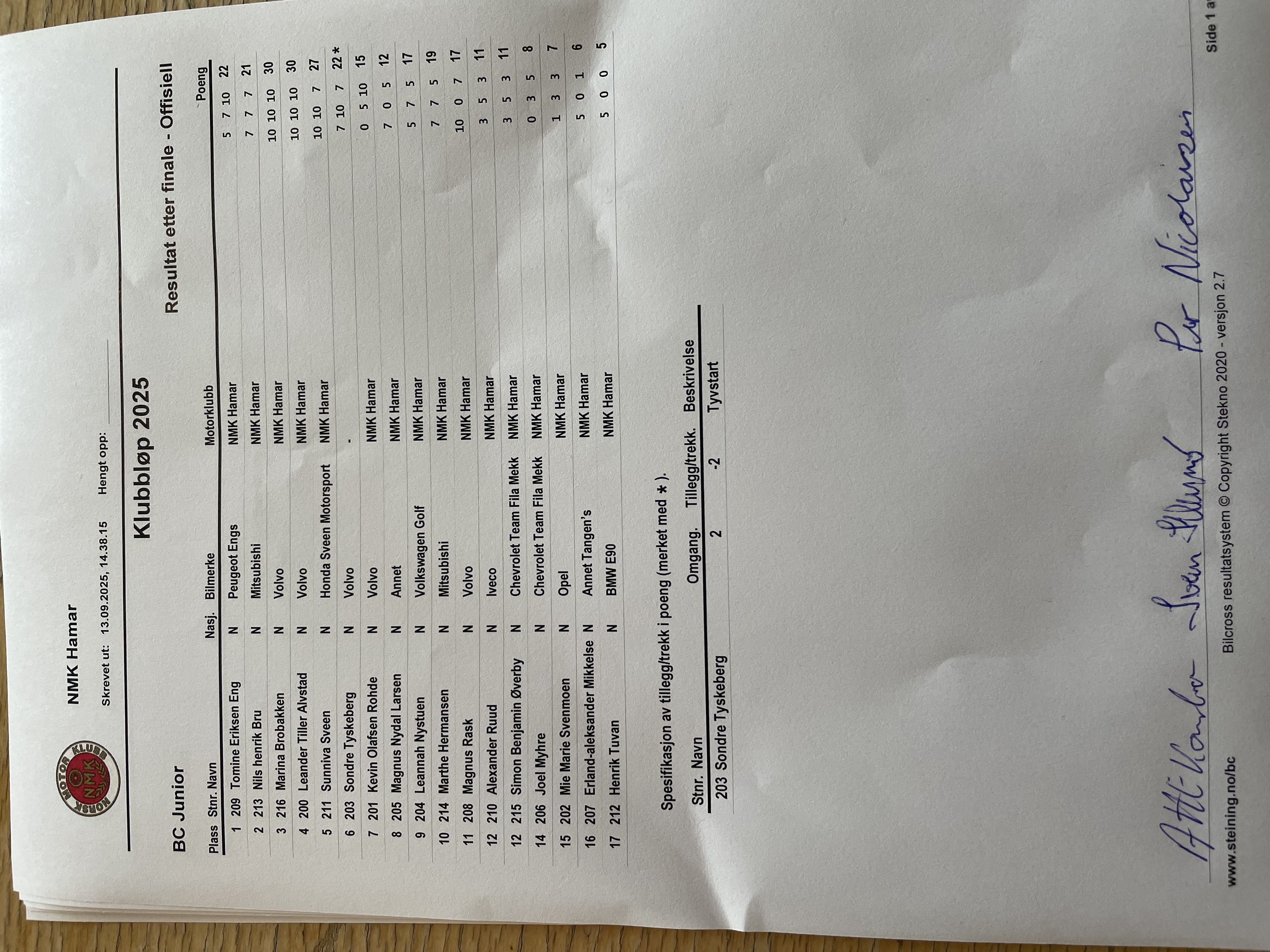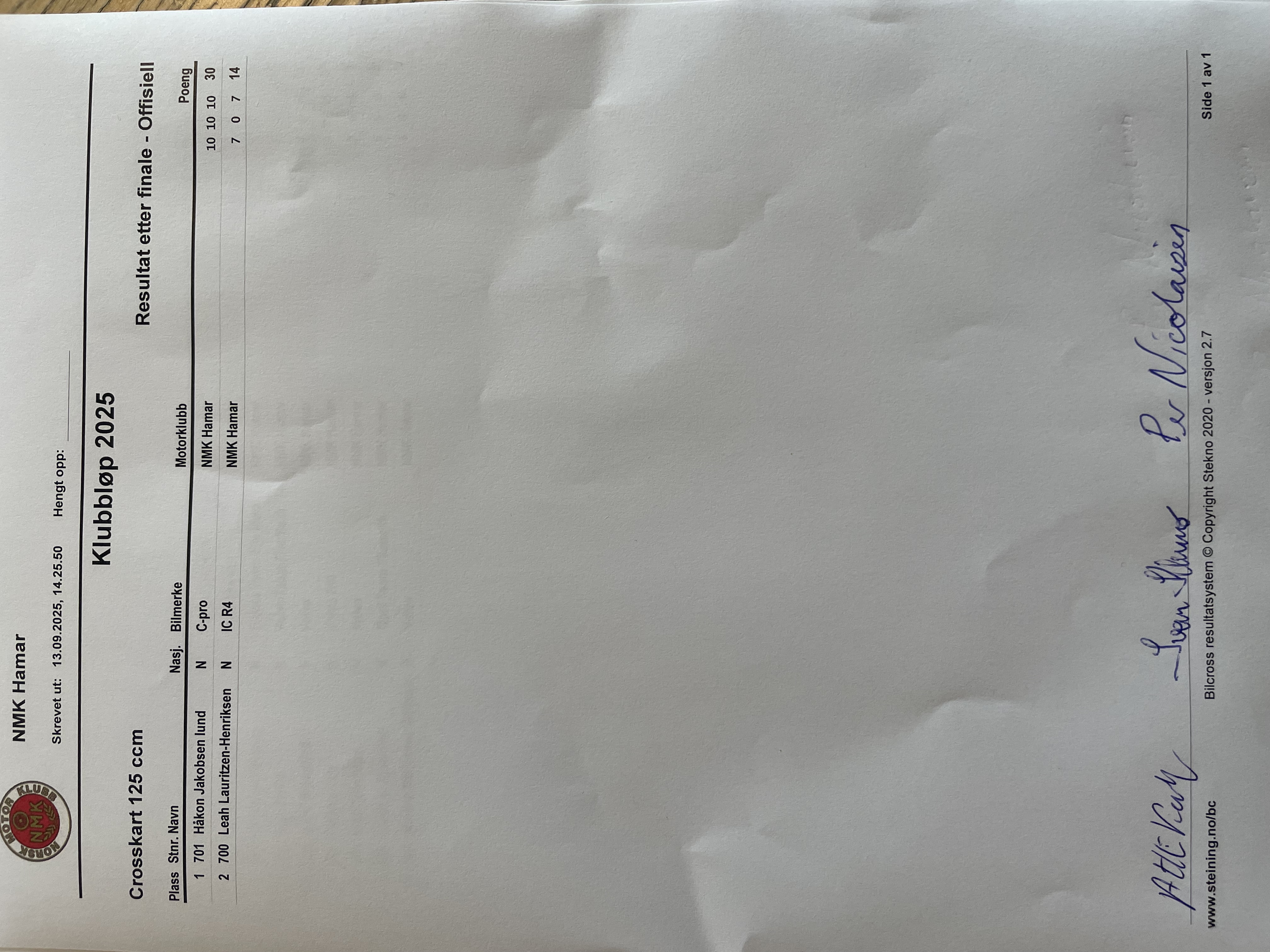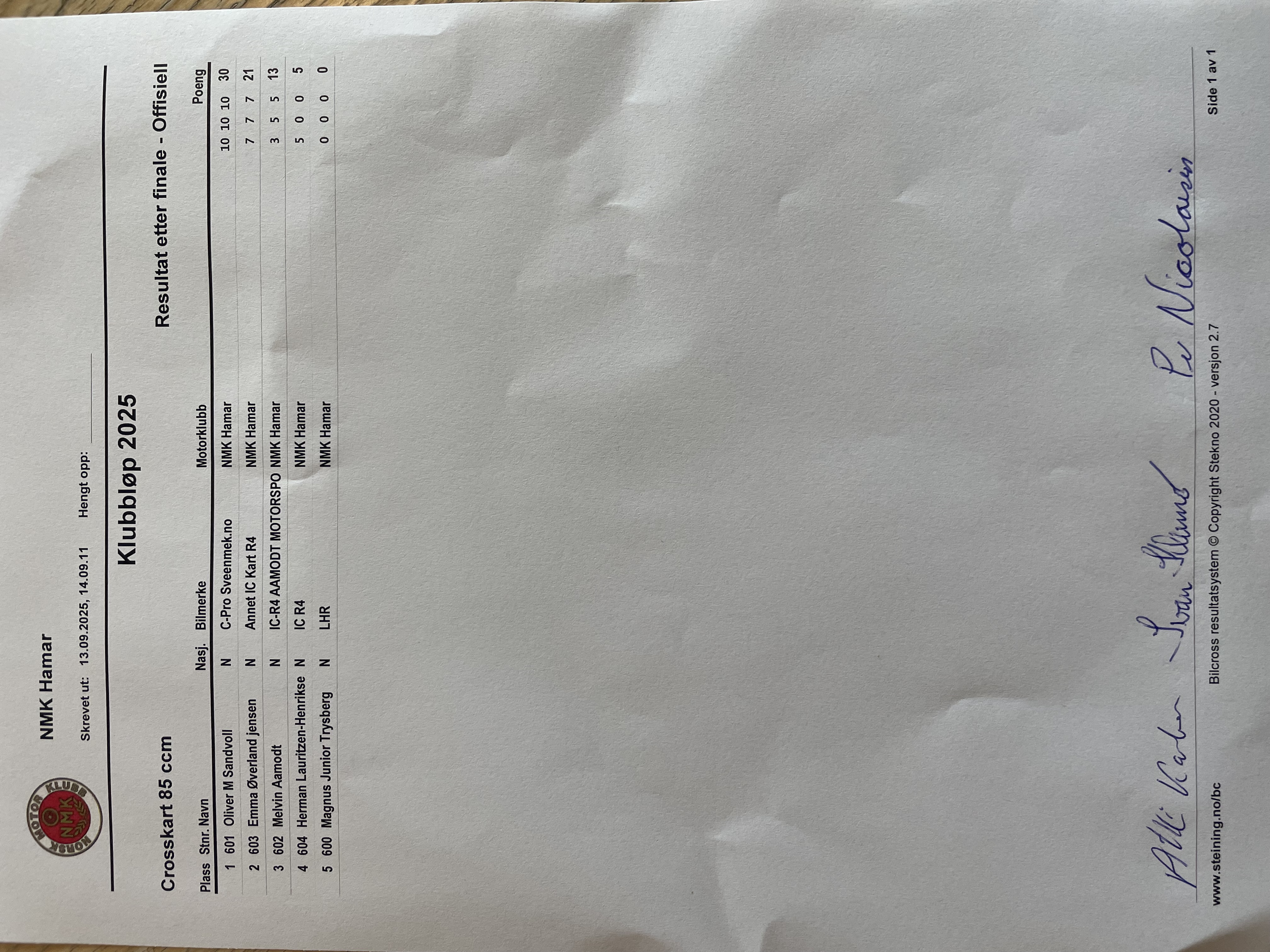 Uoffisiell resultatliste - Crosskart 85 ccm