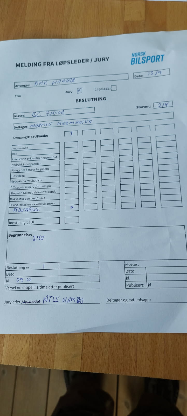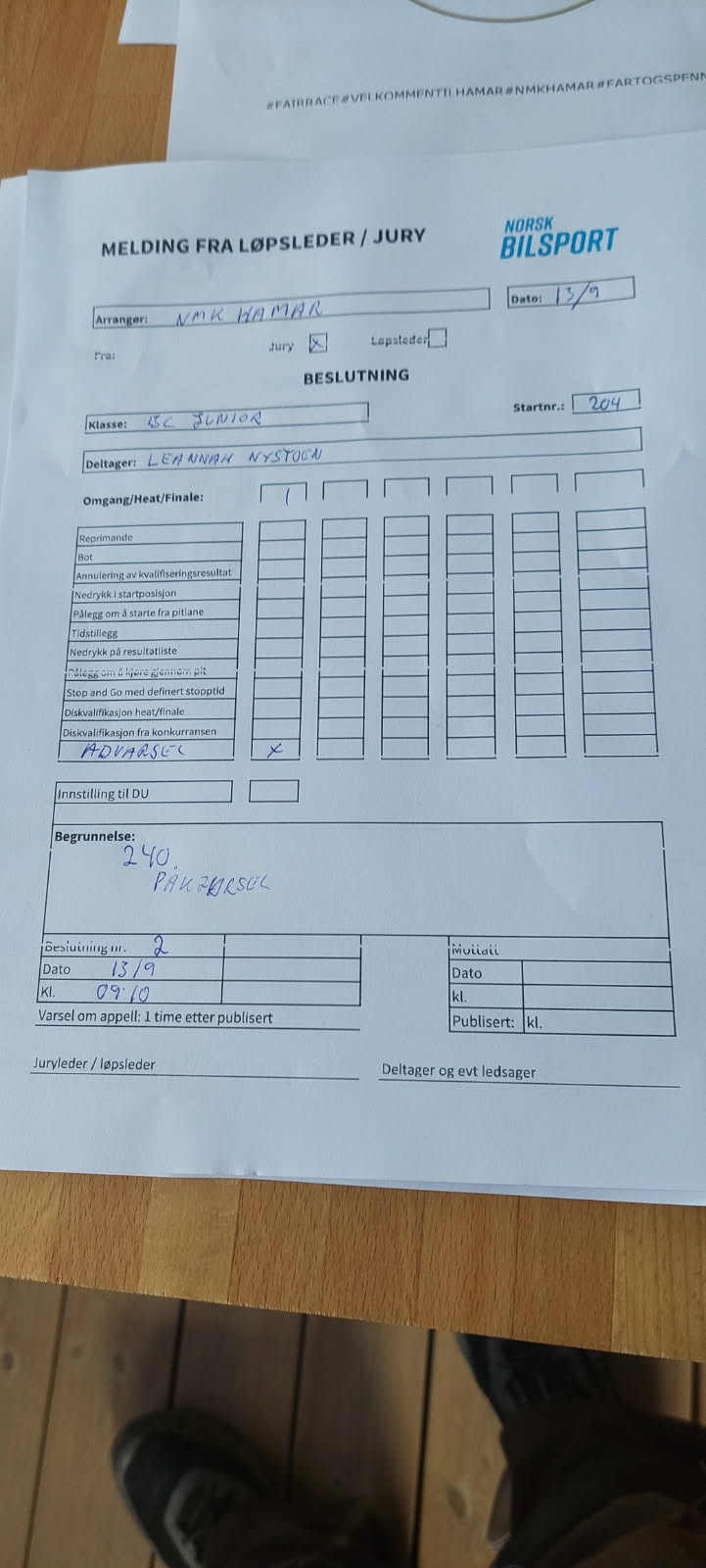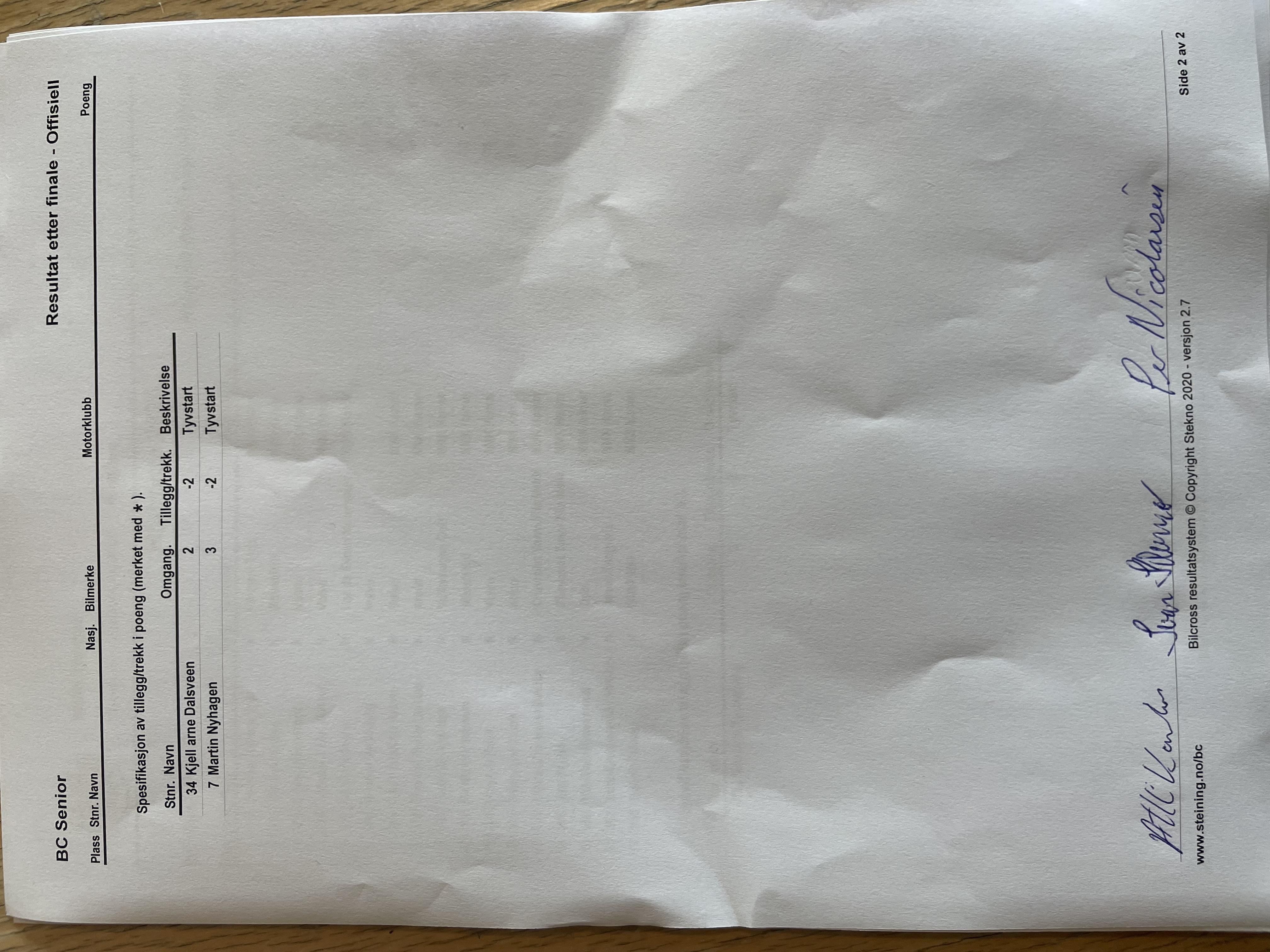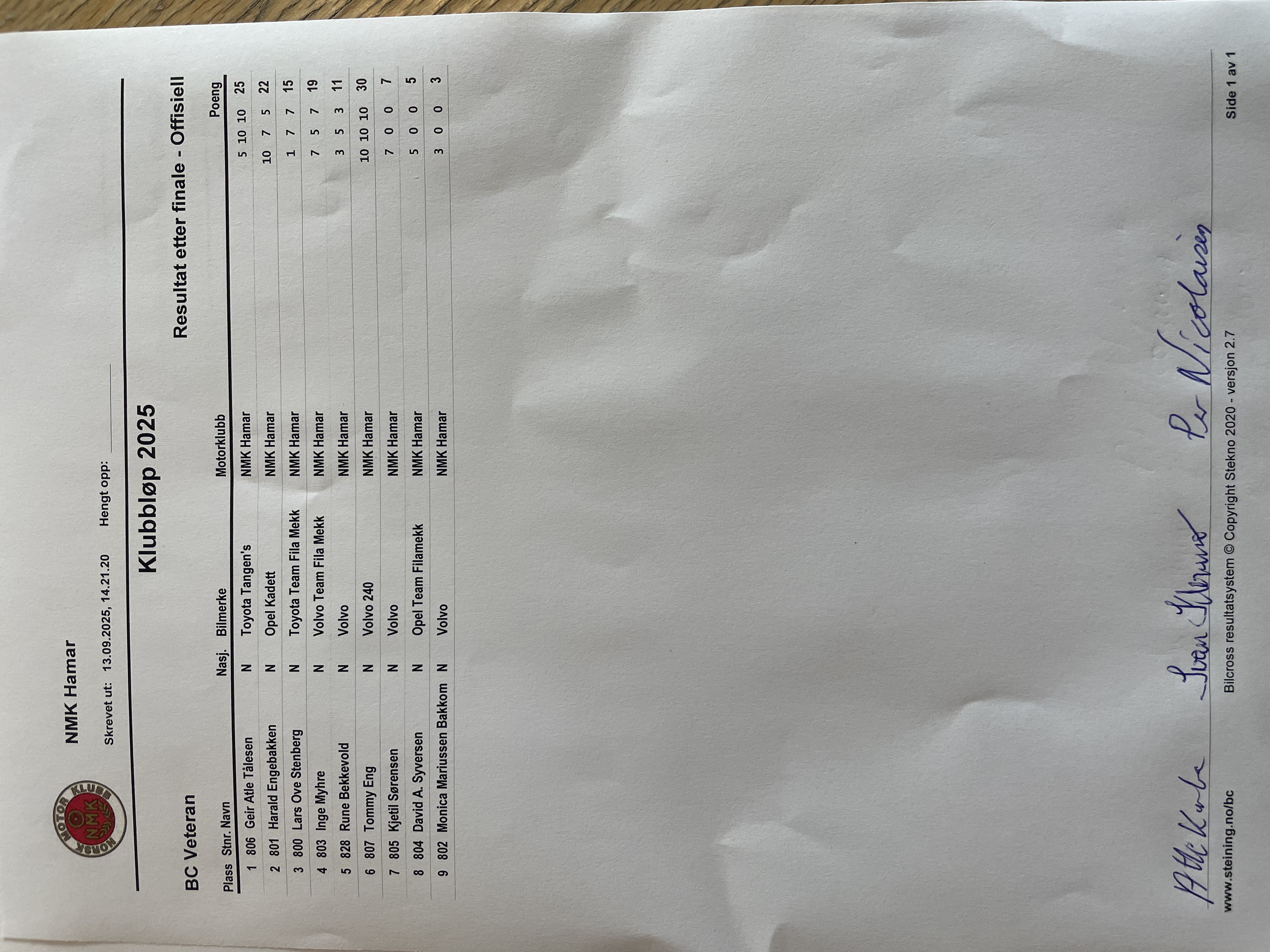 Uoffisiell resultatliste - Crosskart 85 ccm