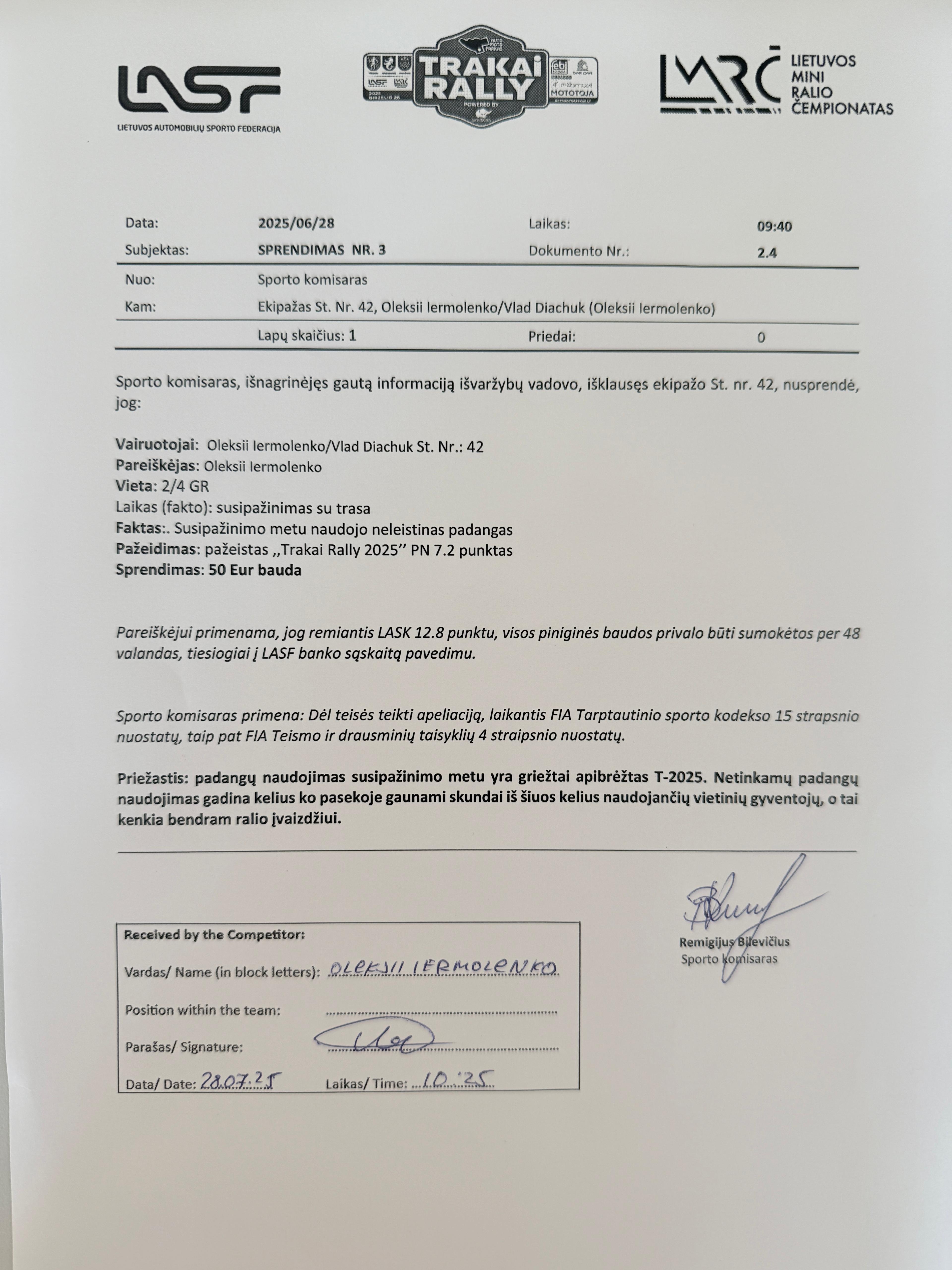 02 | Varžybų komisaro dokumentai | Steward documents