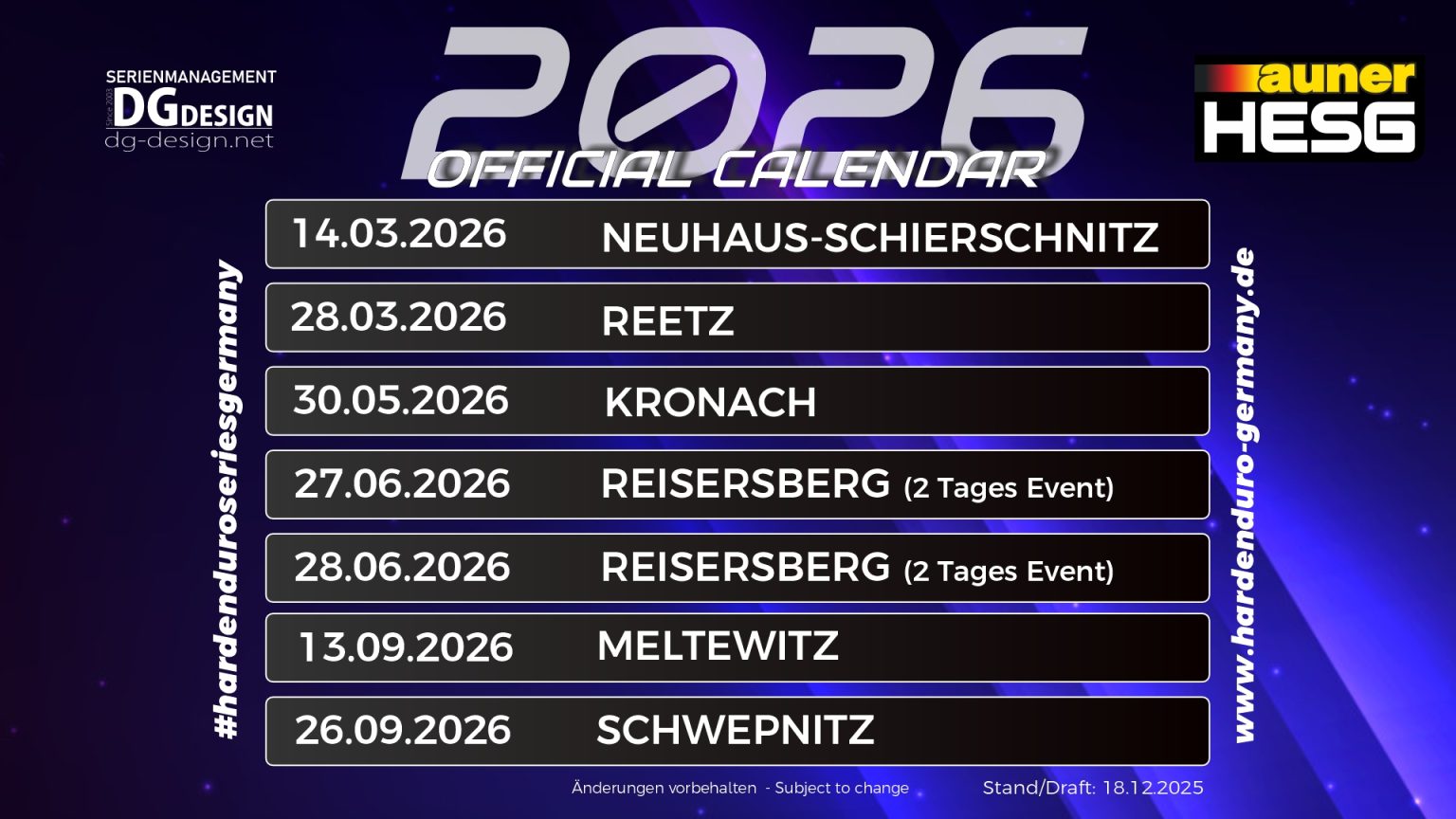 Offizielle Termine/Dates 2026