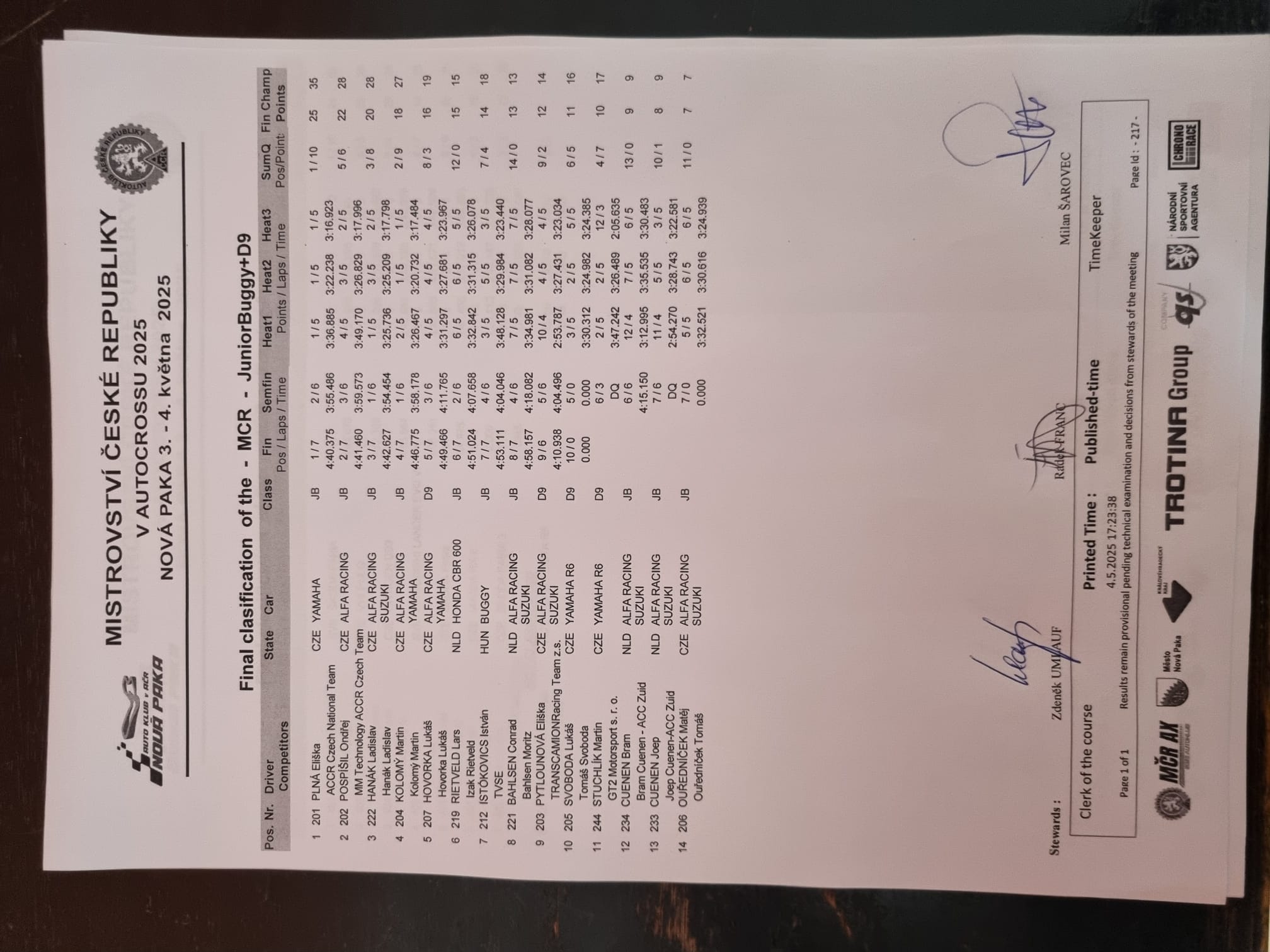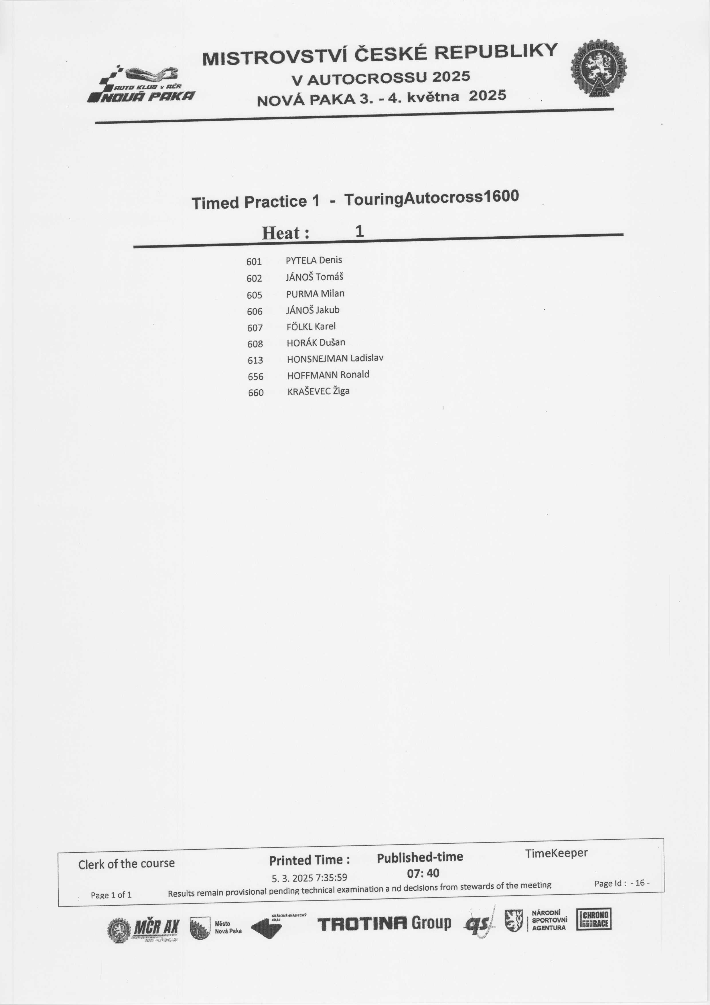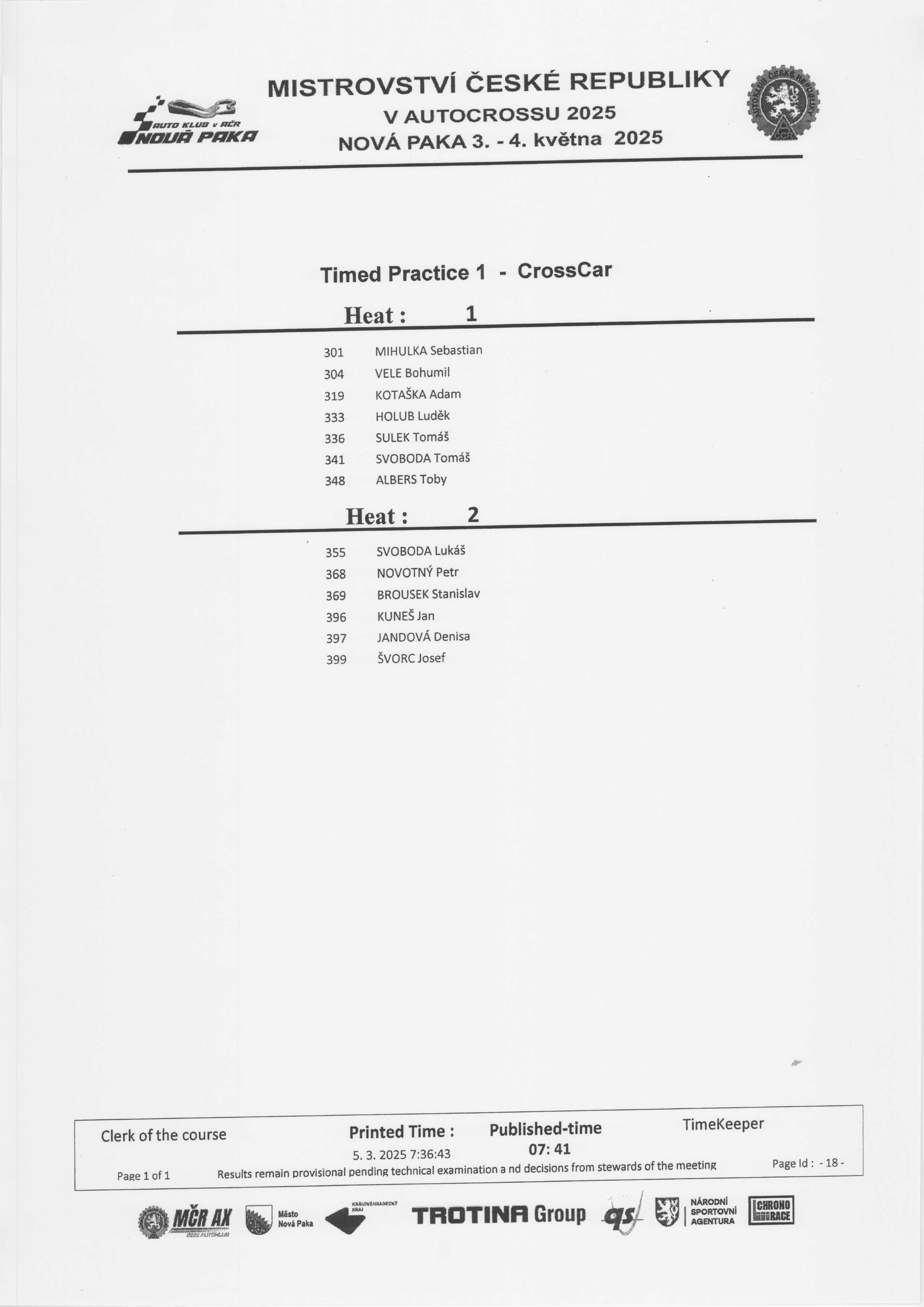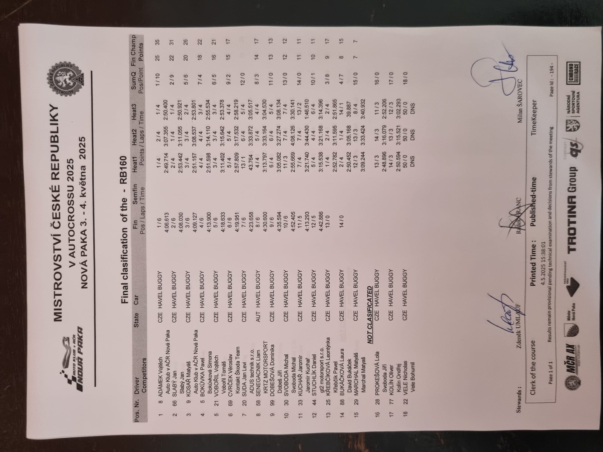 Změna časového harmonogramu na neděli 25.05. : 07:15 - 07:55 administrativní přejímka, v 08:00 rozprava a v 08:15 1. trénink