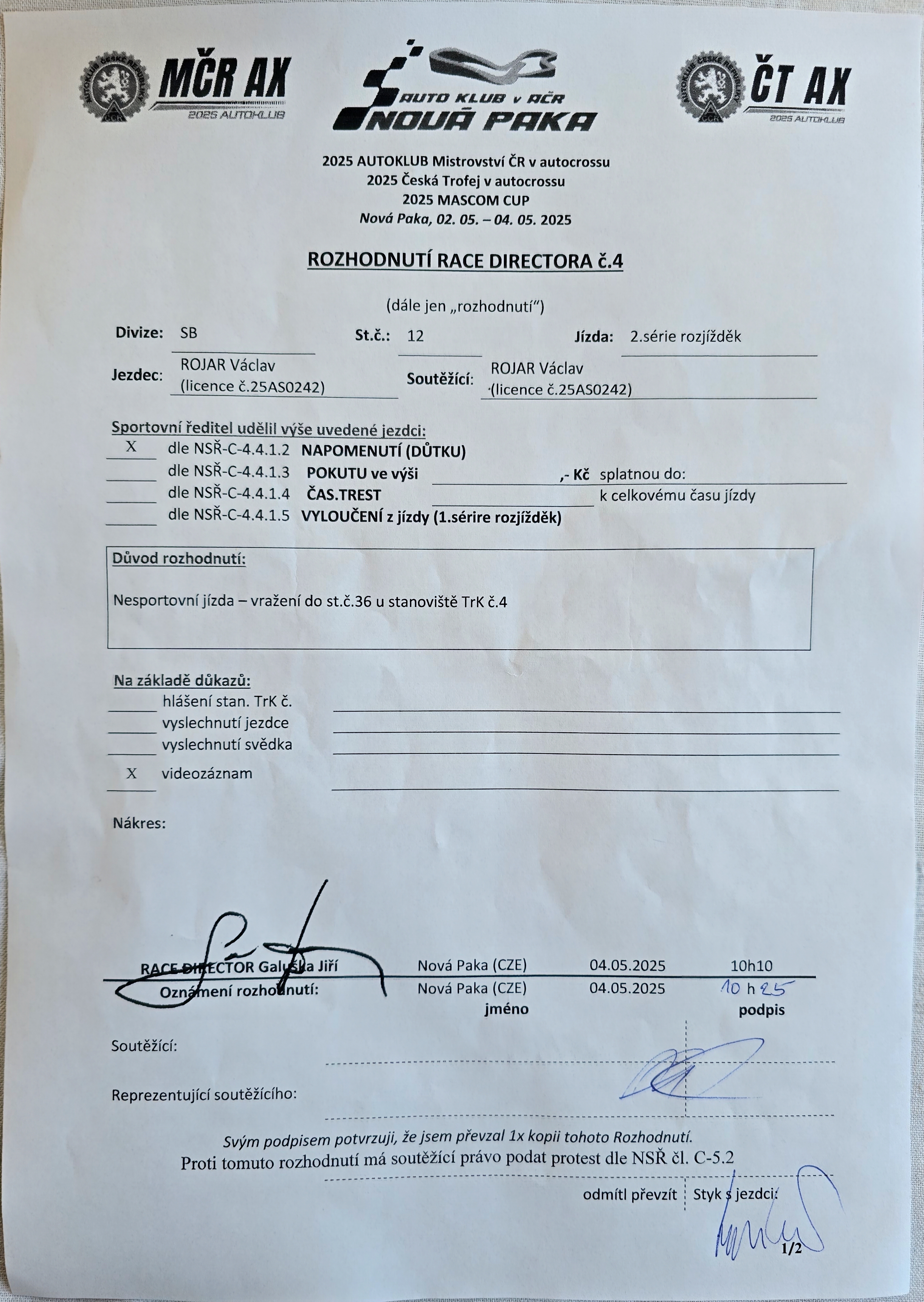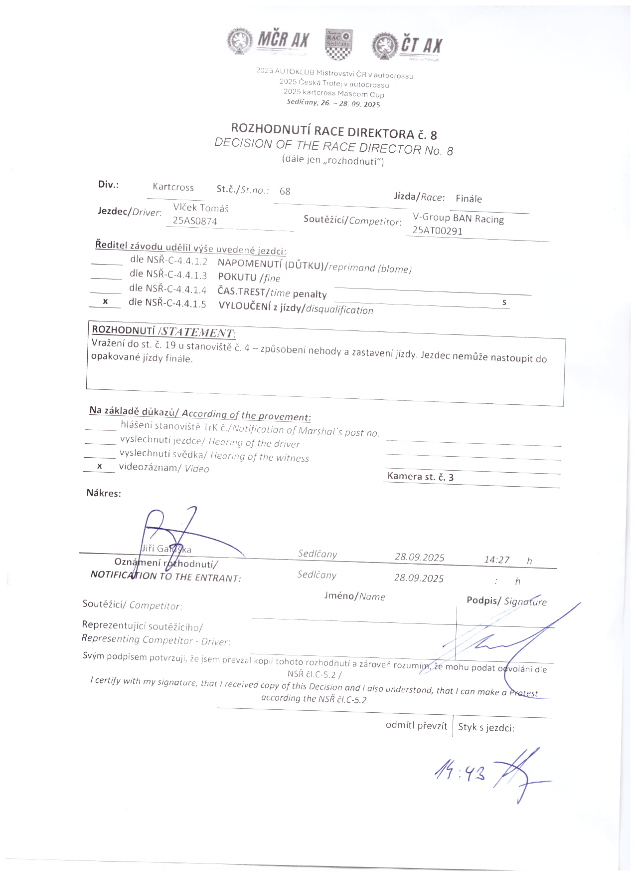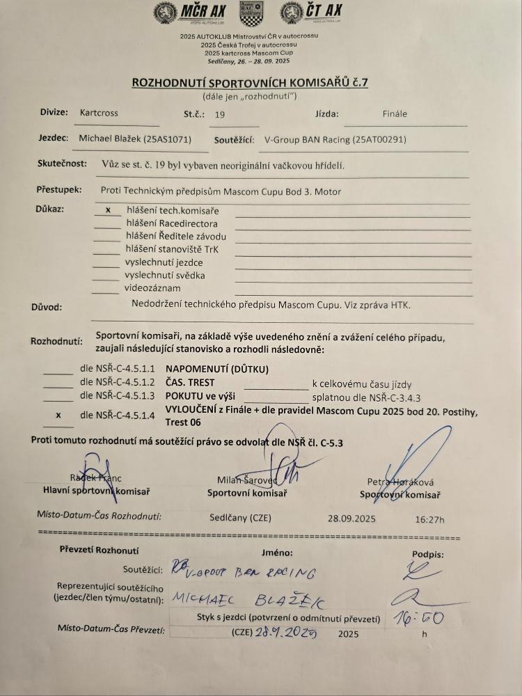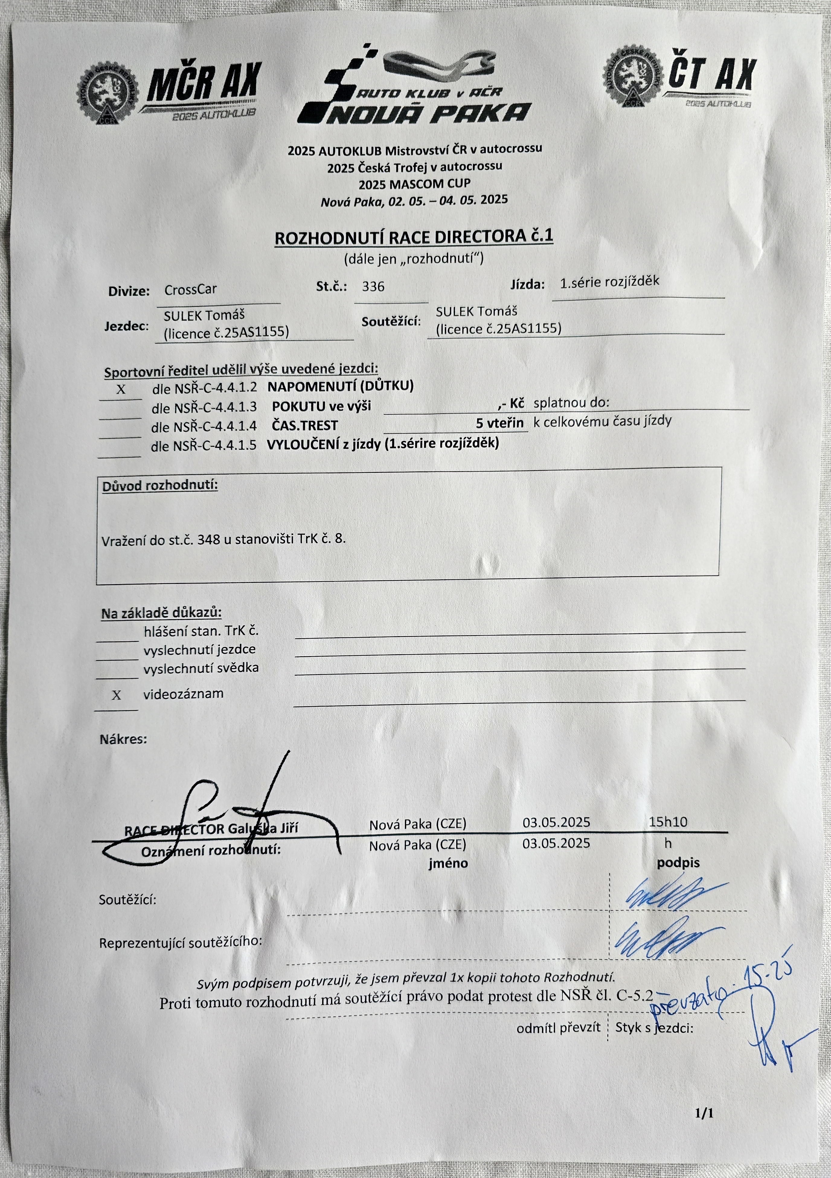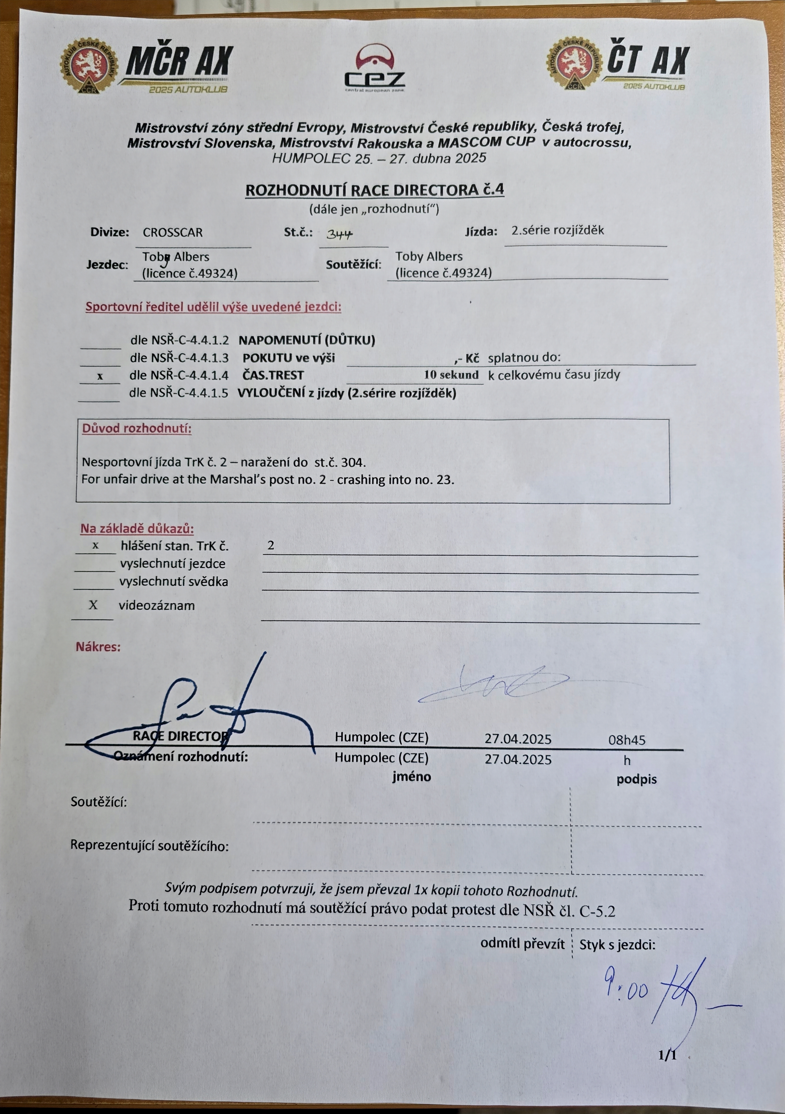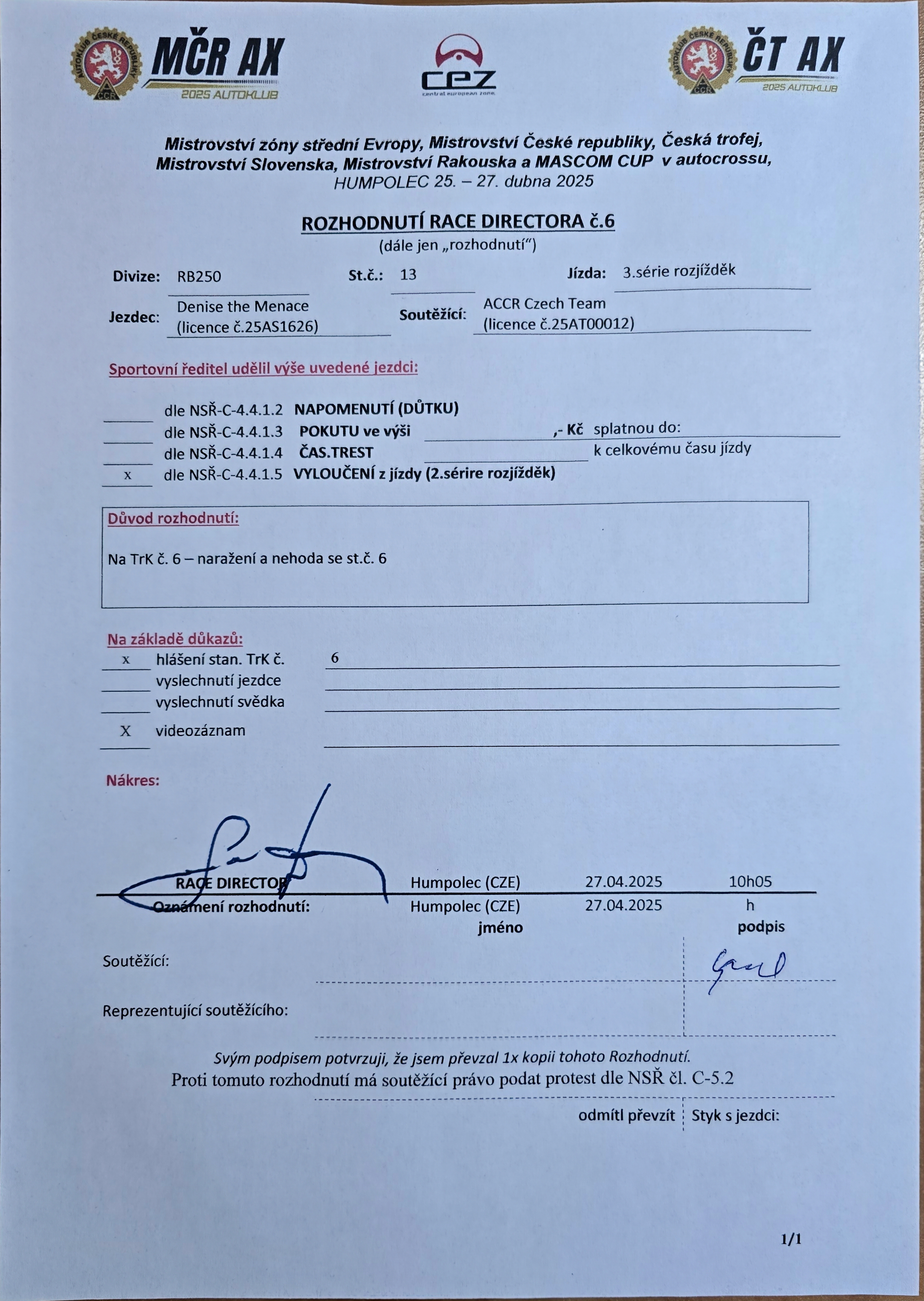 Rozhodnutí Race Direktora č. 8 - #68 Kartcross