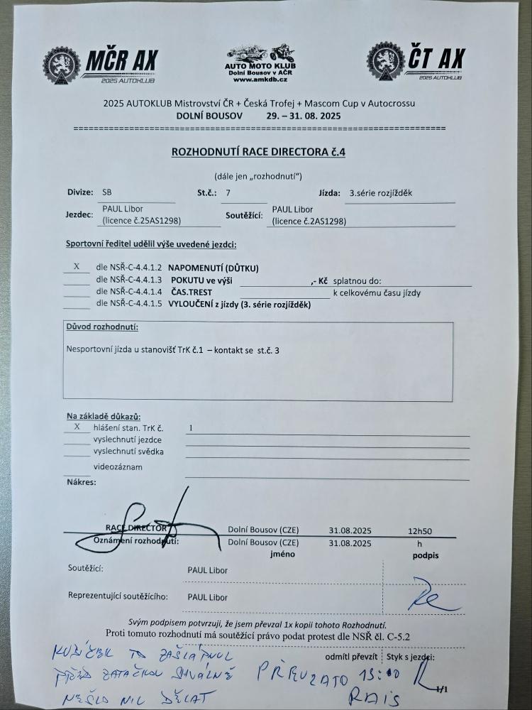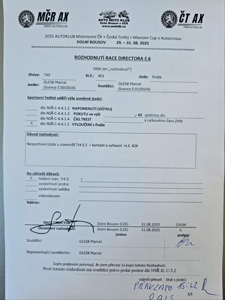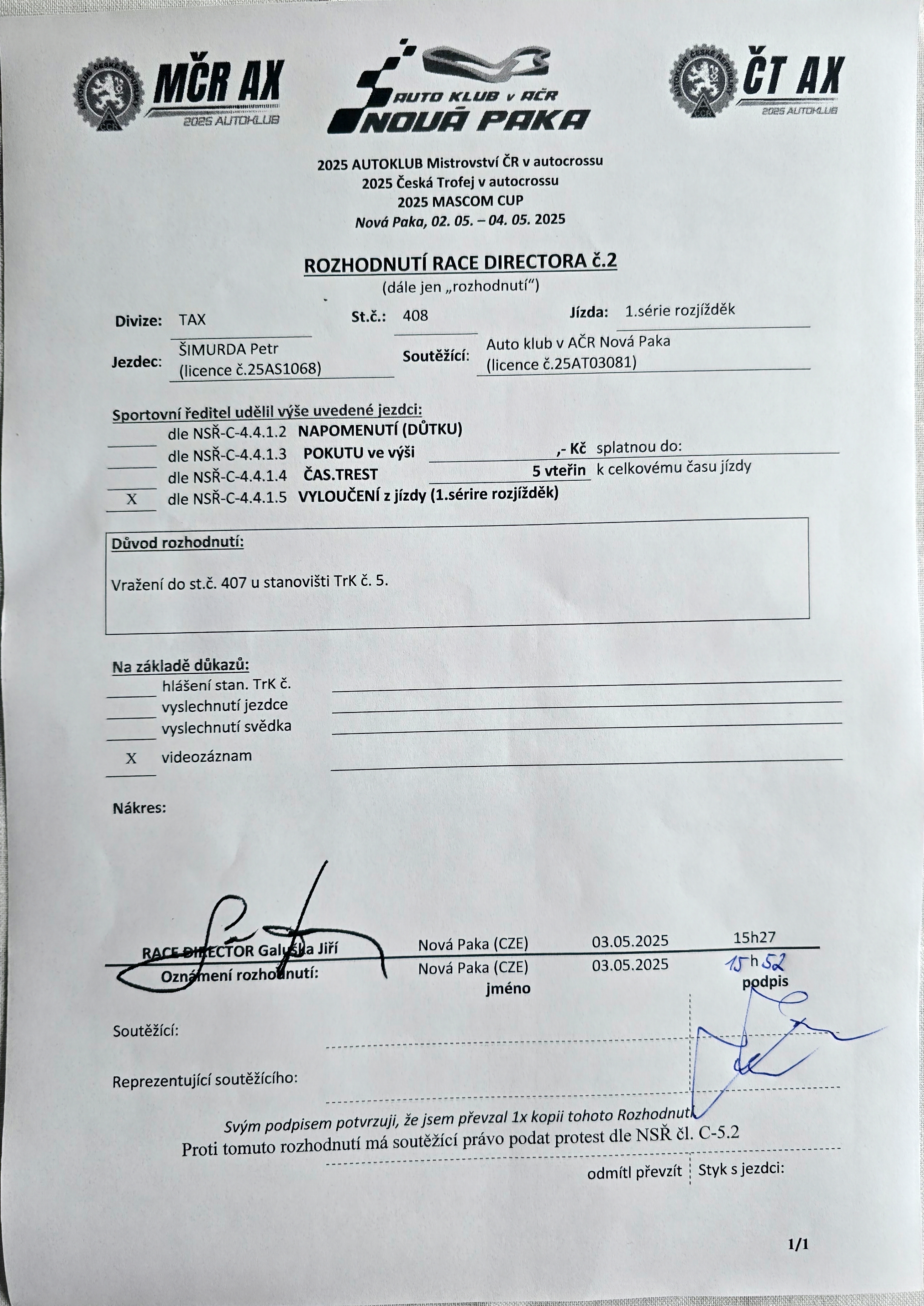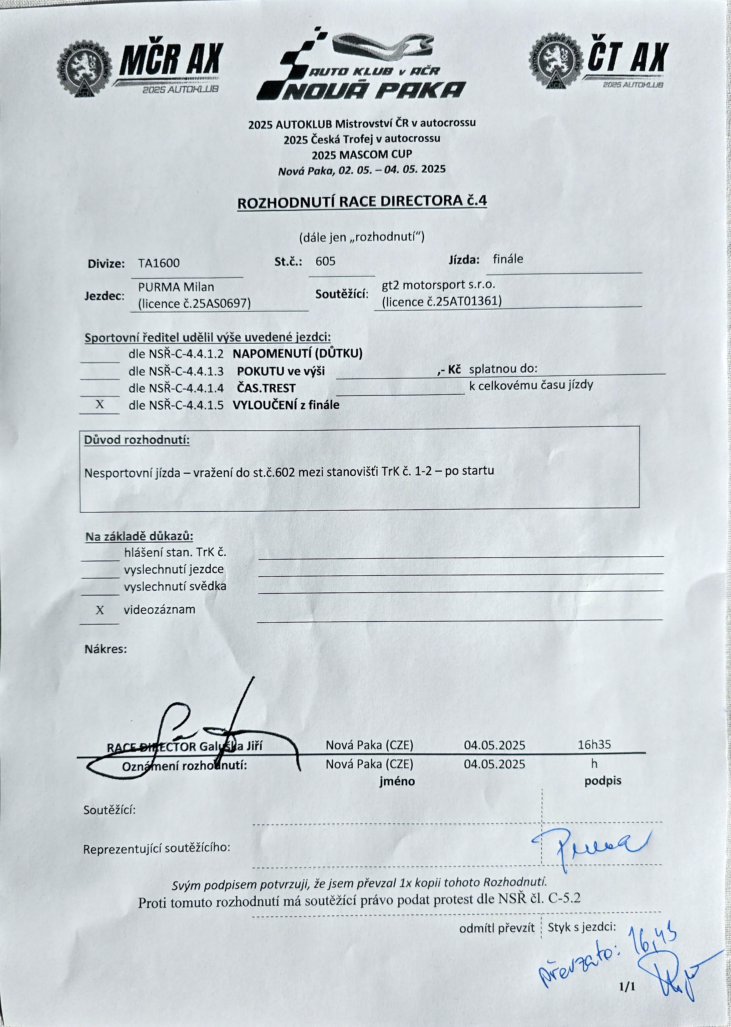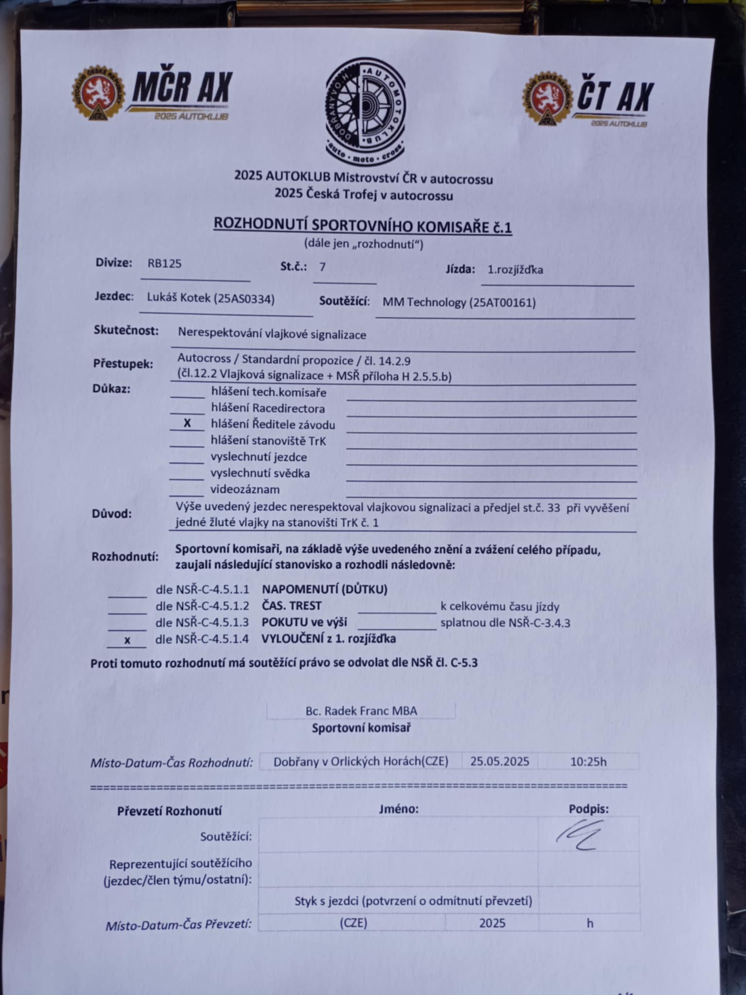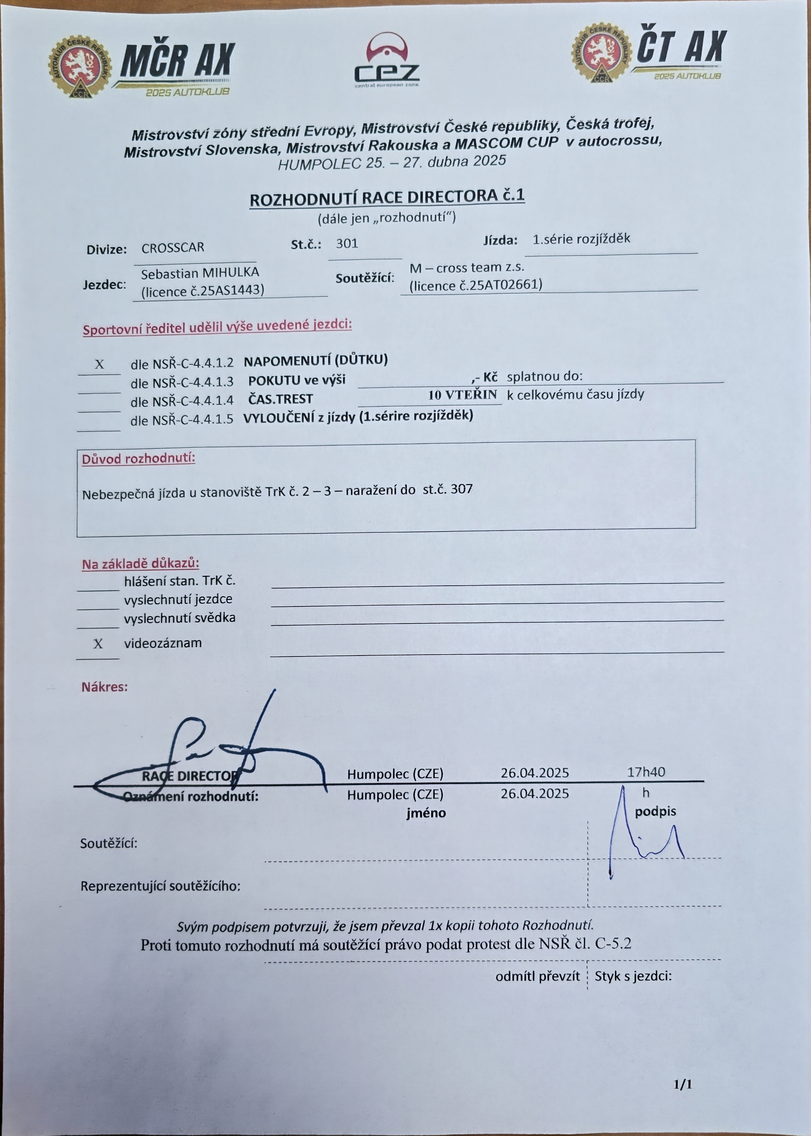 Rozhodnutí Race Direktora č. 8 - #68 Kartcross