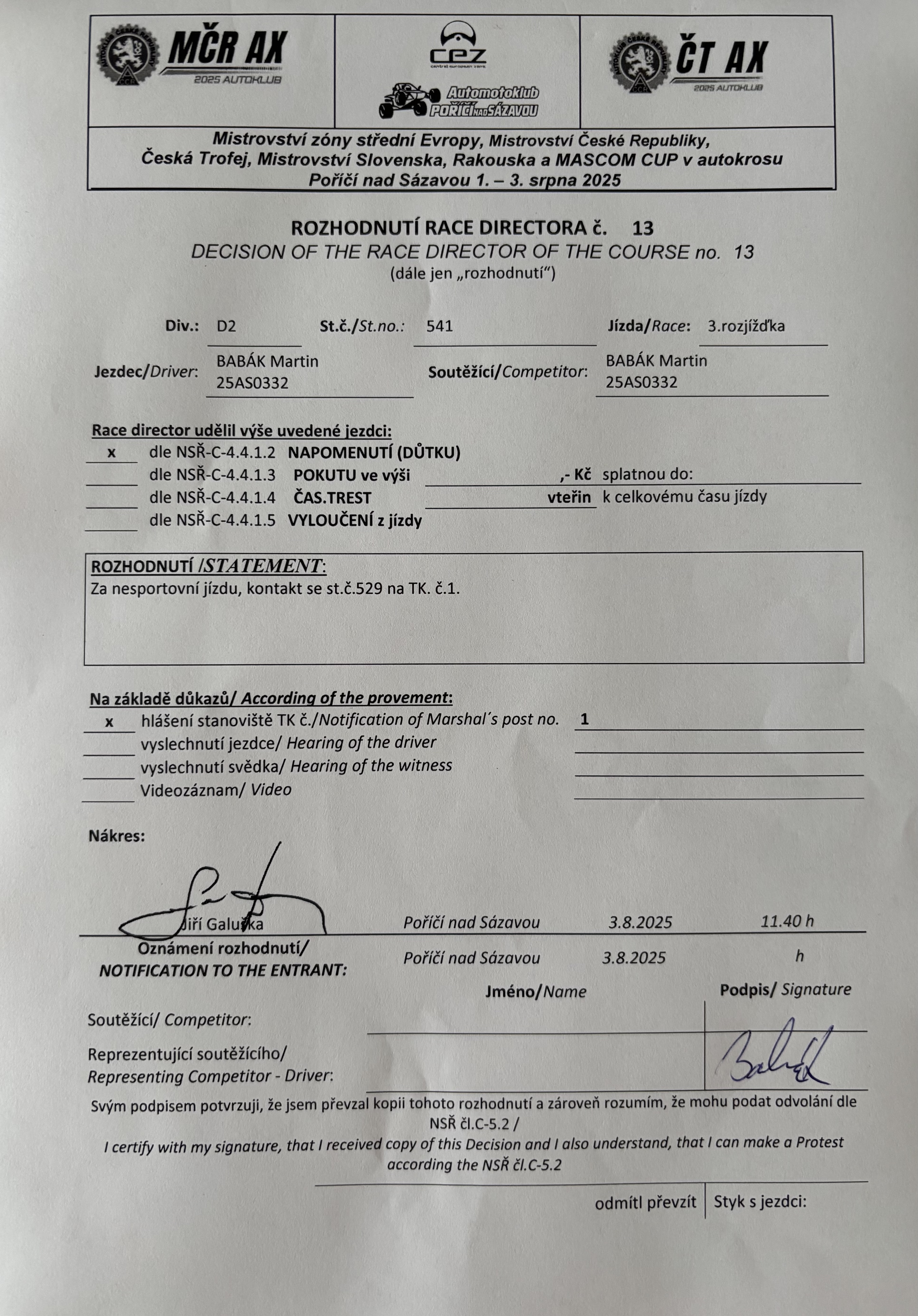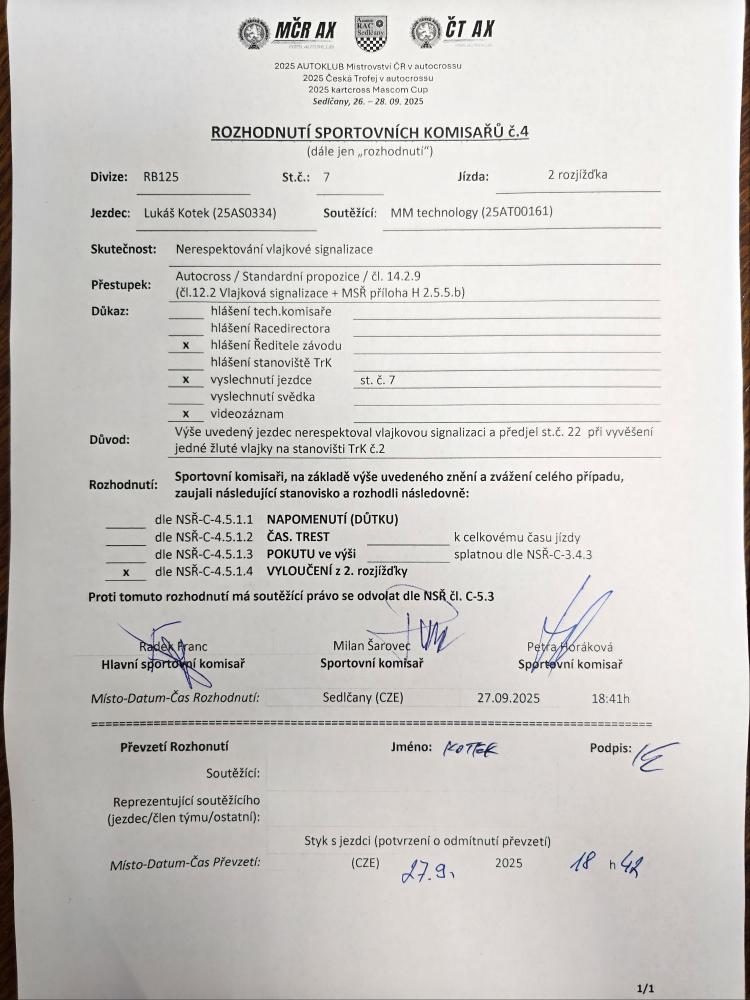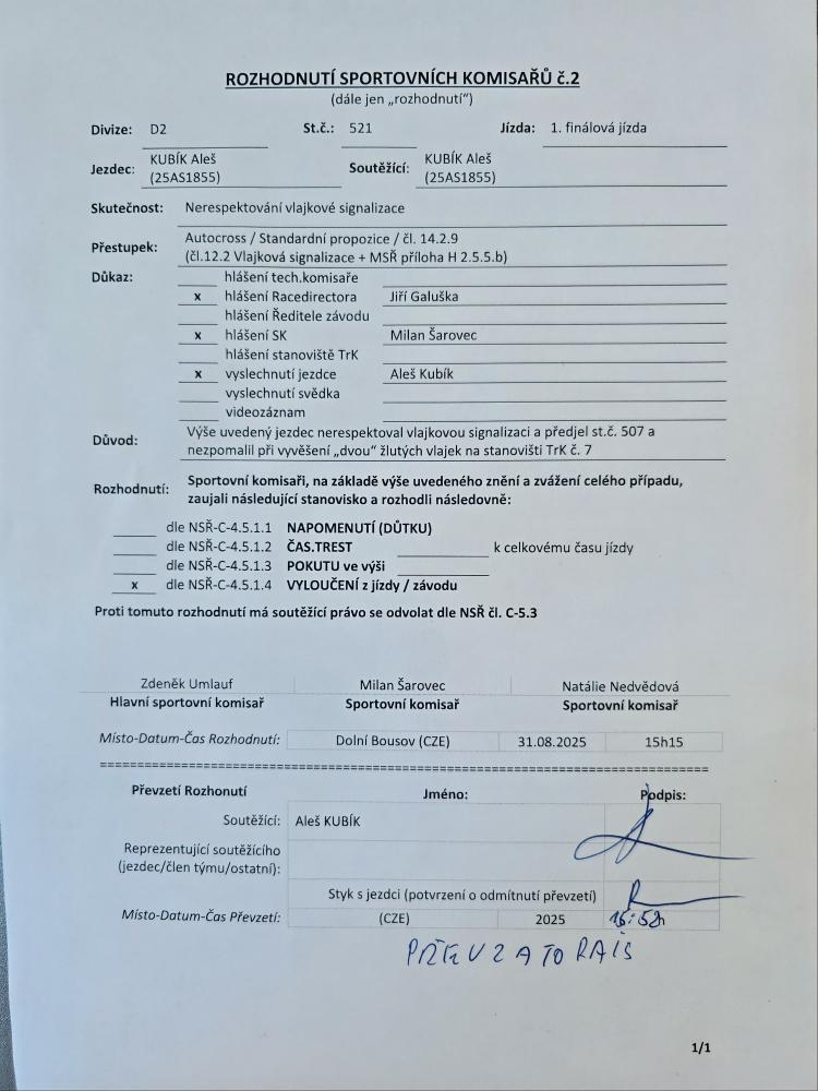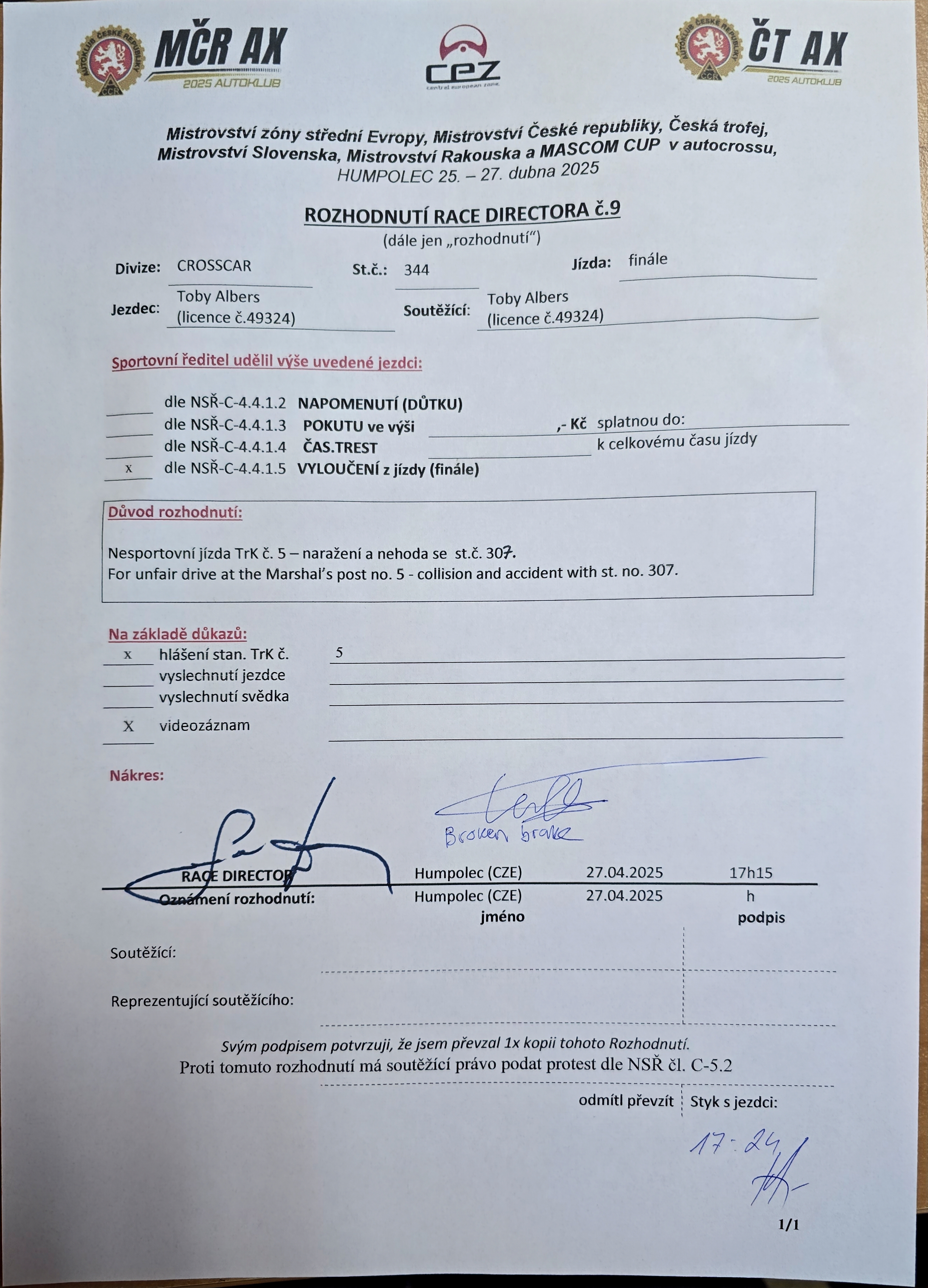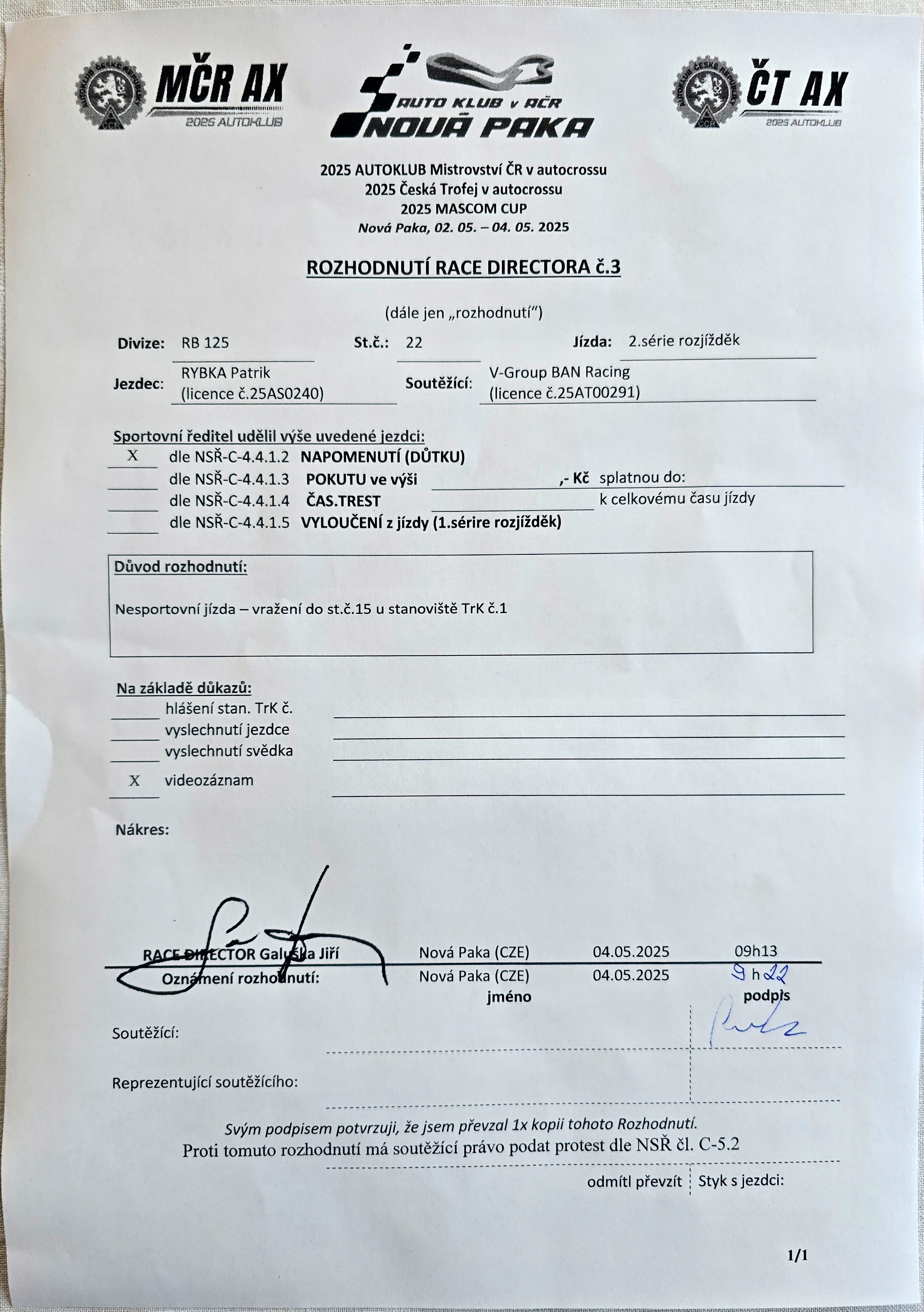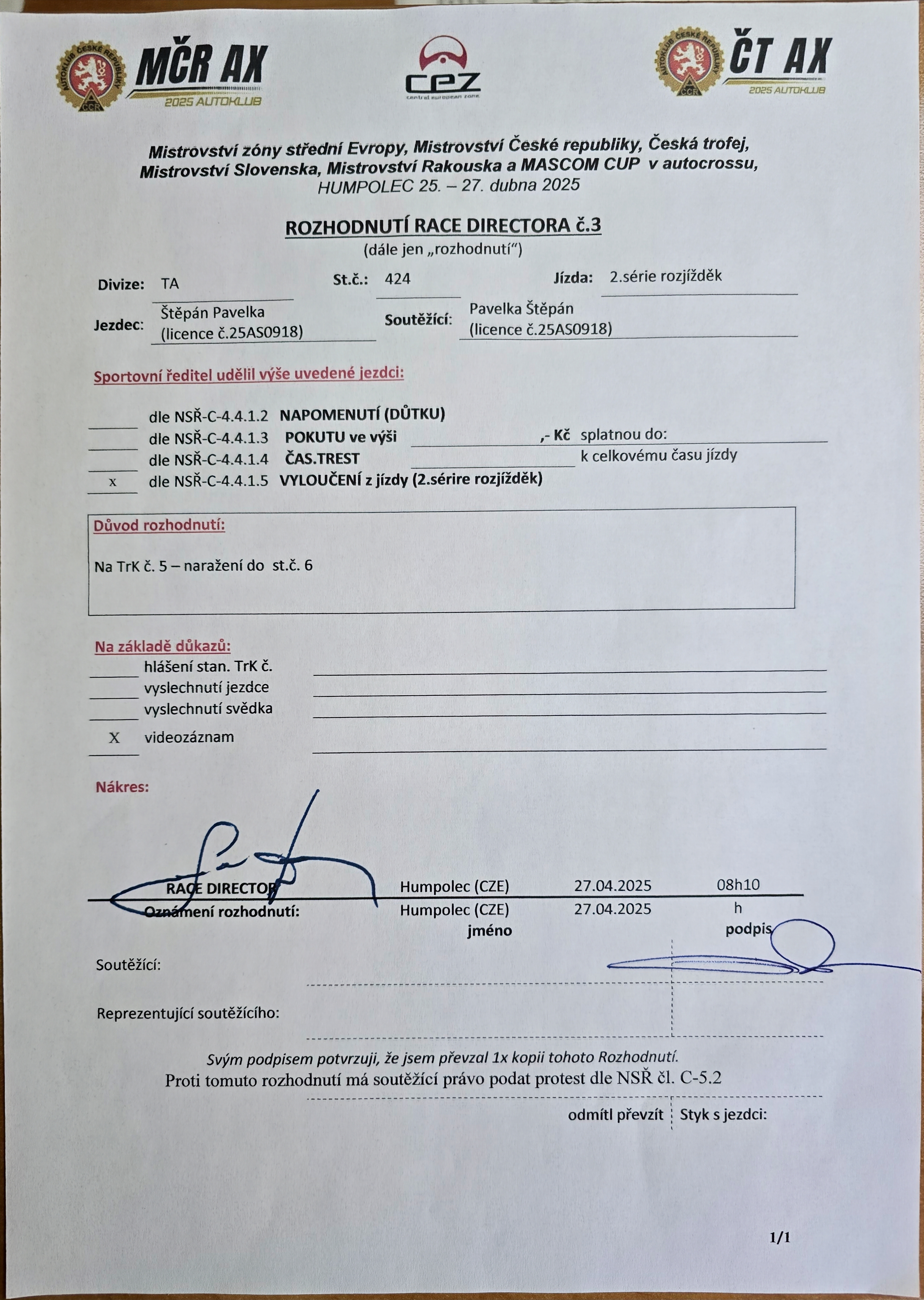 Rozhodnutí Race Direktora č. 8 - #68 Kartcross