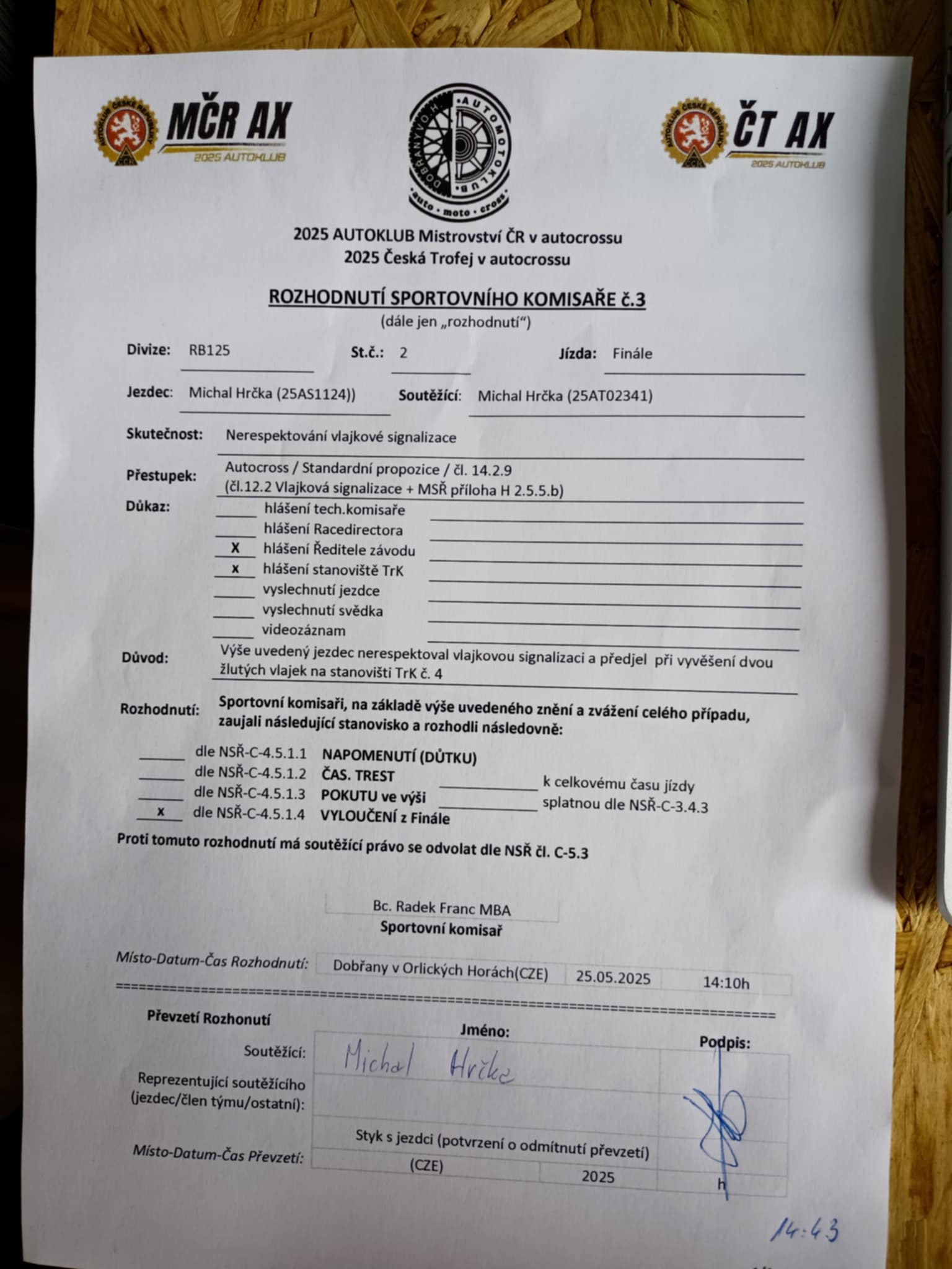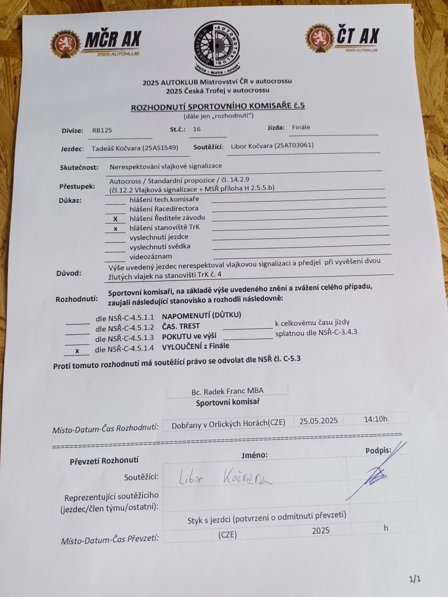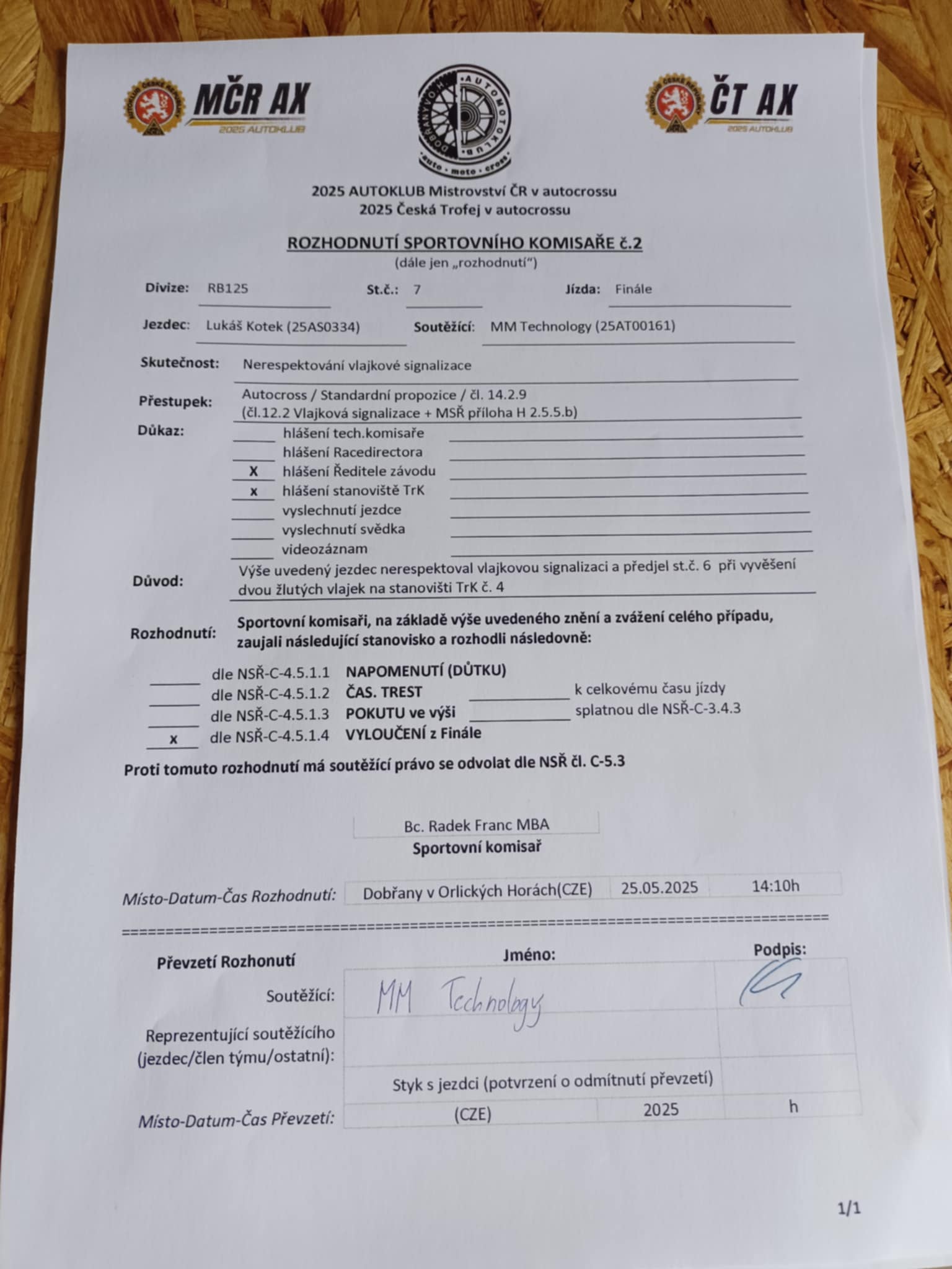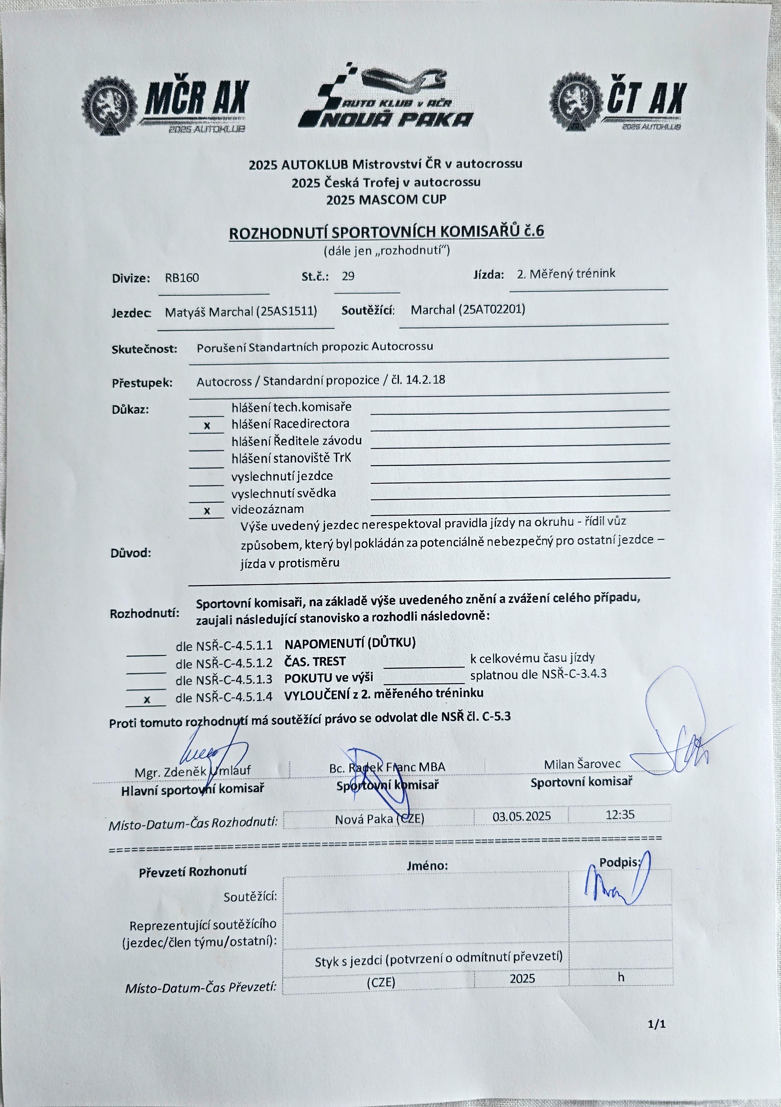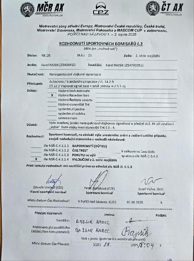 Rozhodnutí Race Direktora č. 8 - #68 Kartcross