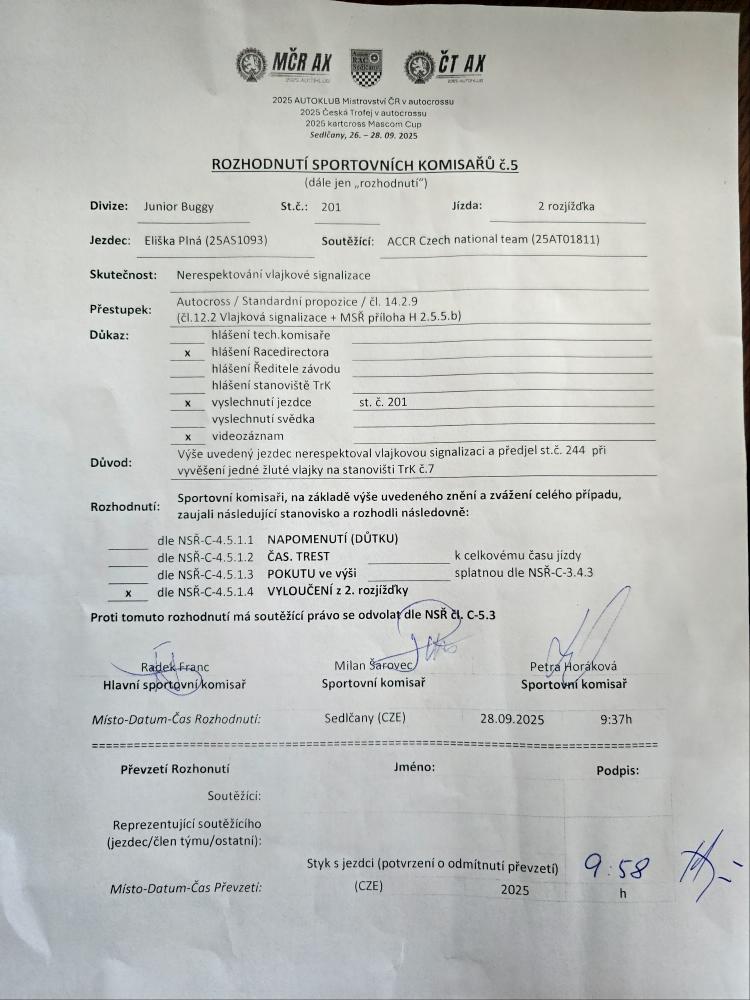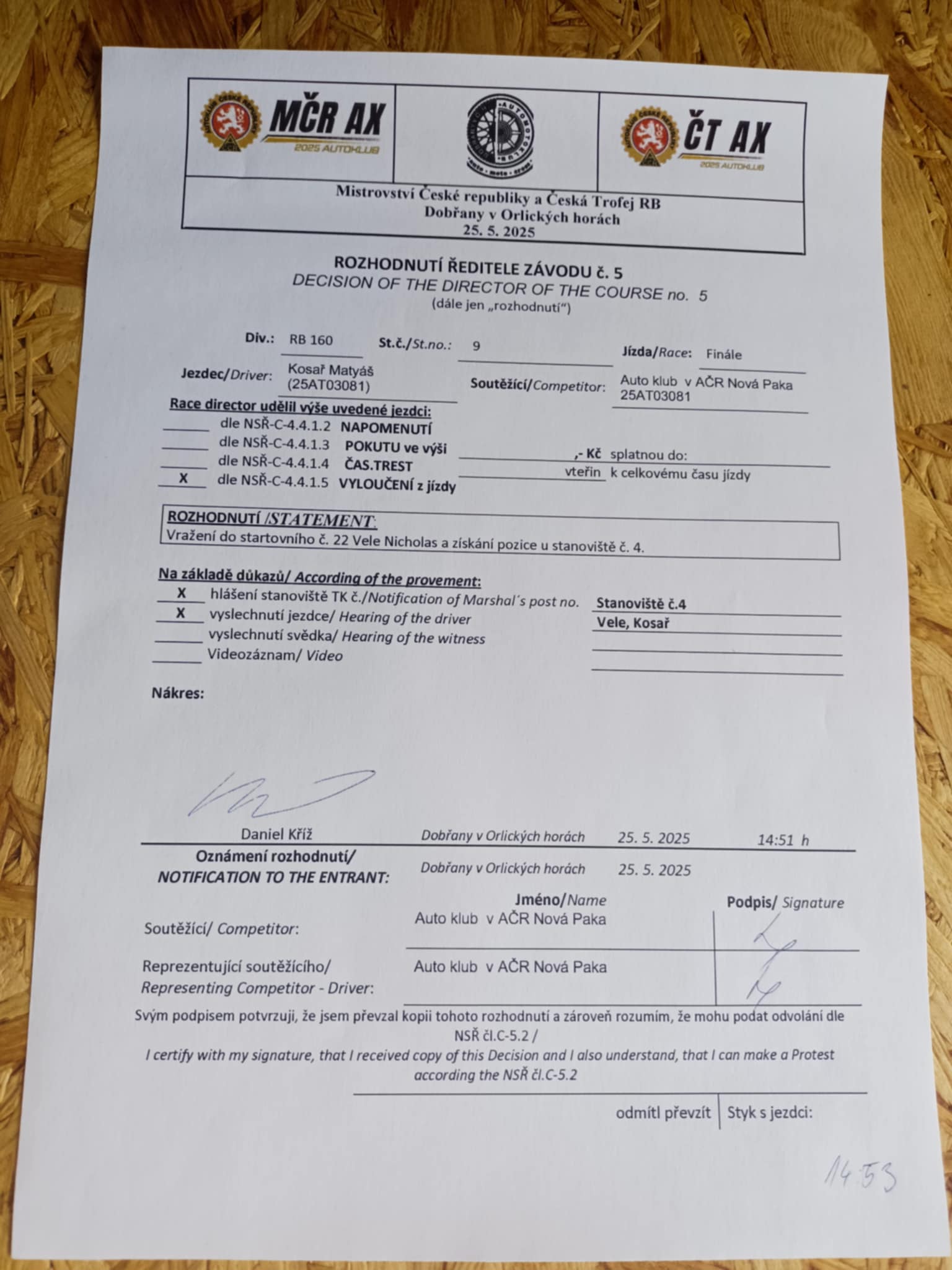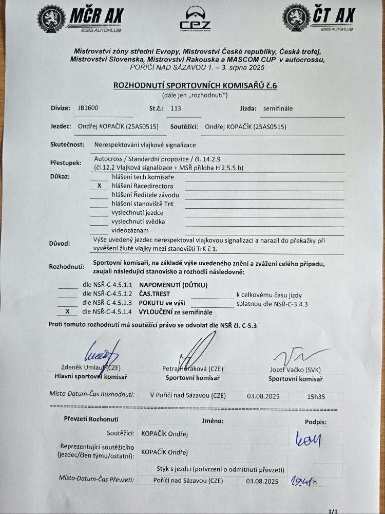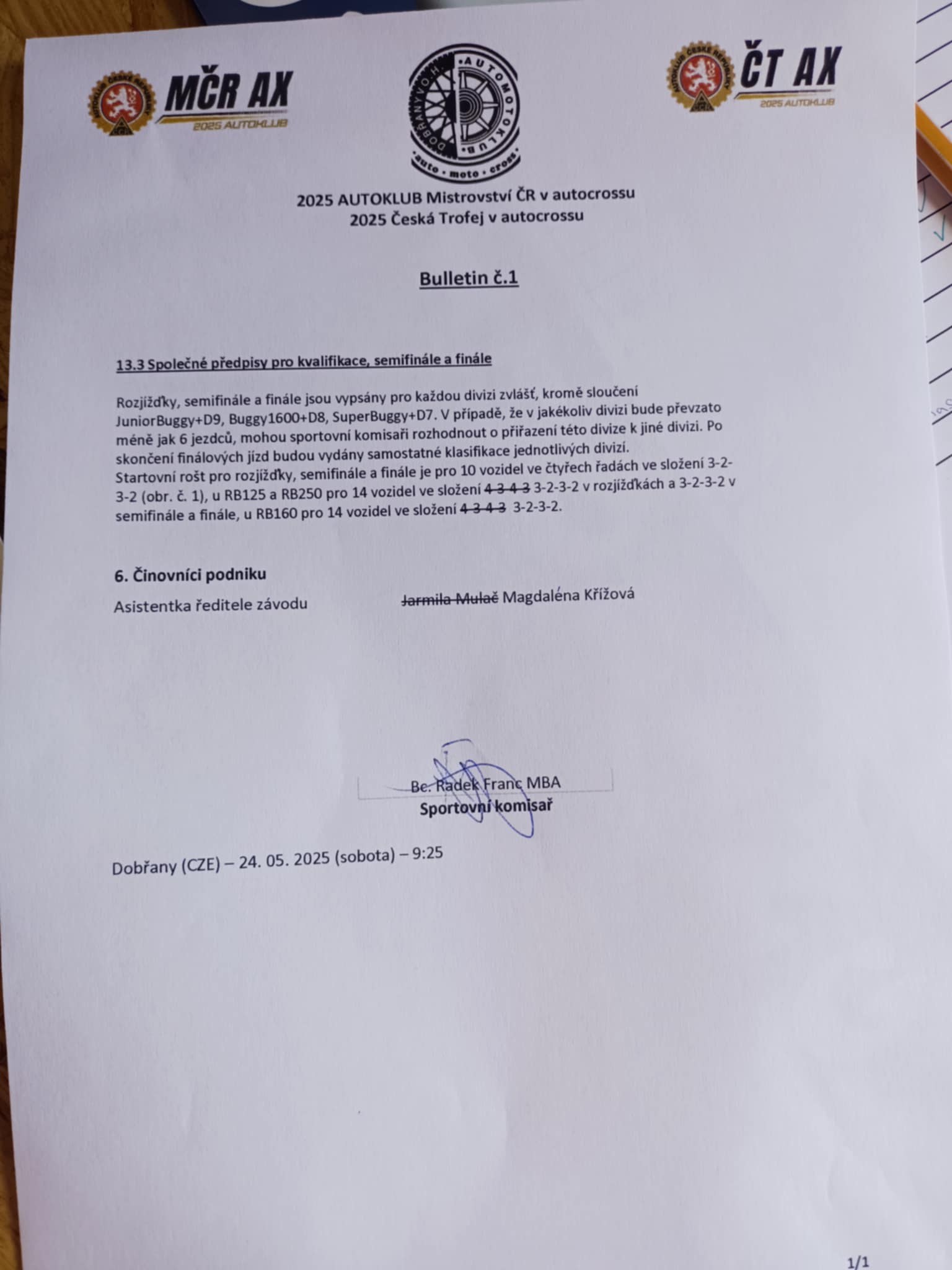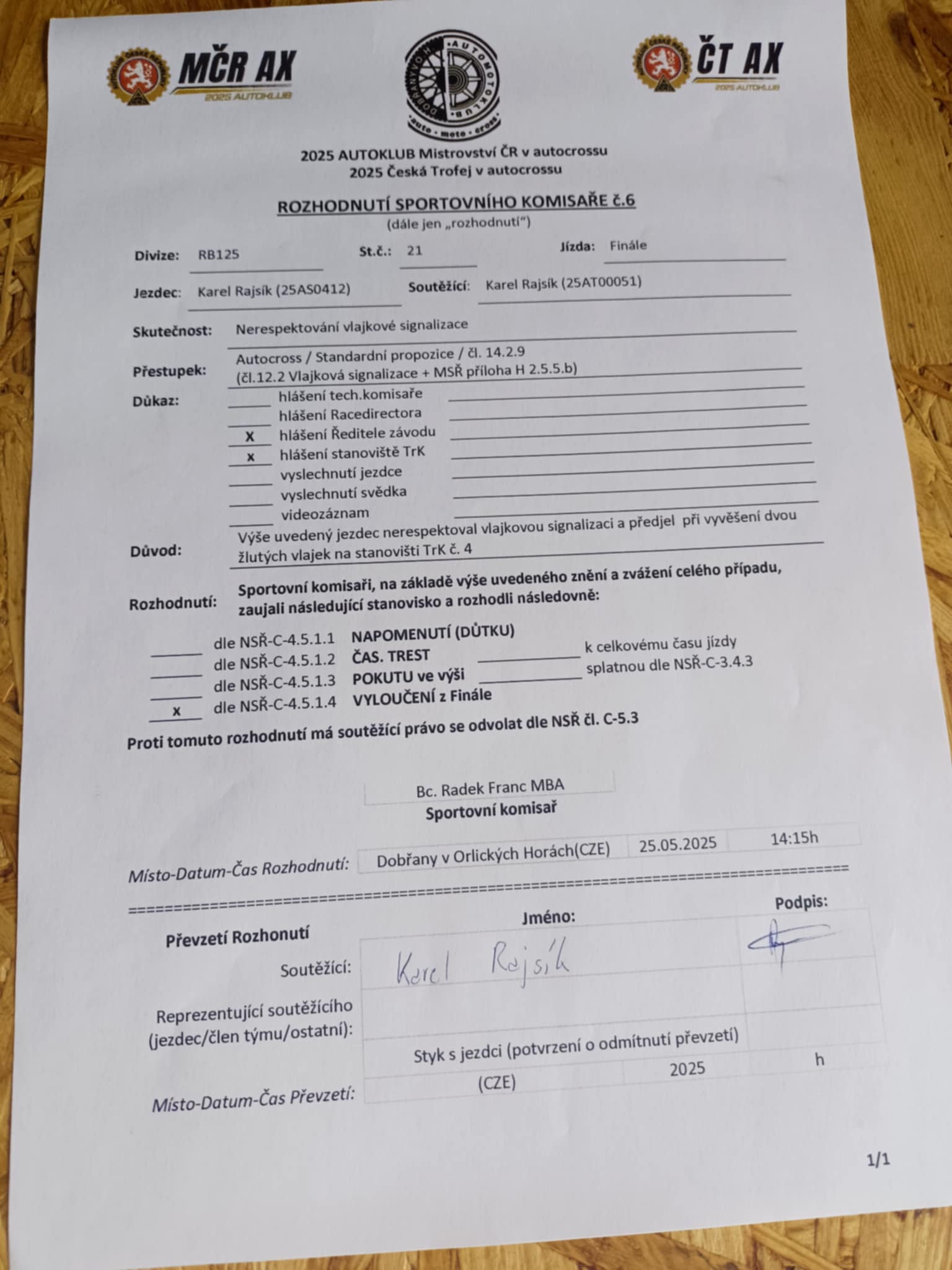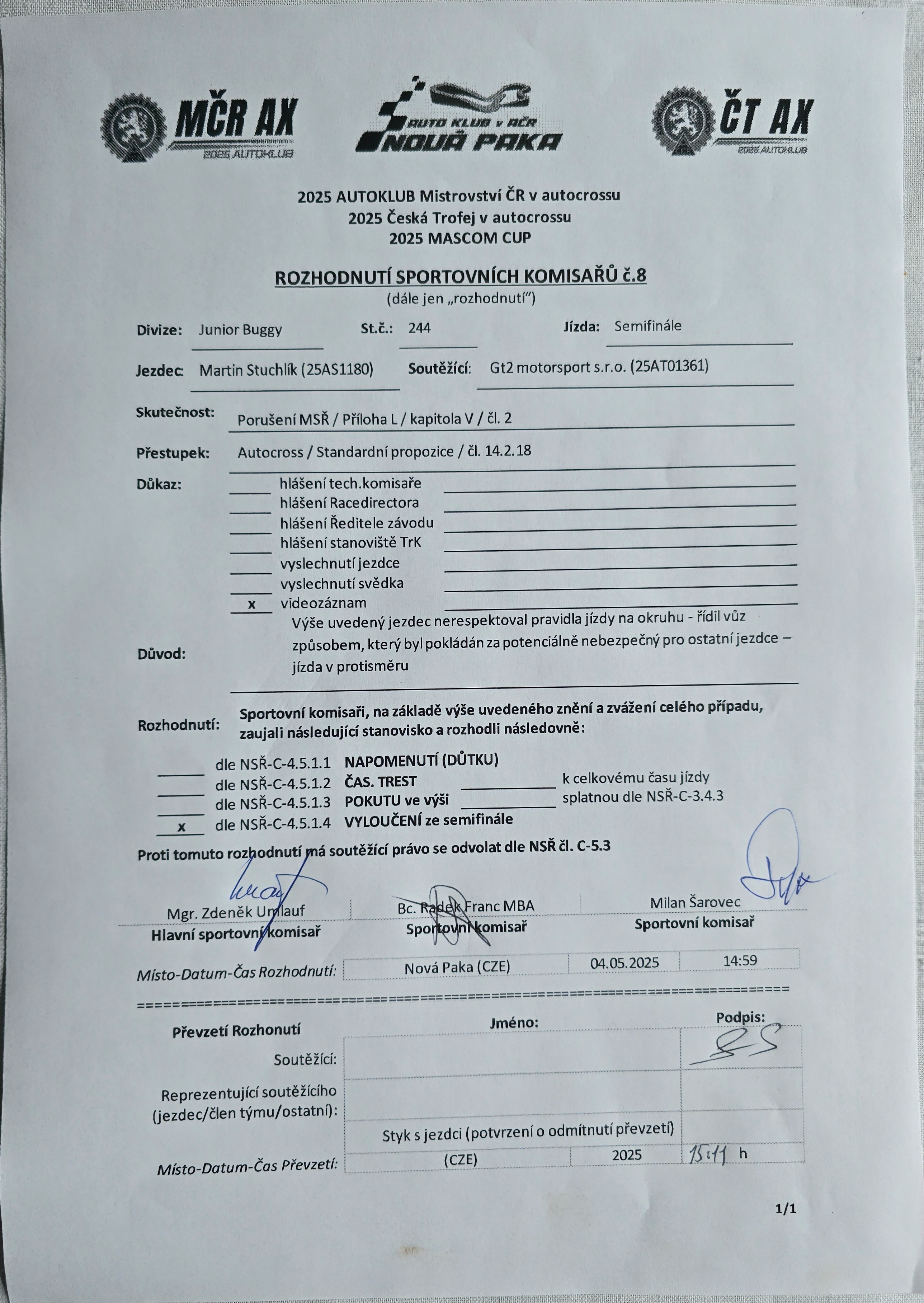 Rozhodnutí Race Direktora č. 8 - #68 Kartcross