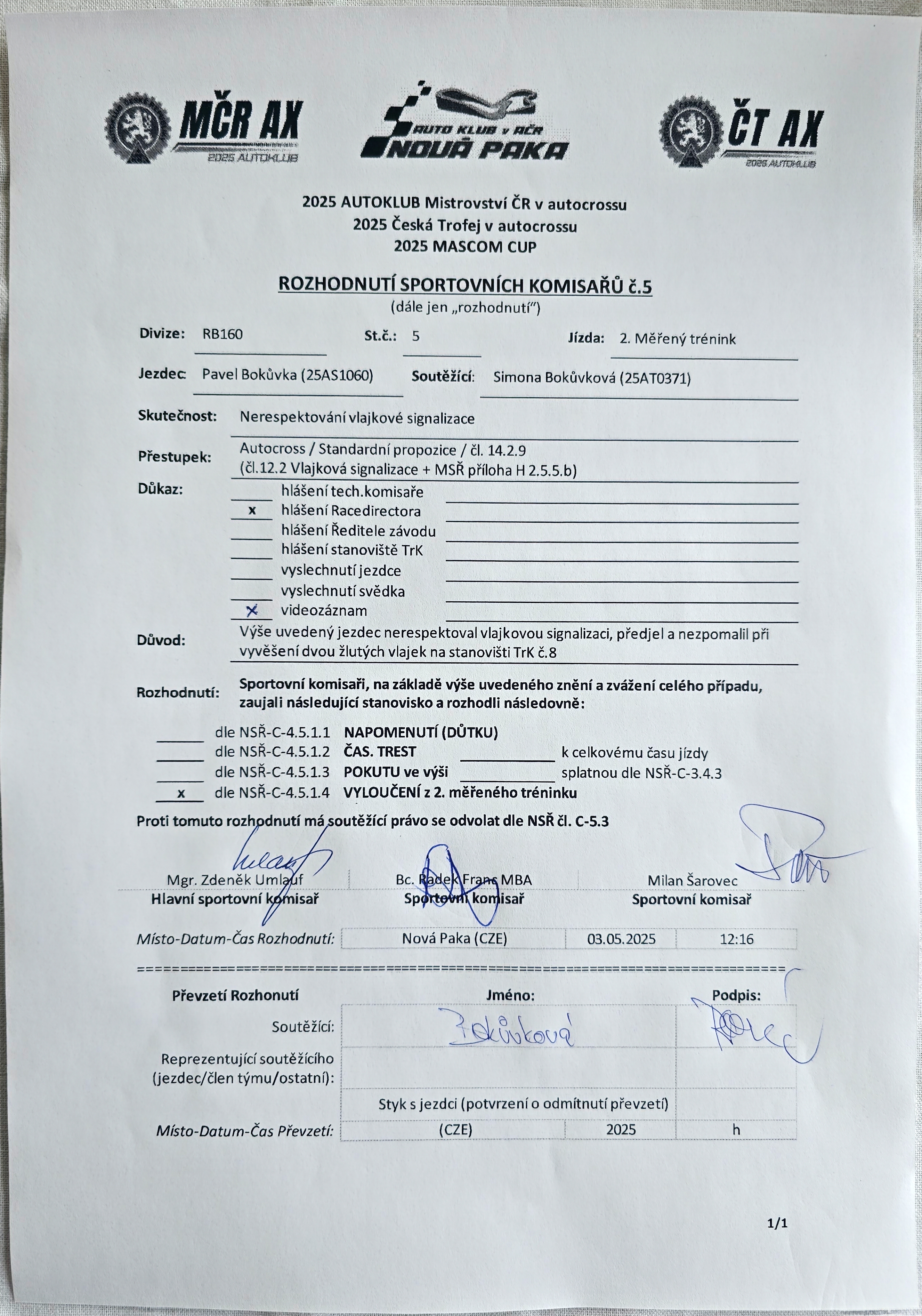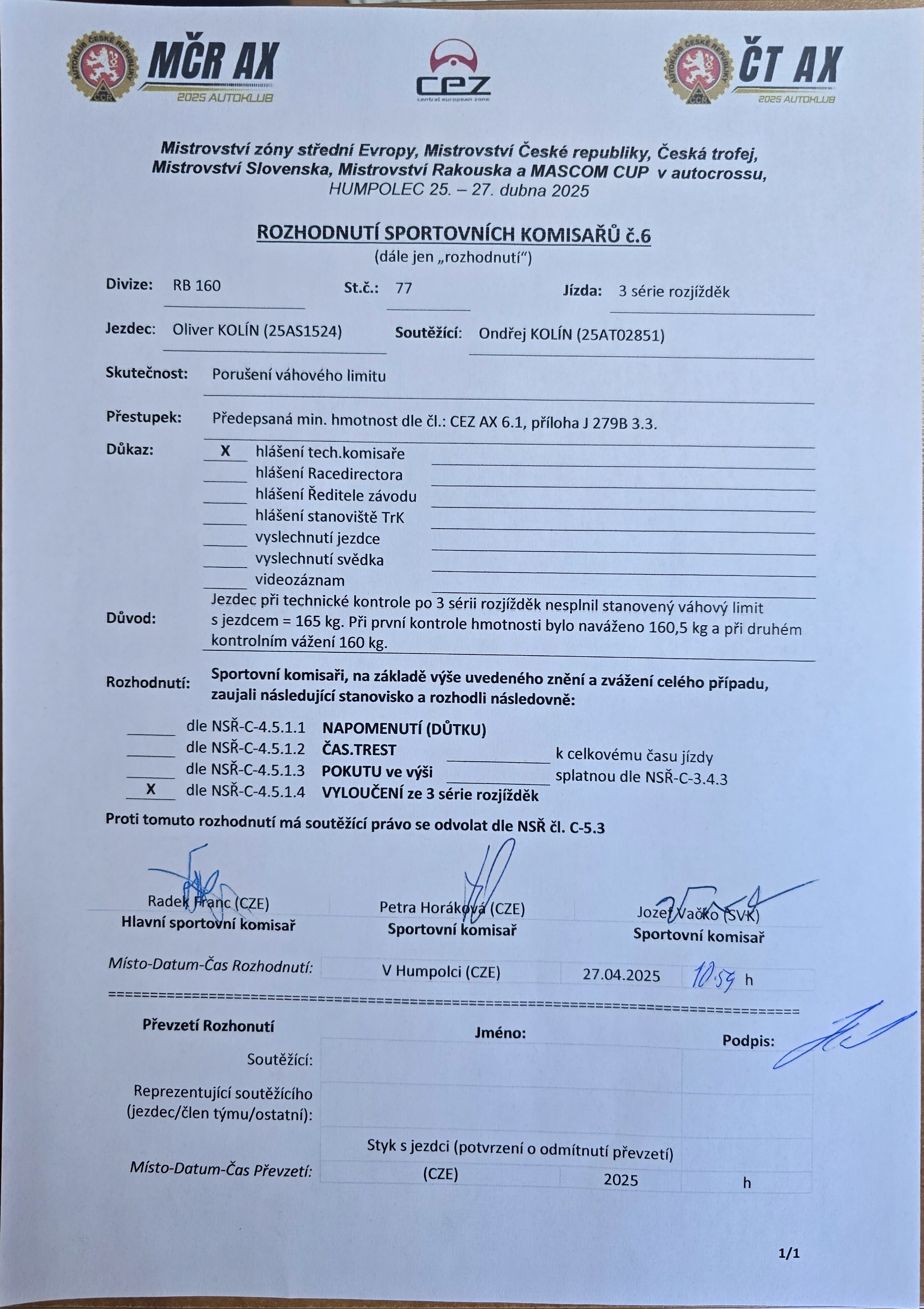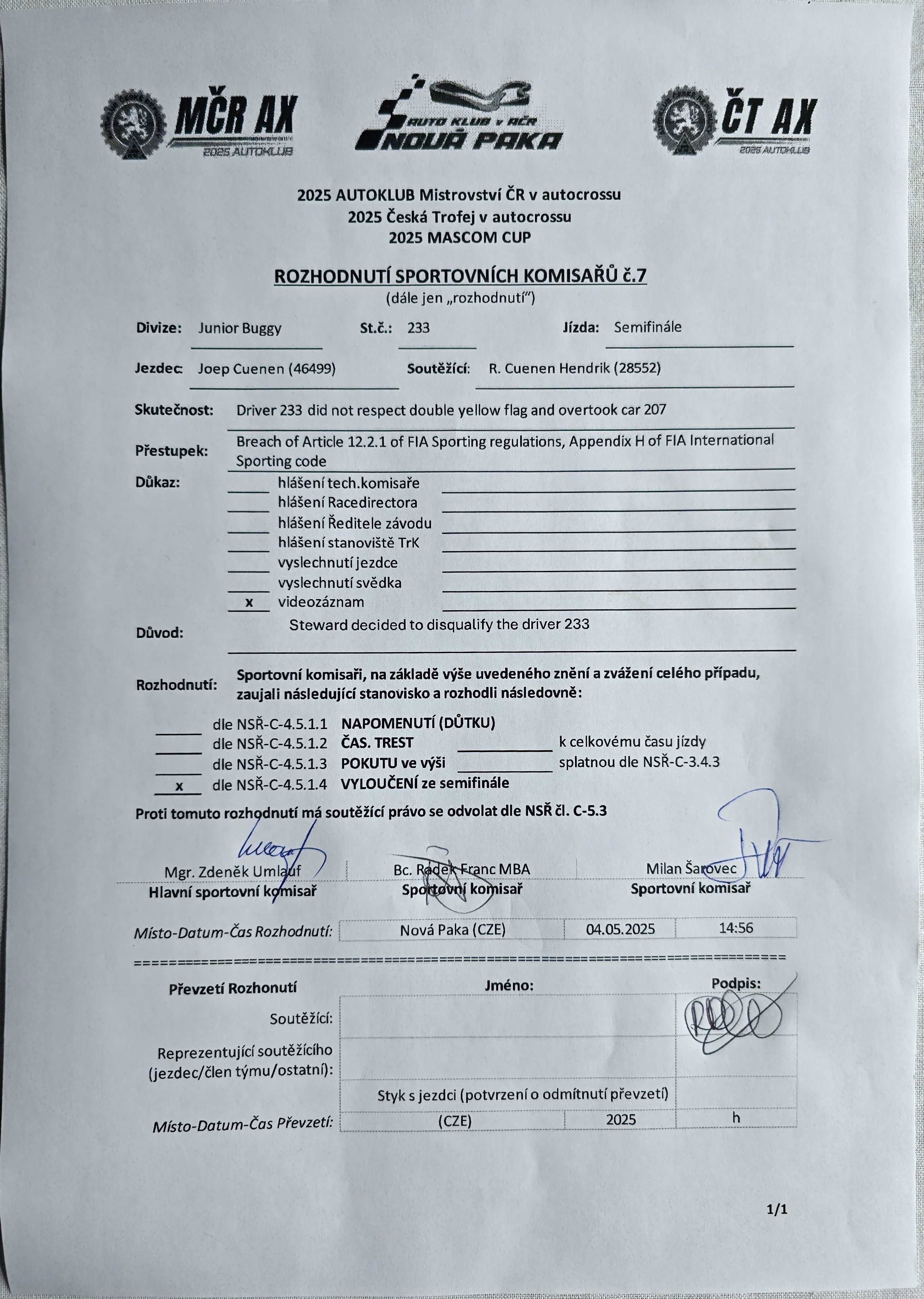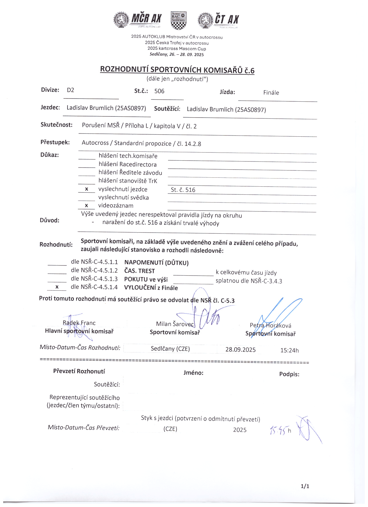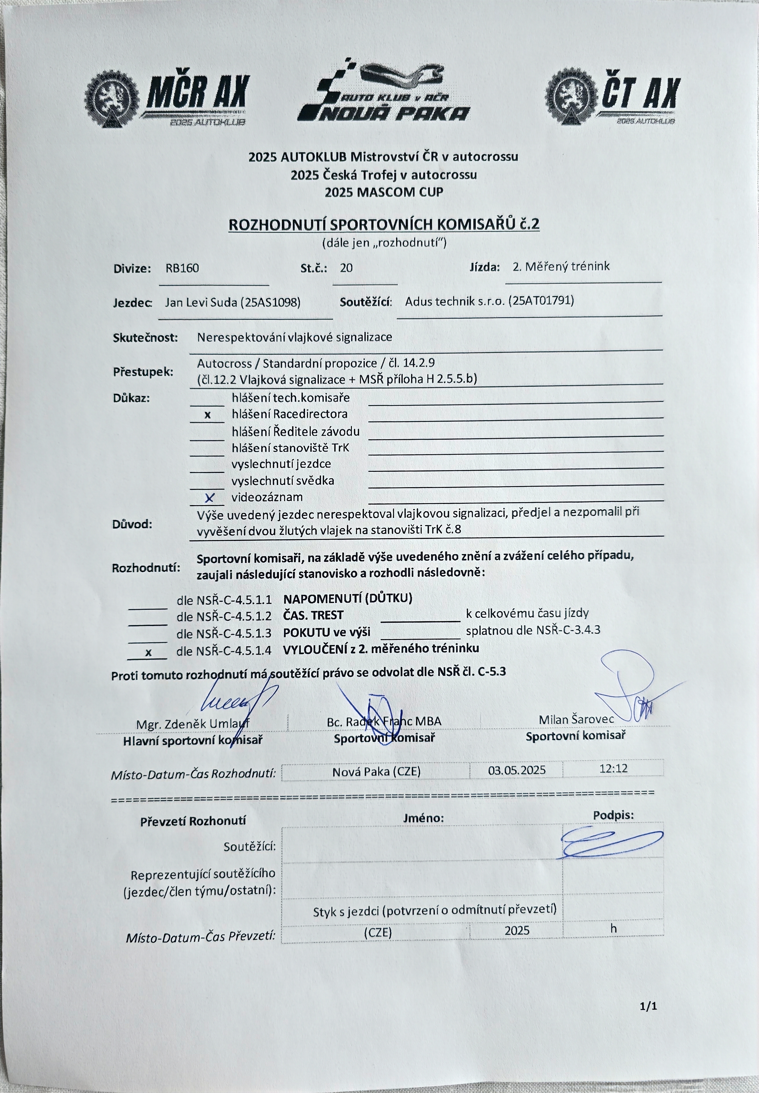 Rozhodnutí Race Direktora č. 8 - #68 Kartcross