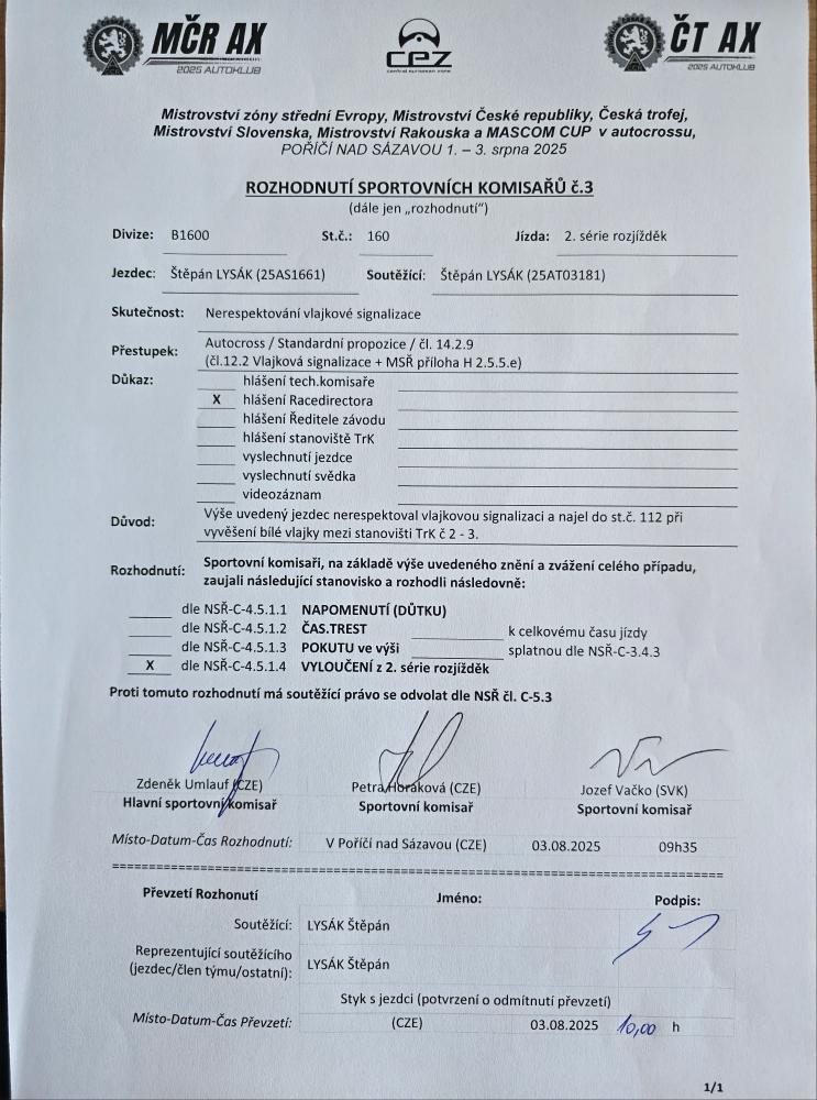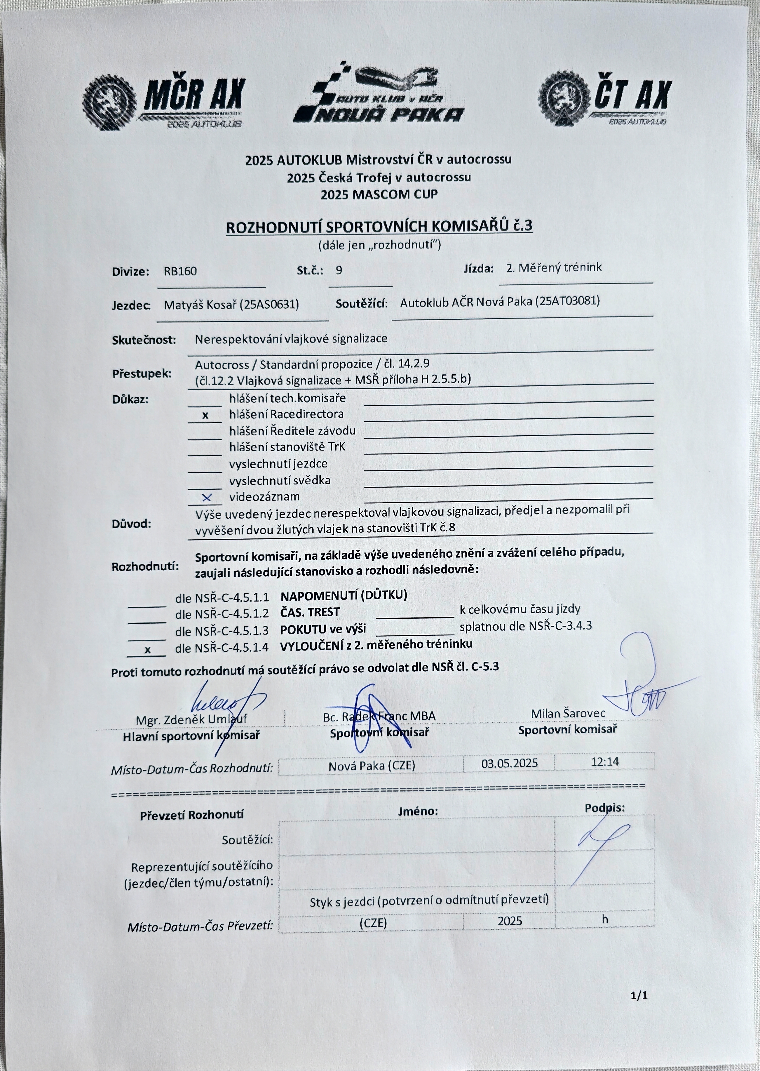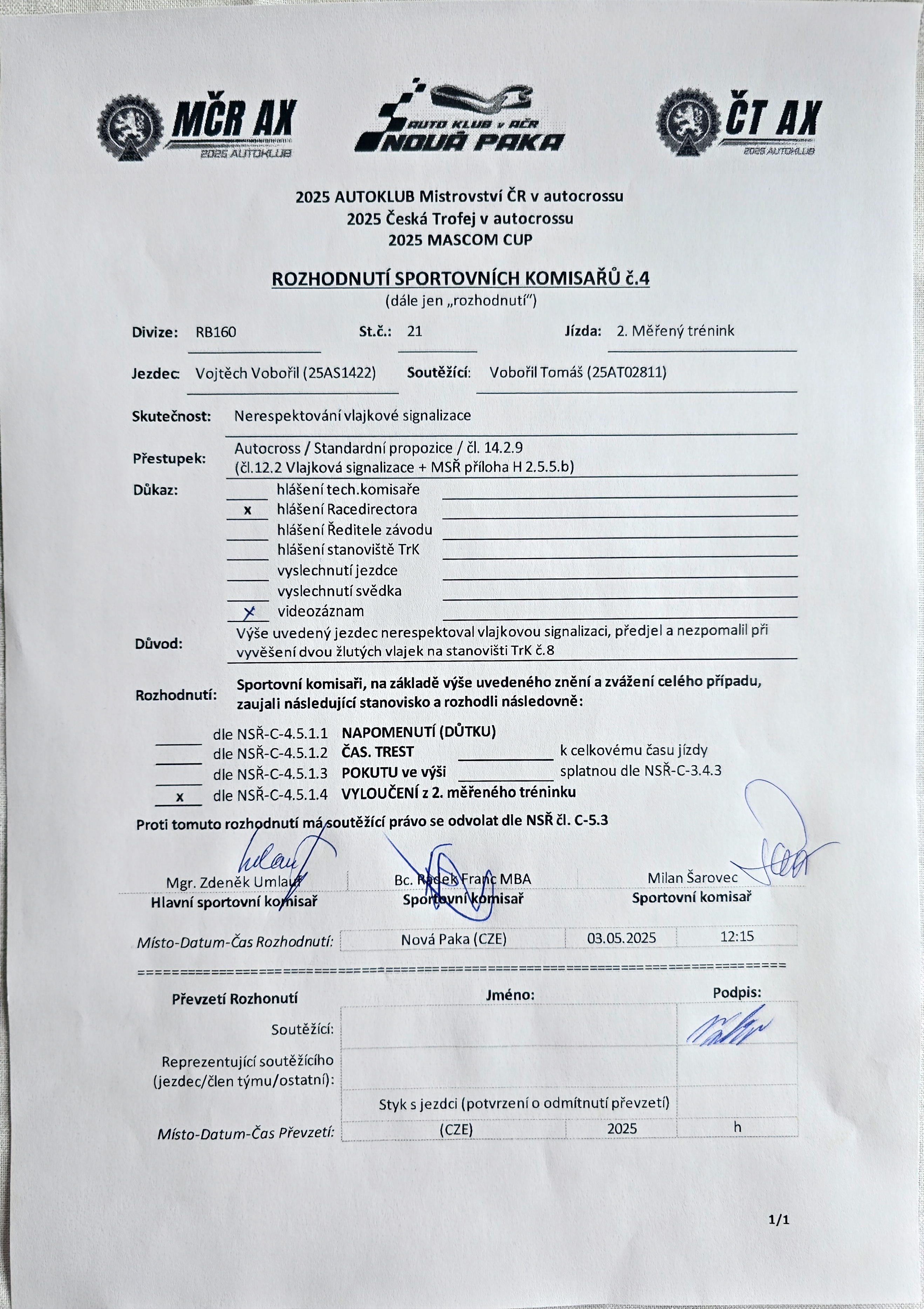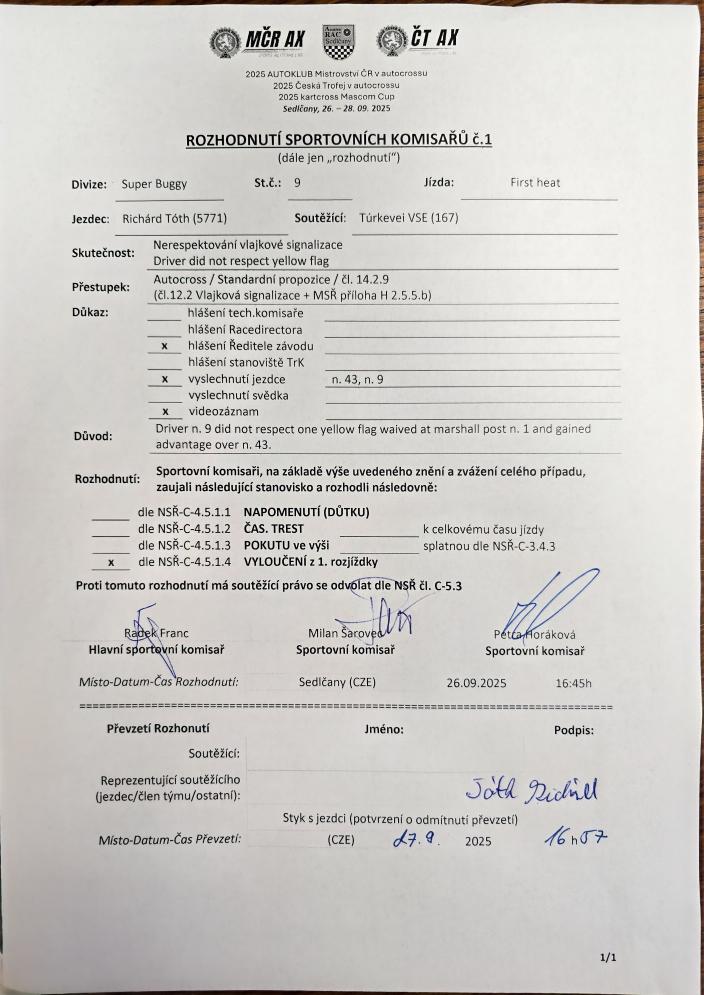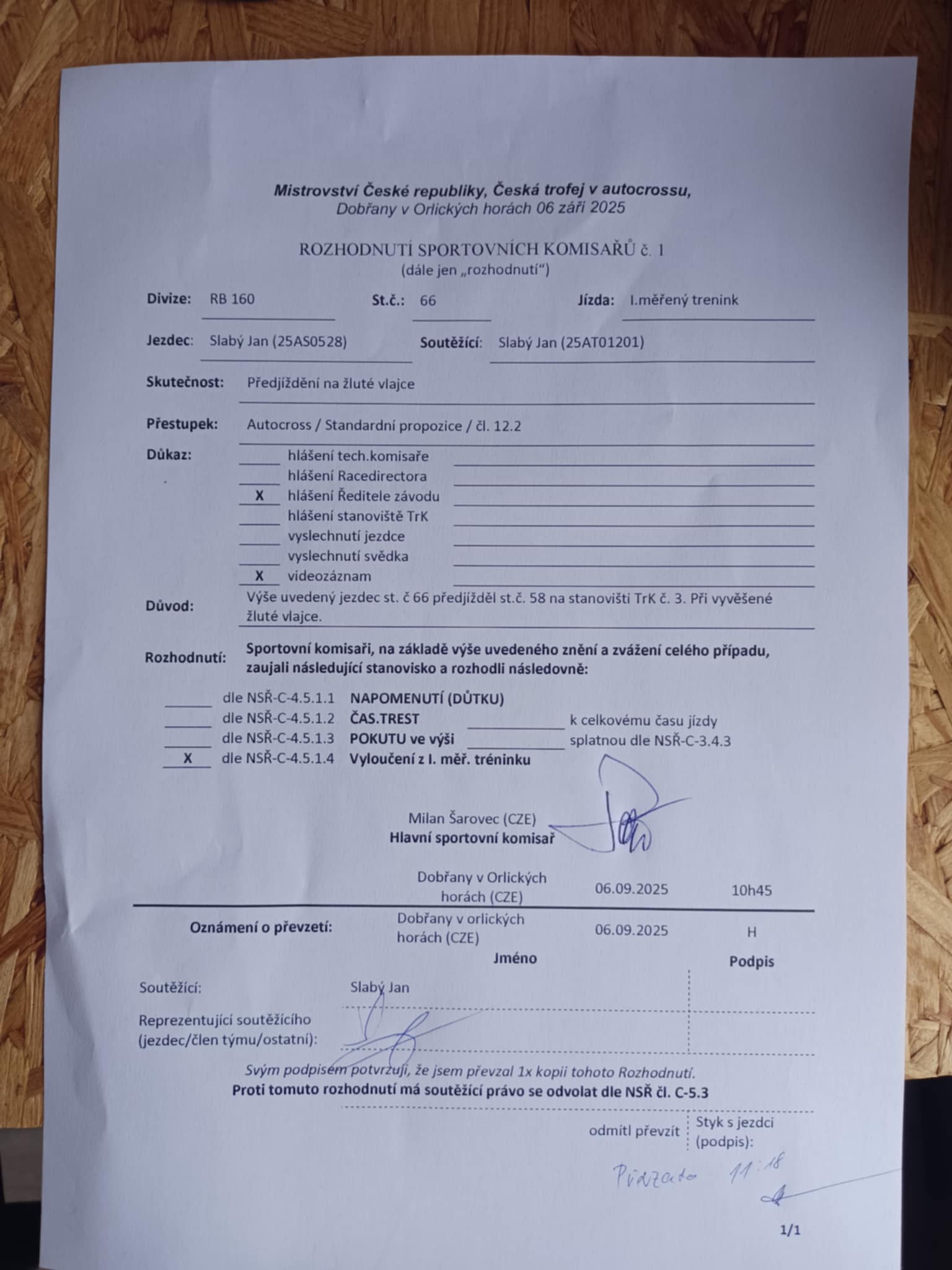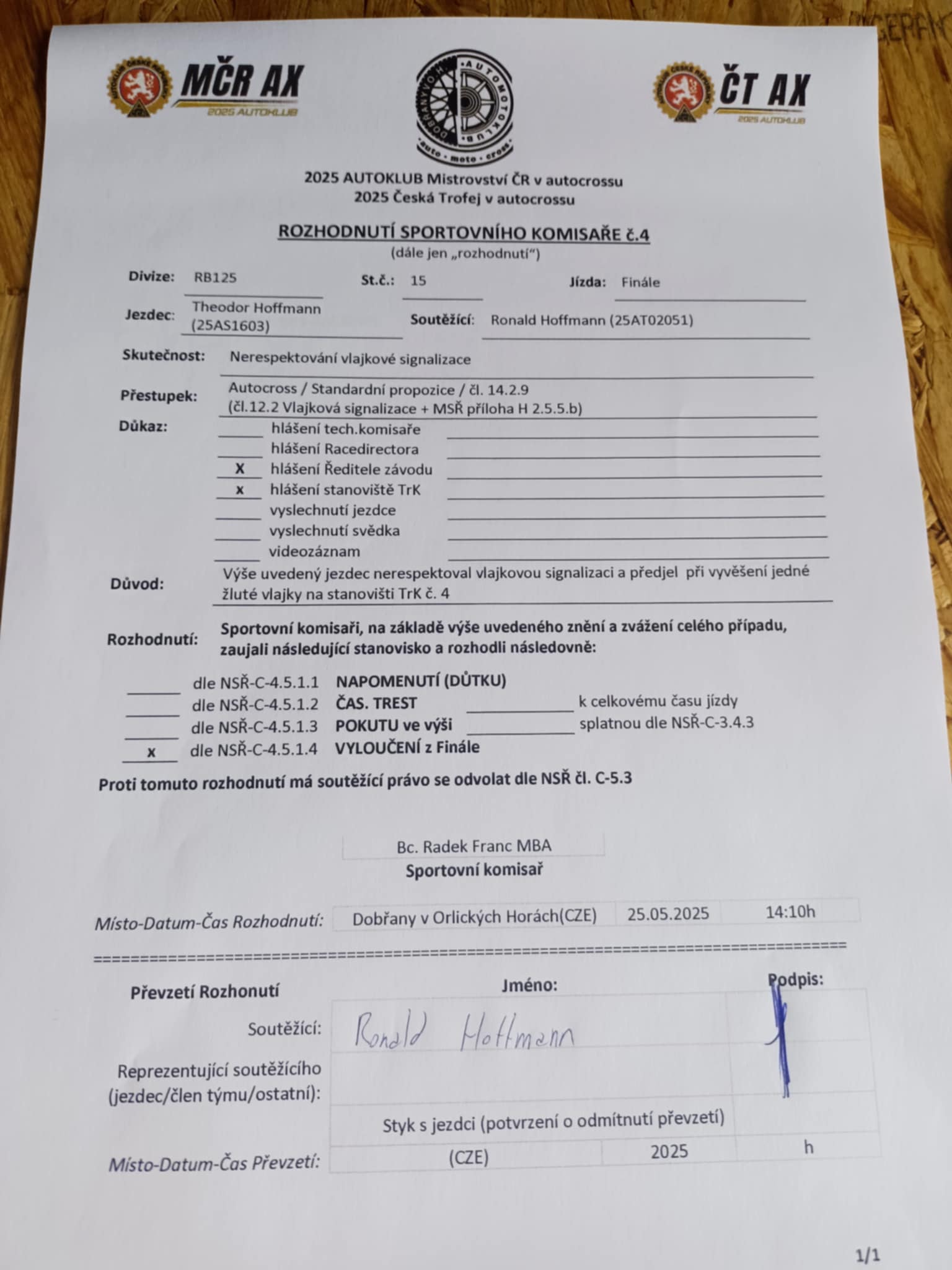 Rozhodnutí Race Direktora č. 8 - #68 Kartcross
