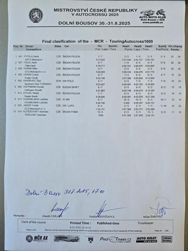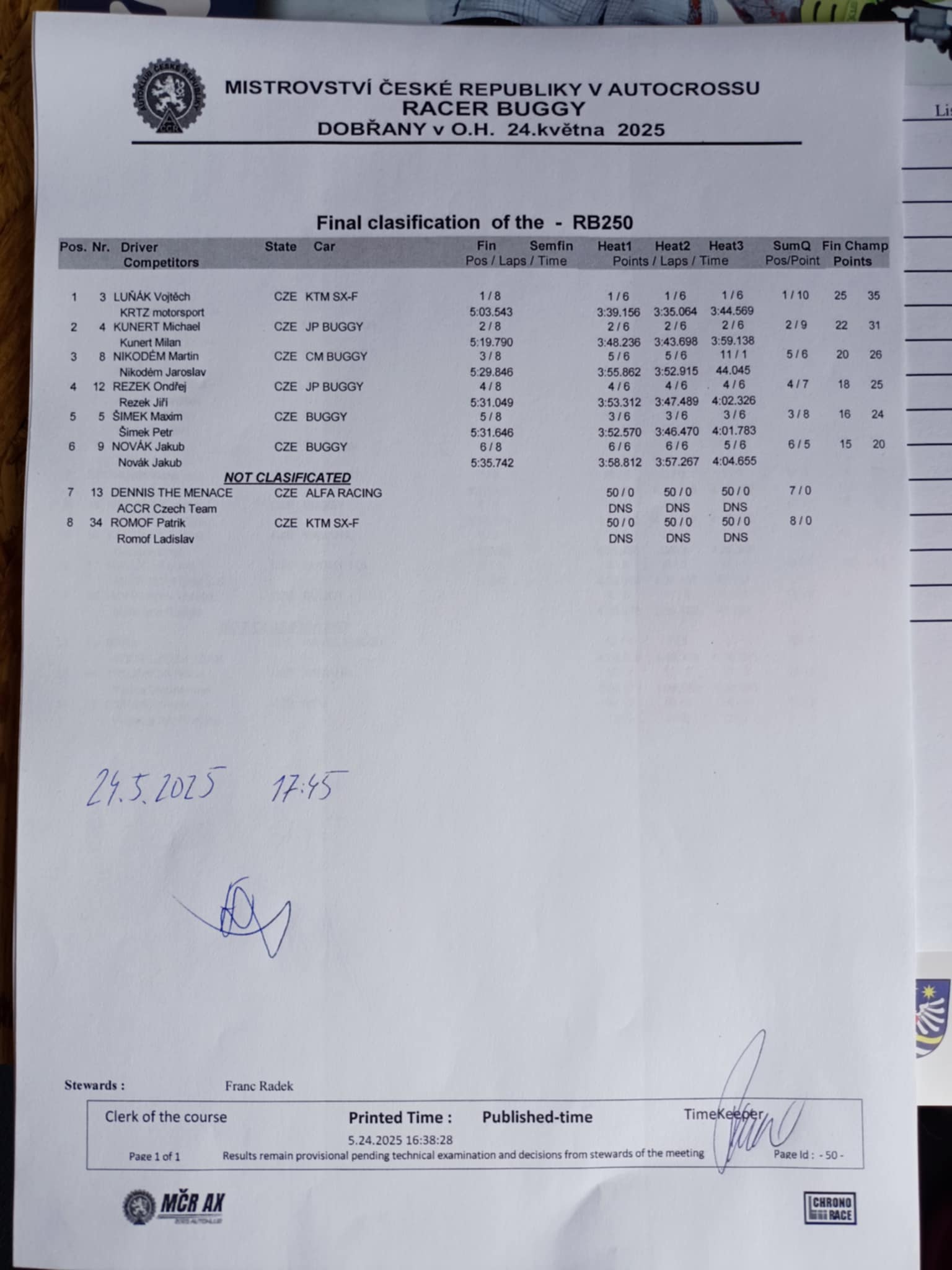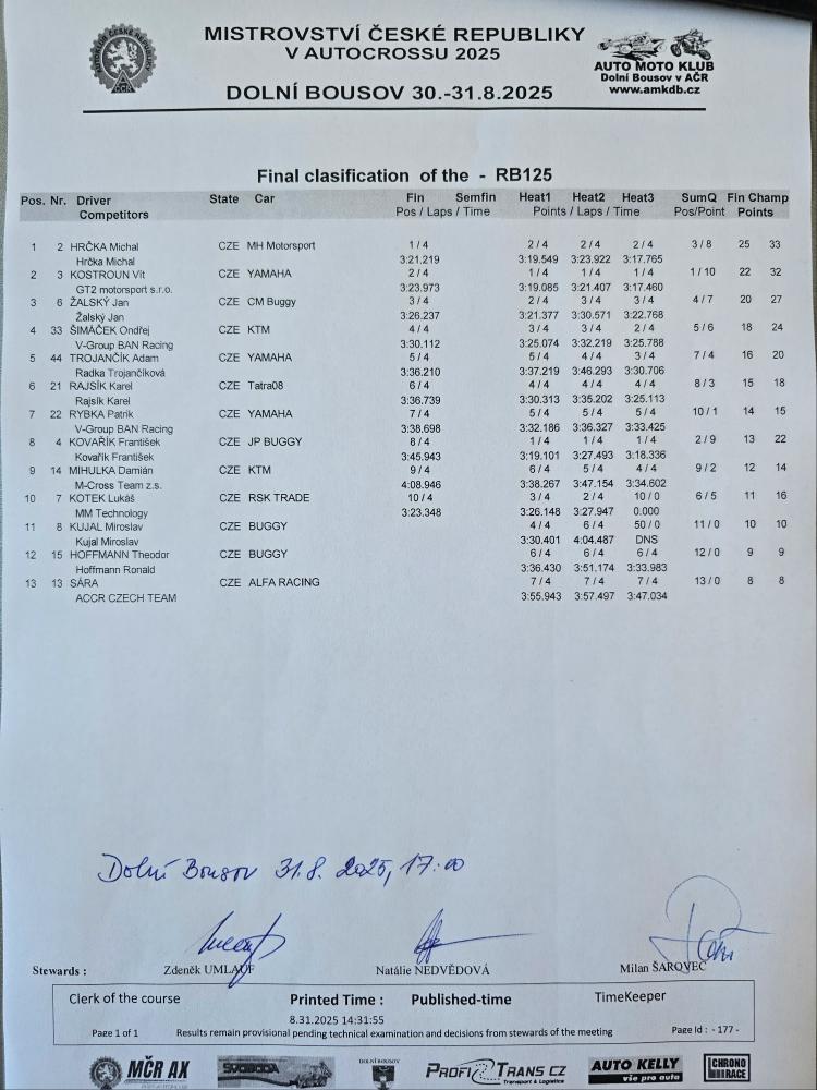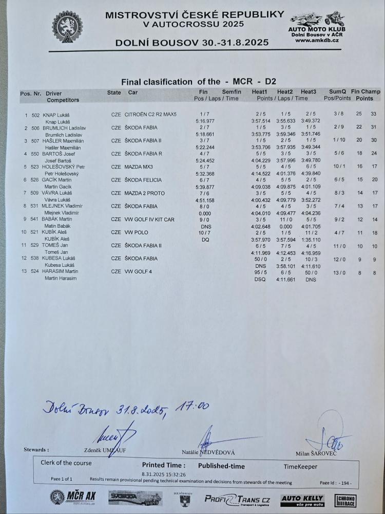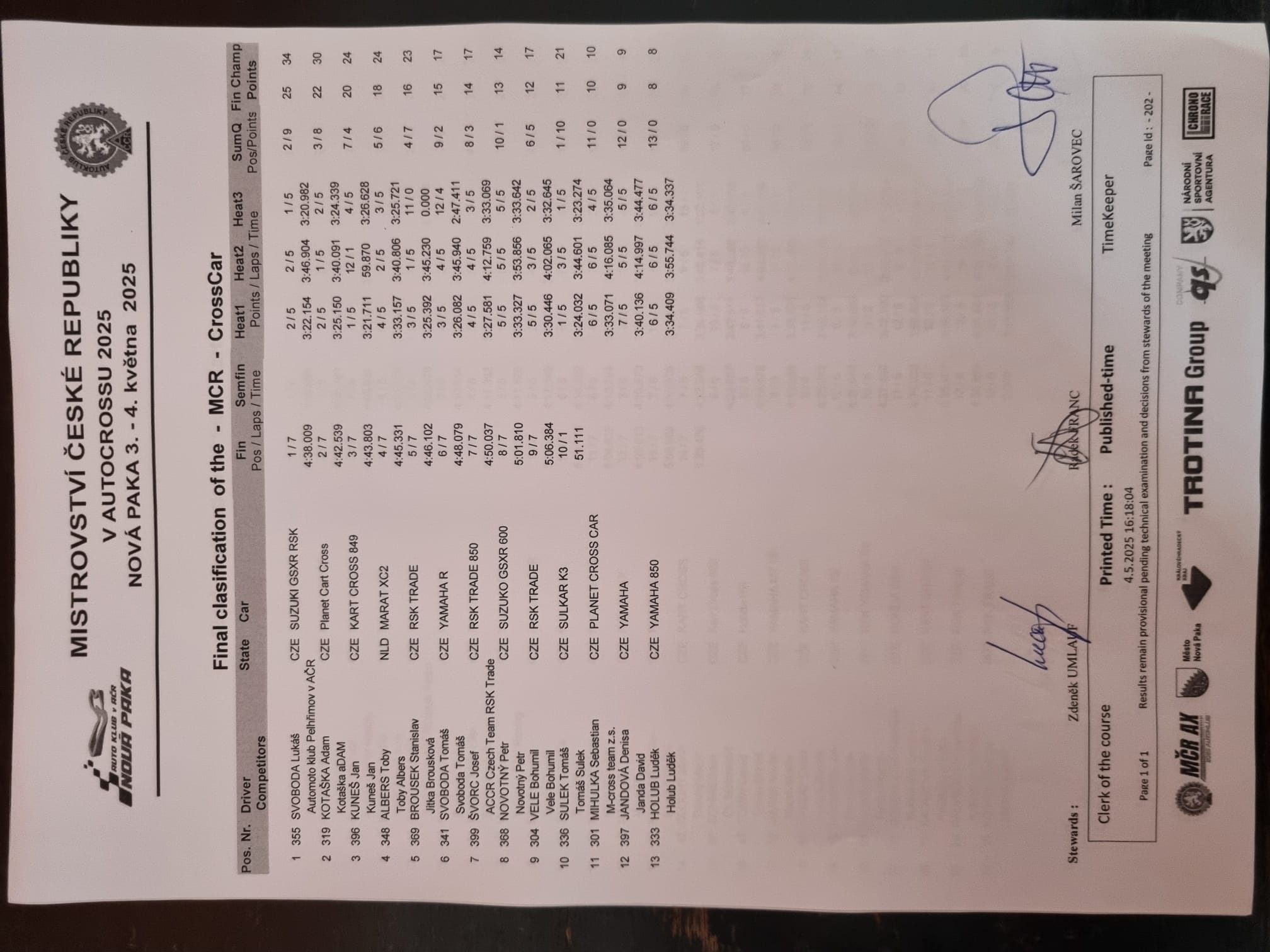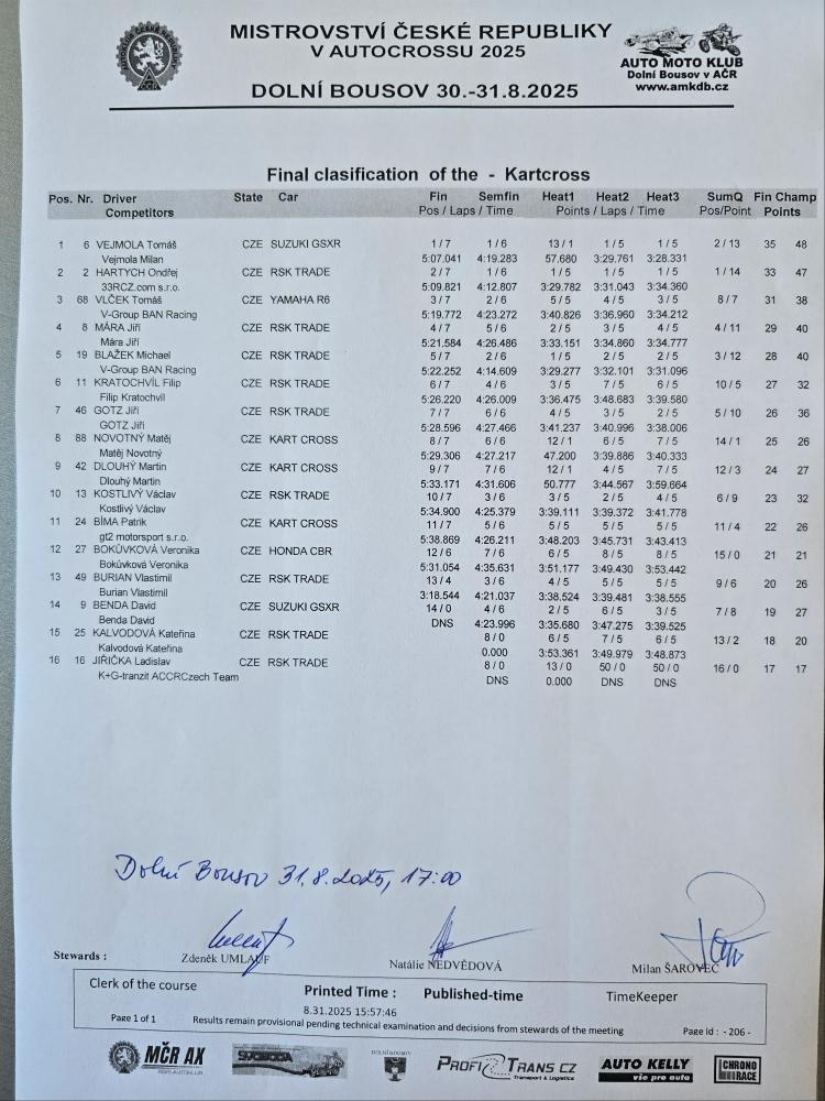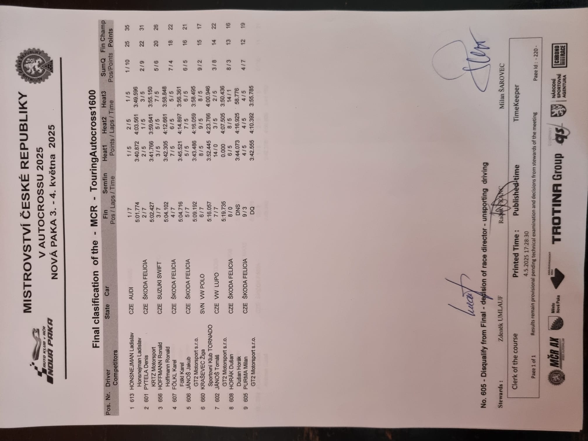 Rozhodnutí Race Direktora č. 8 - #68 Kartcross