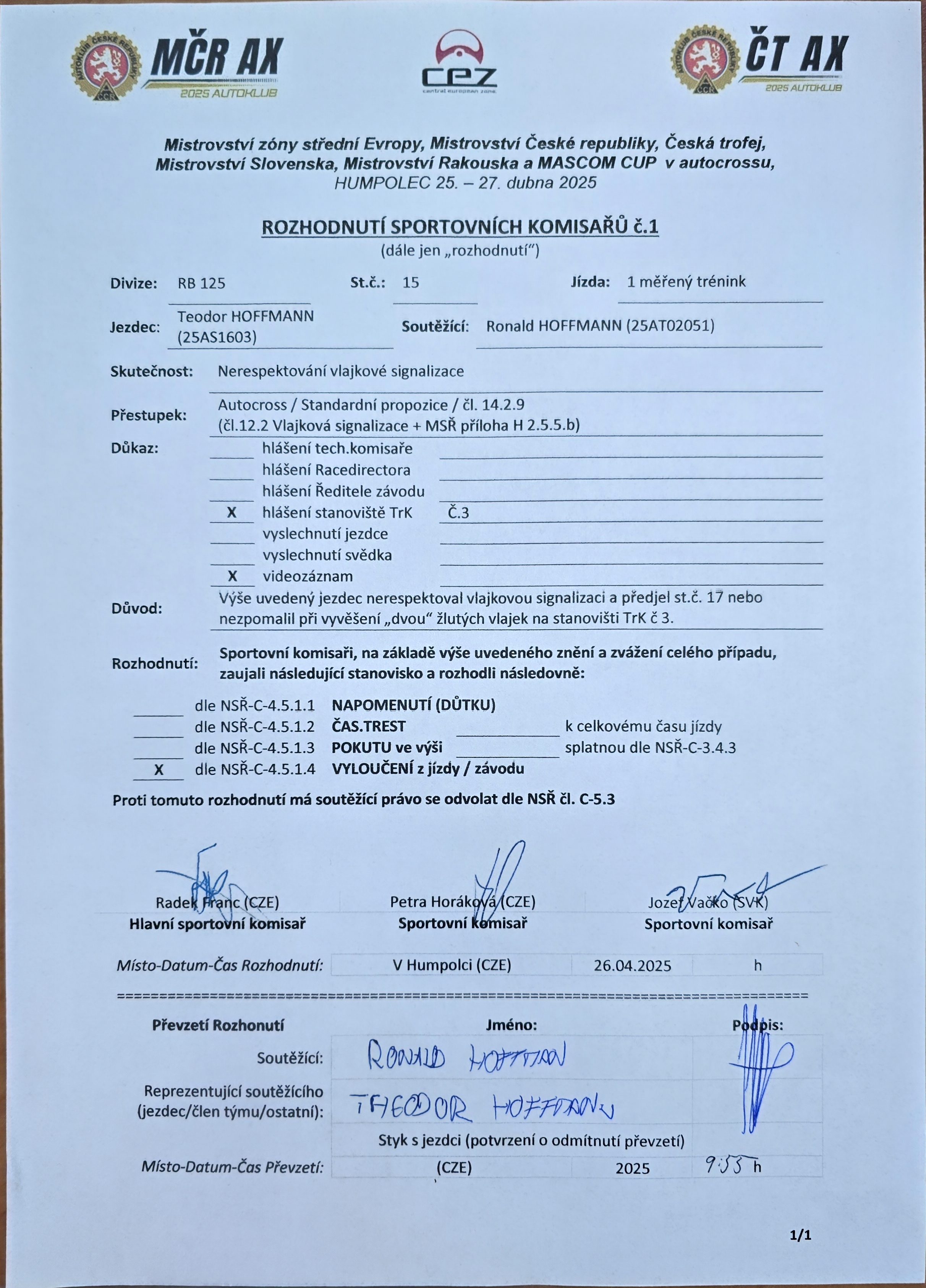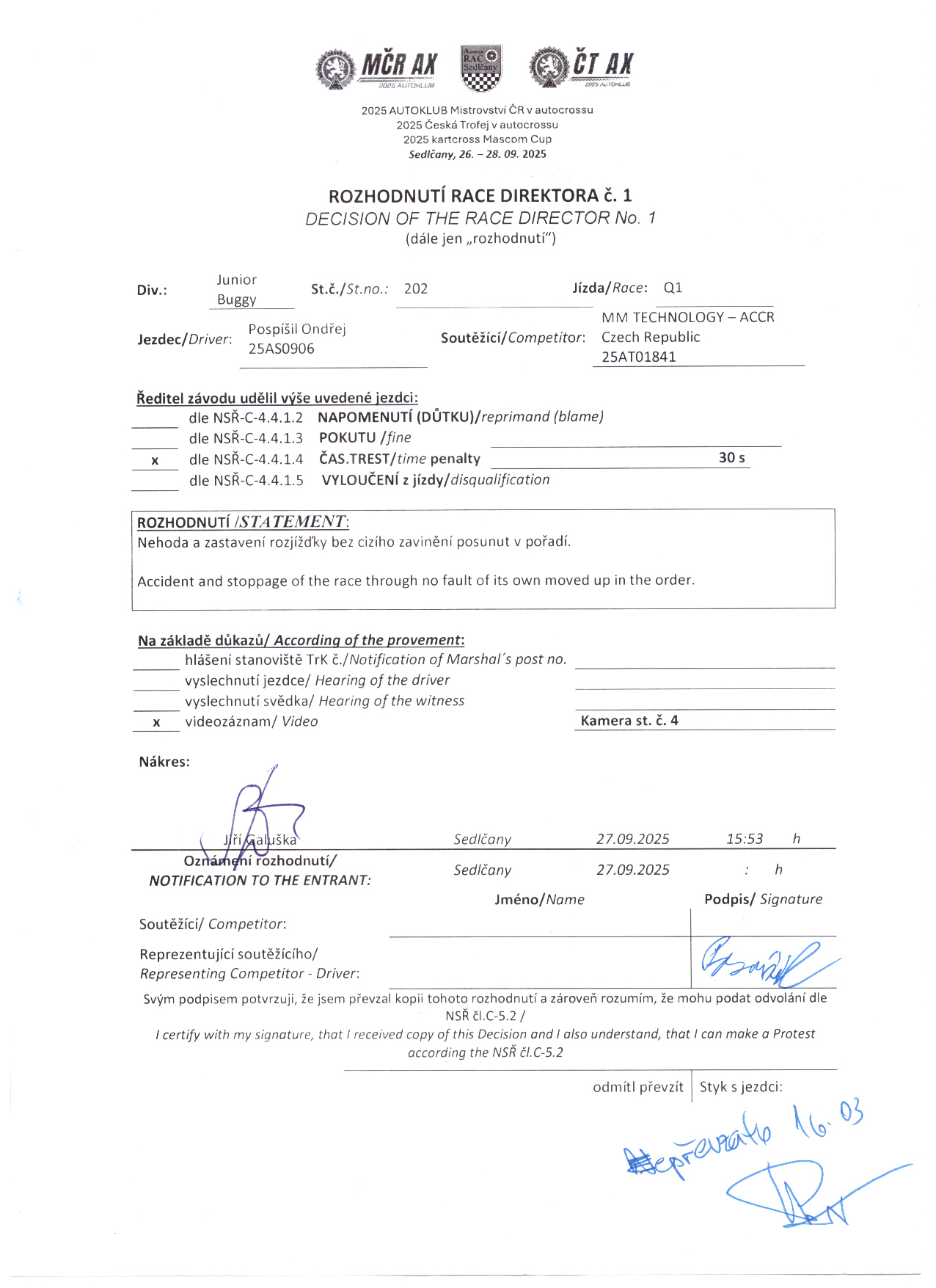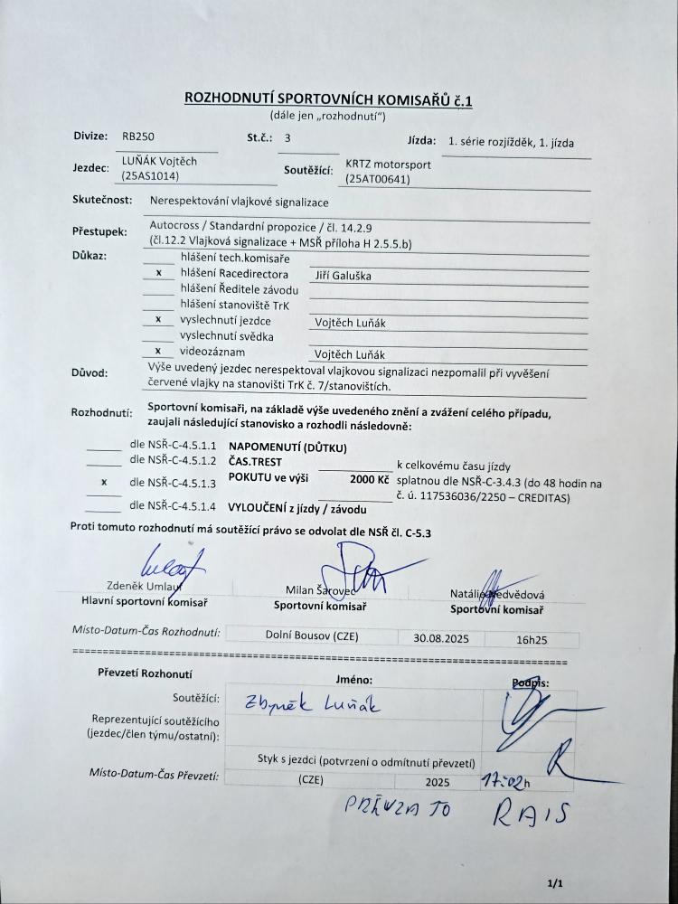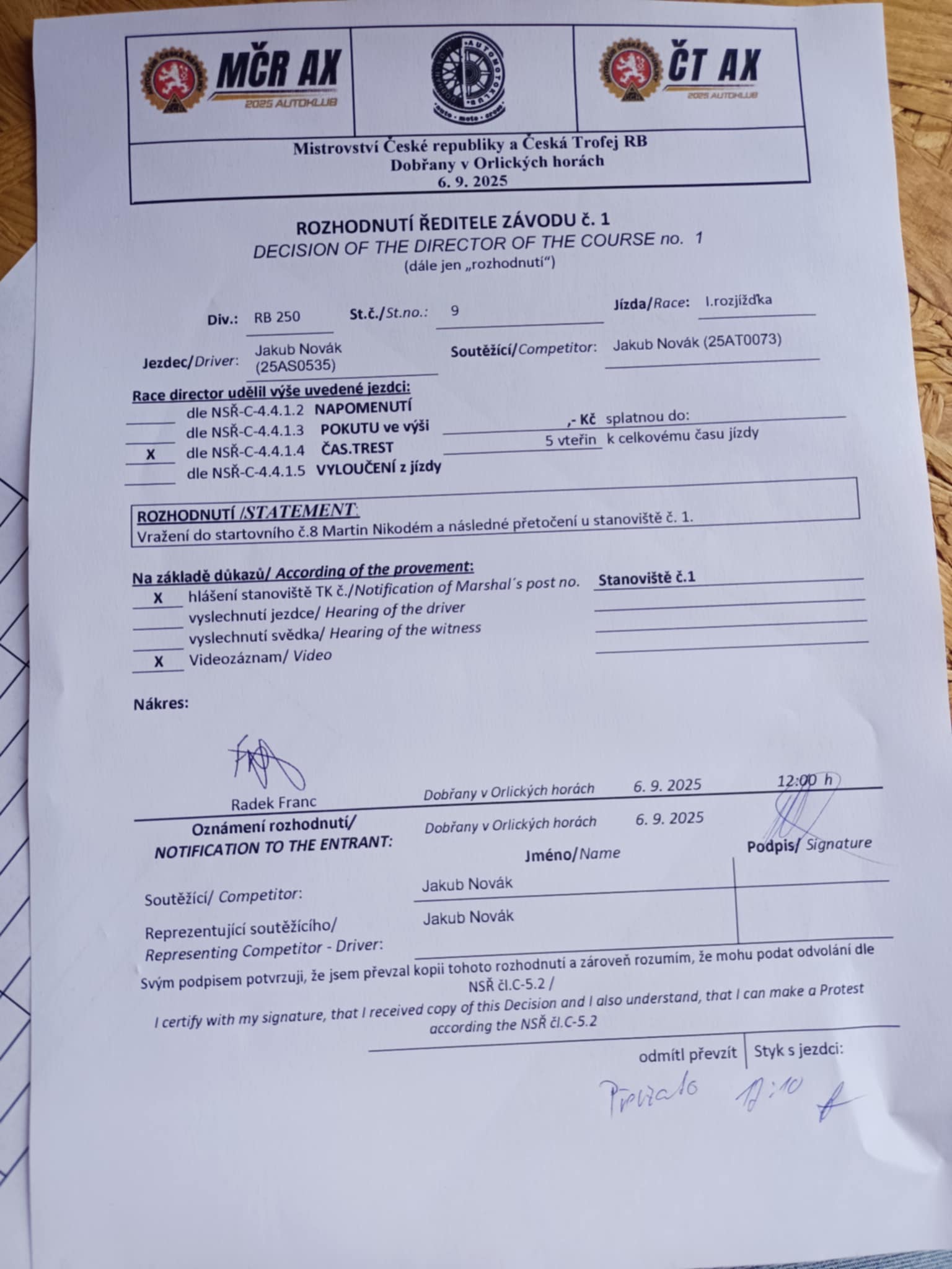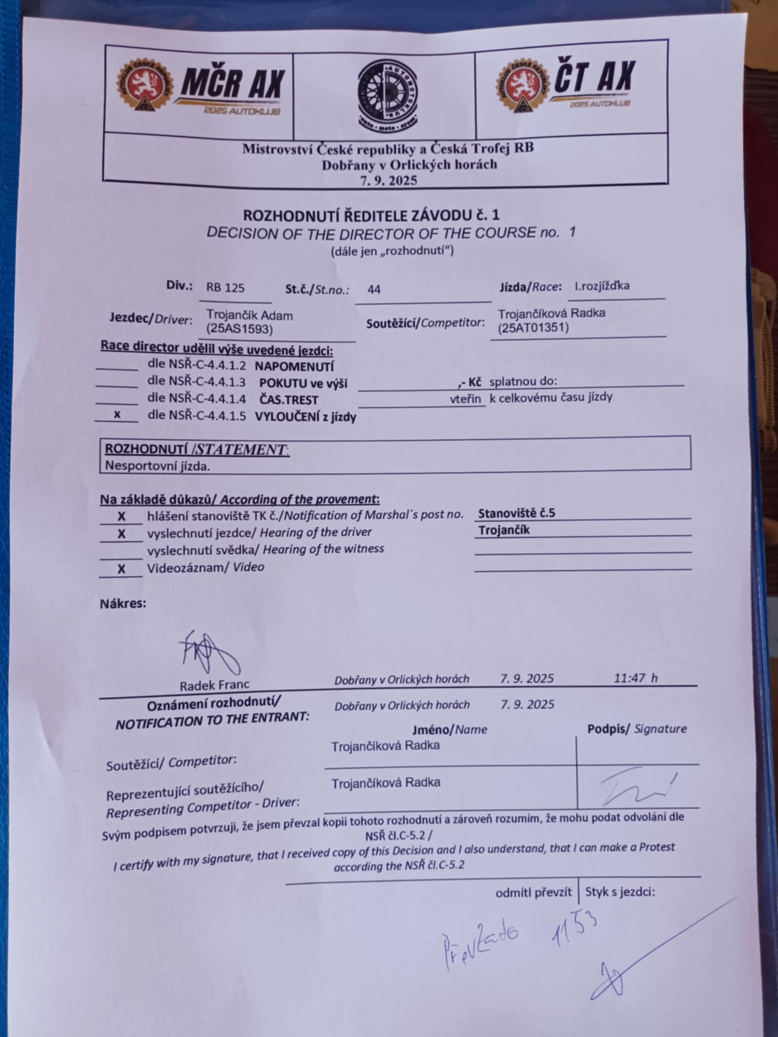 01-02 Rozhodnutí Racedirektora a Ředitele závodu