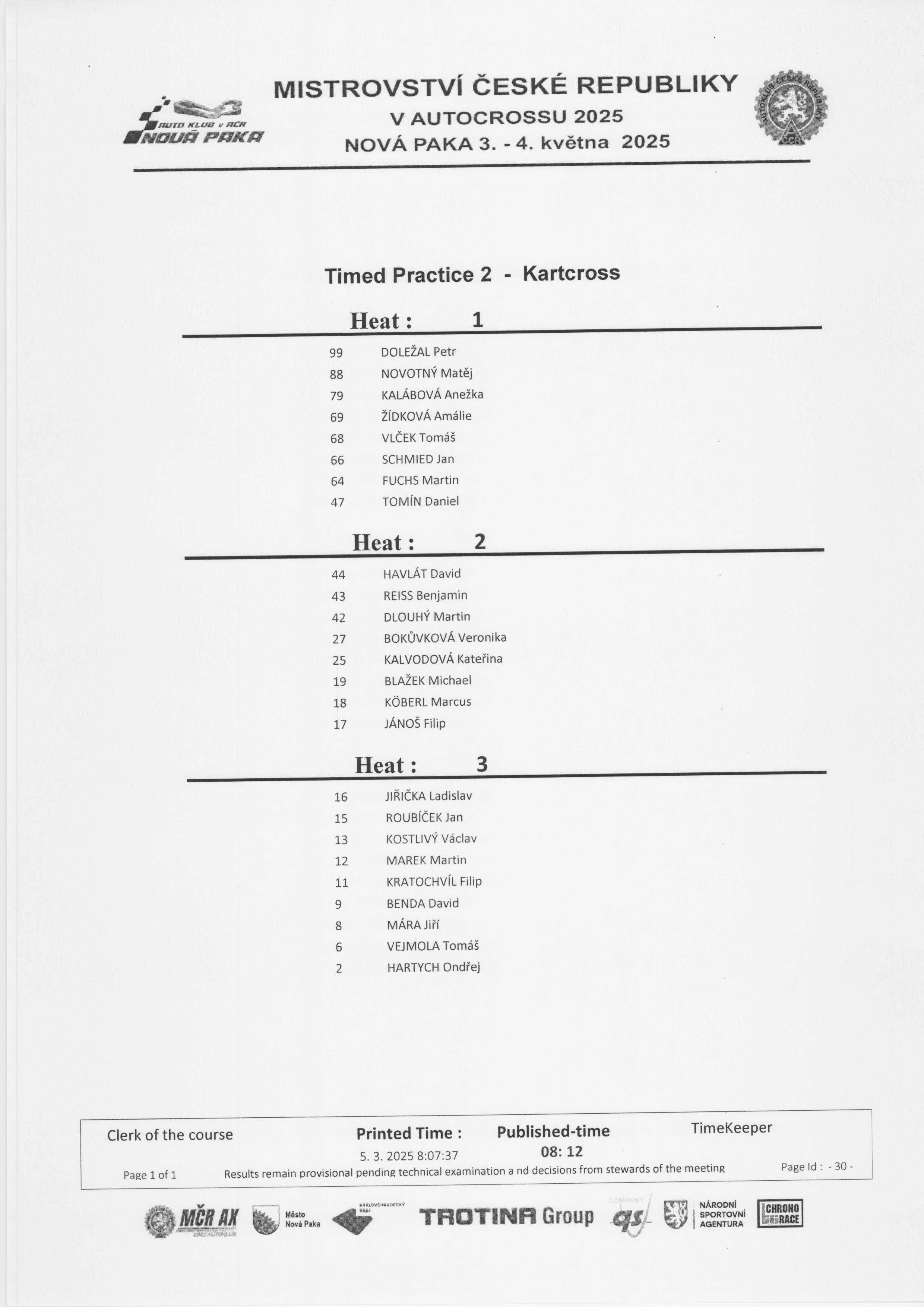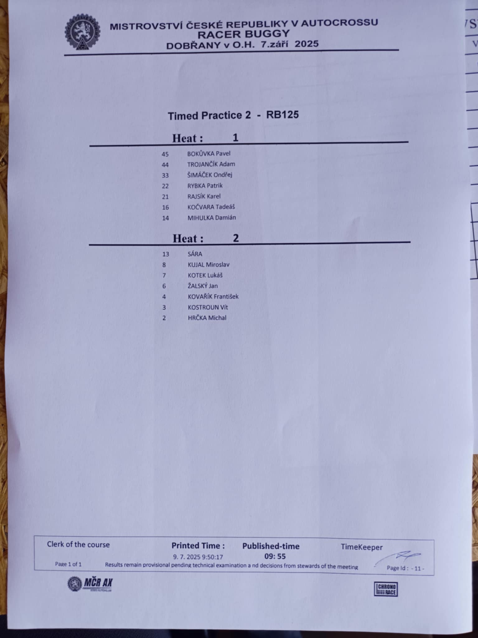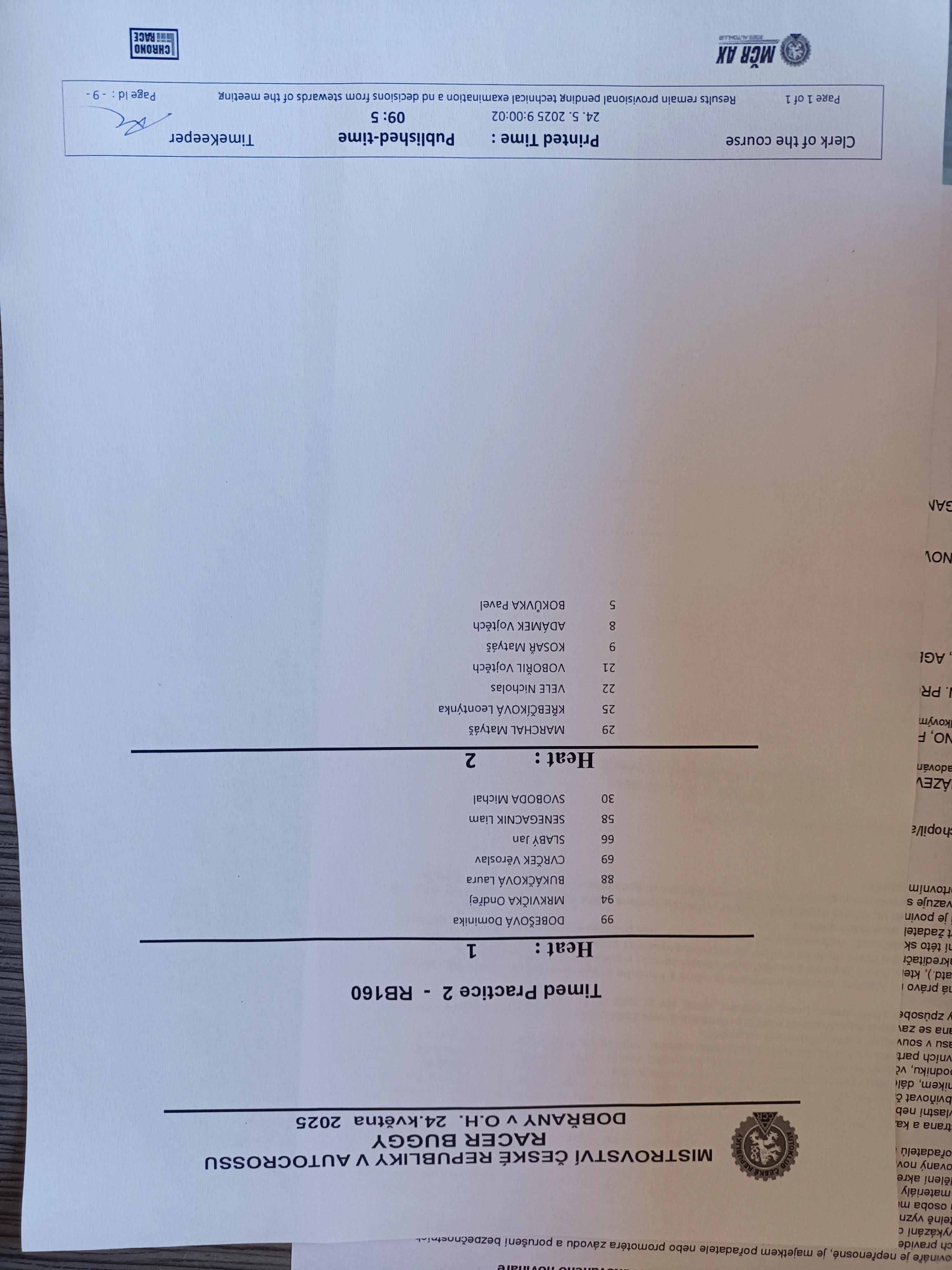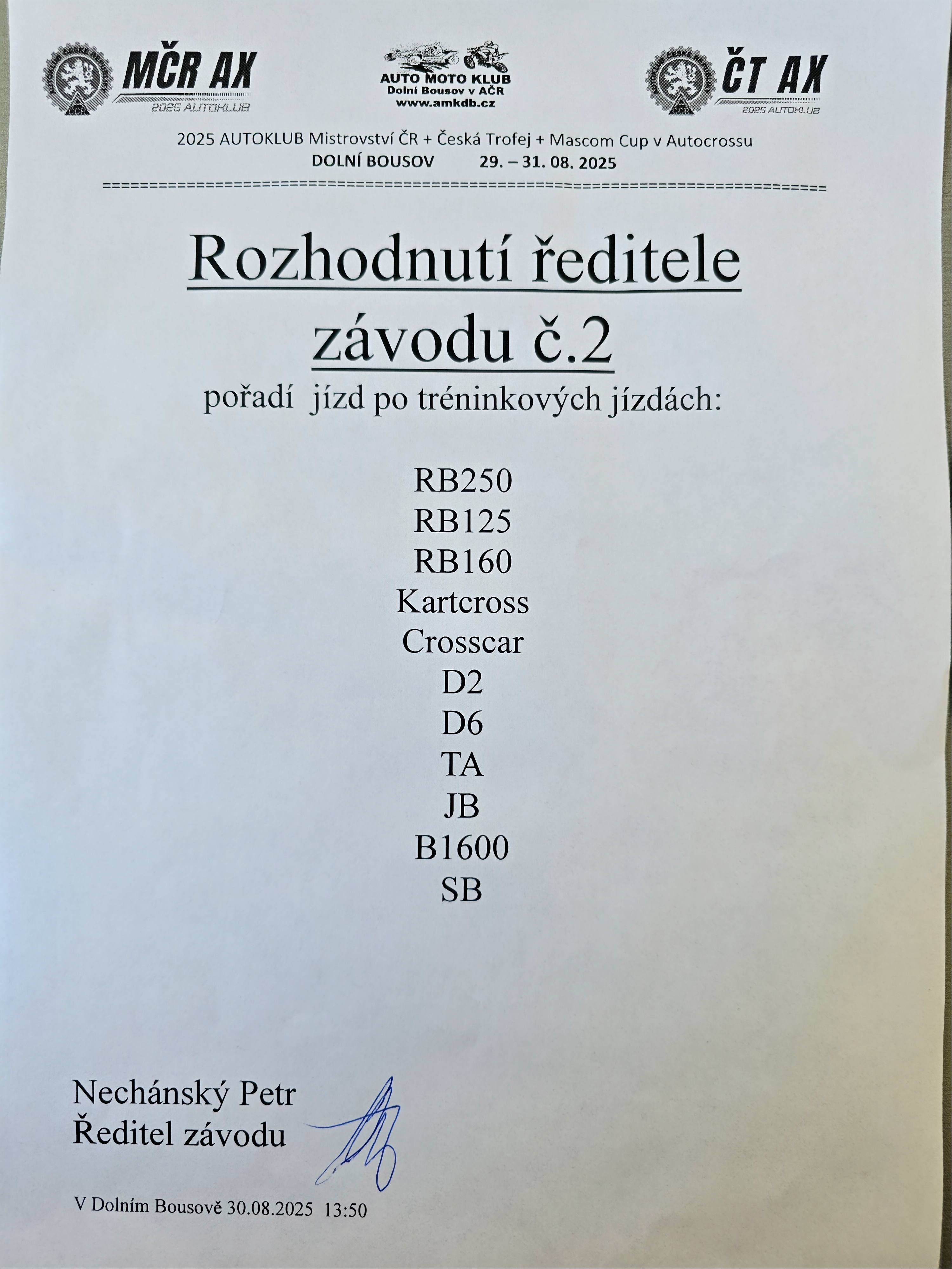 Rozhodnutí ředitele závodu č.2 - pořadí jízd 2.série rozjížděk
