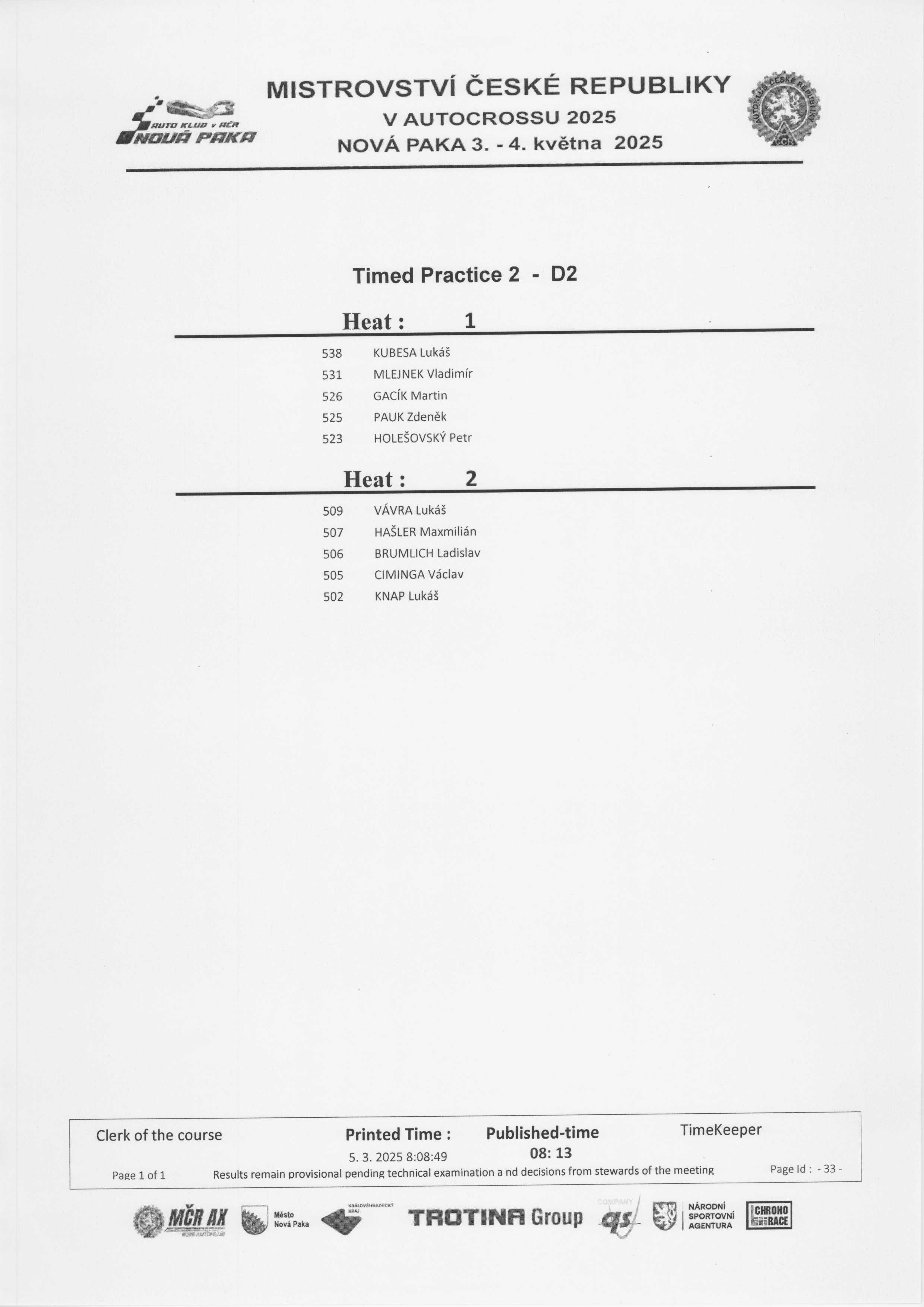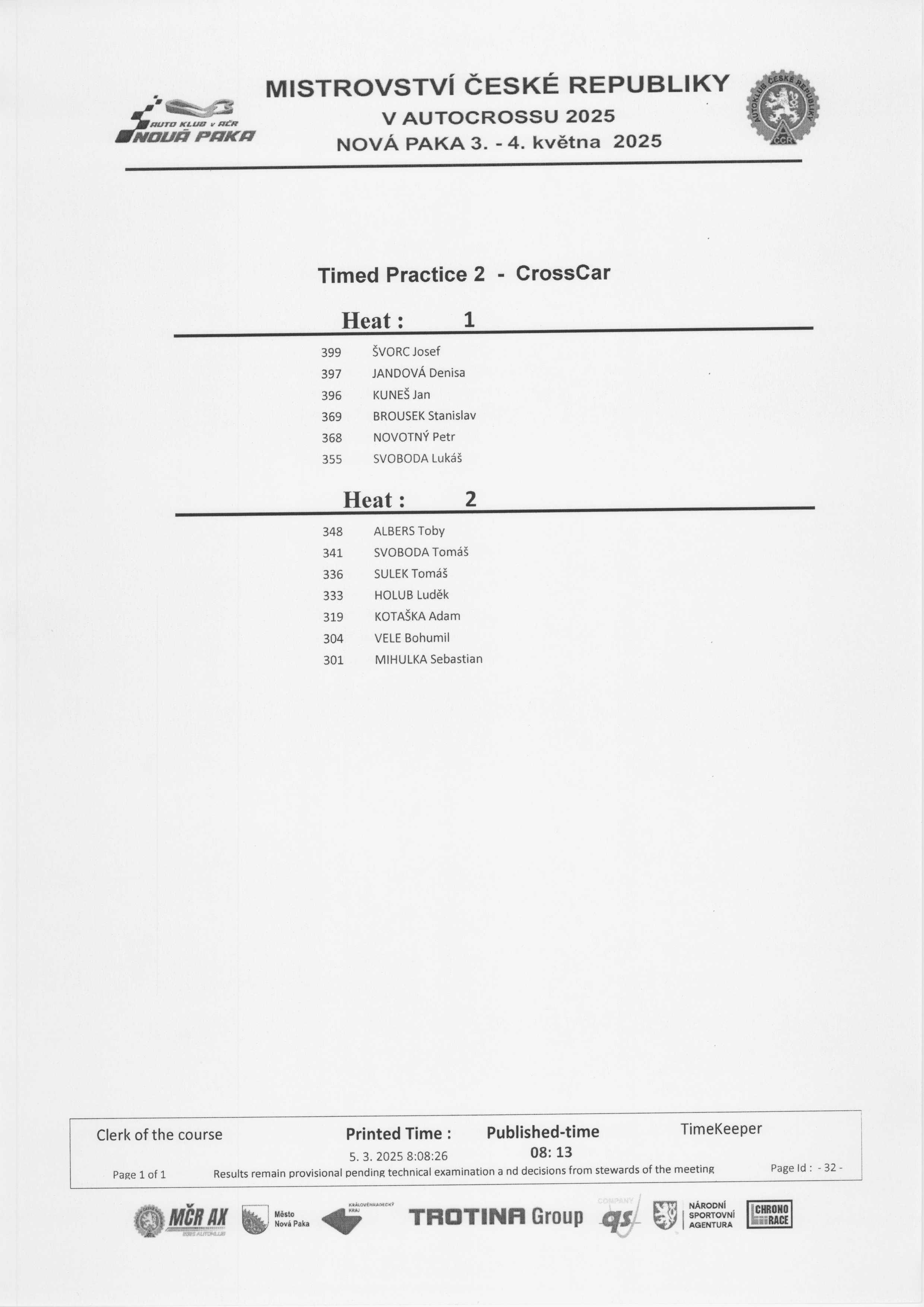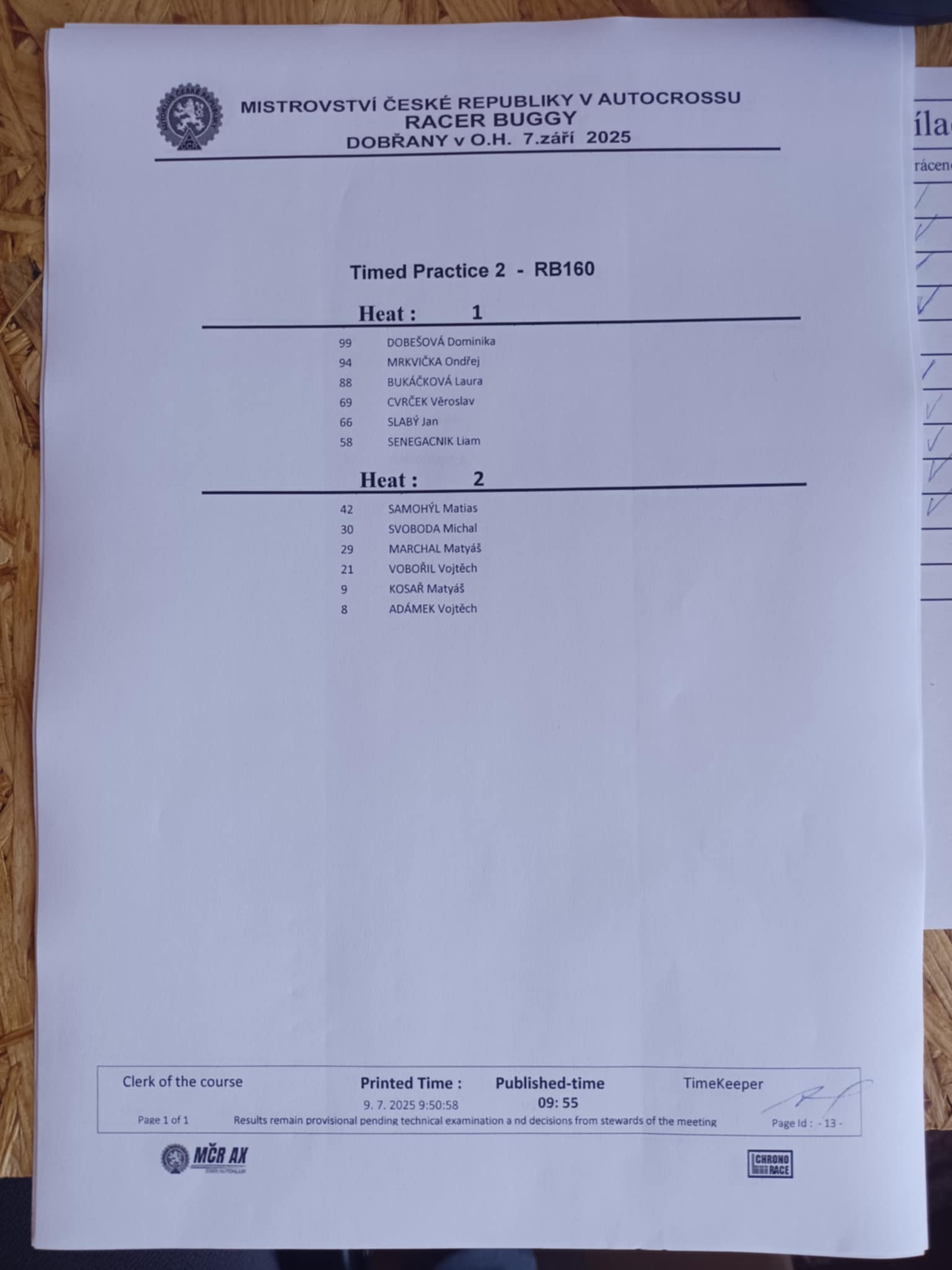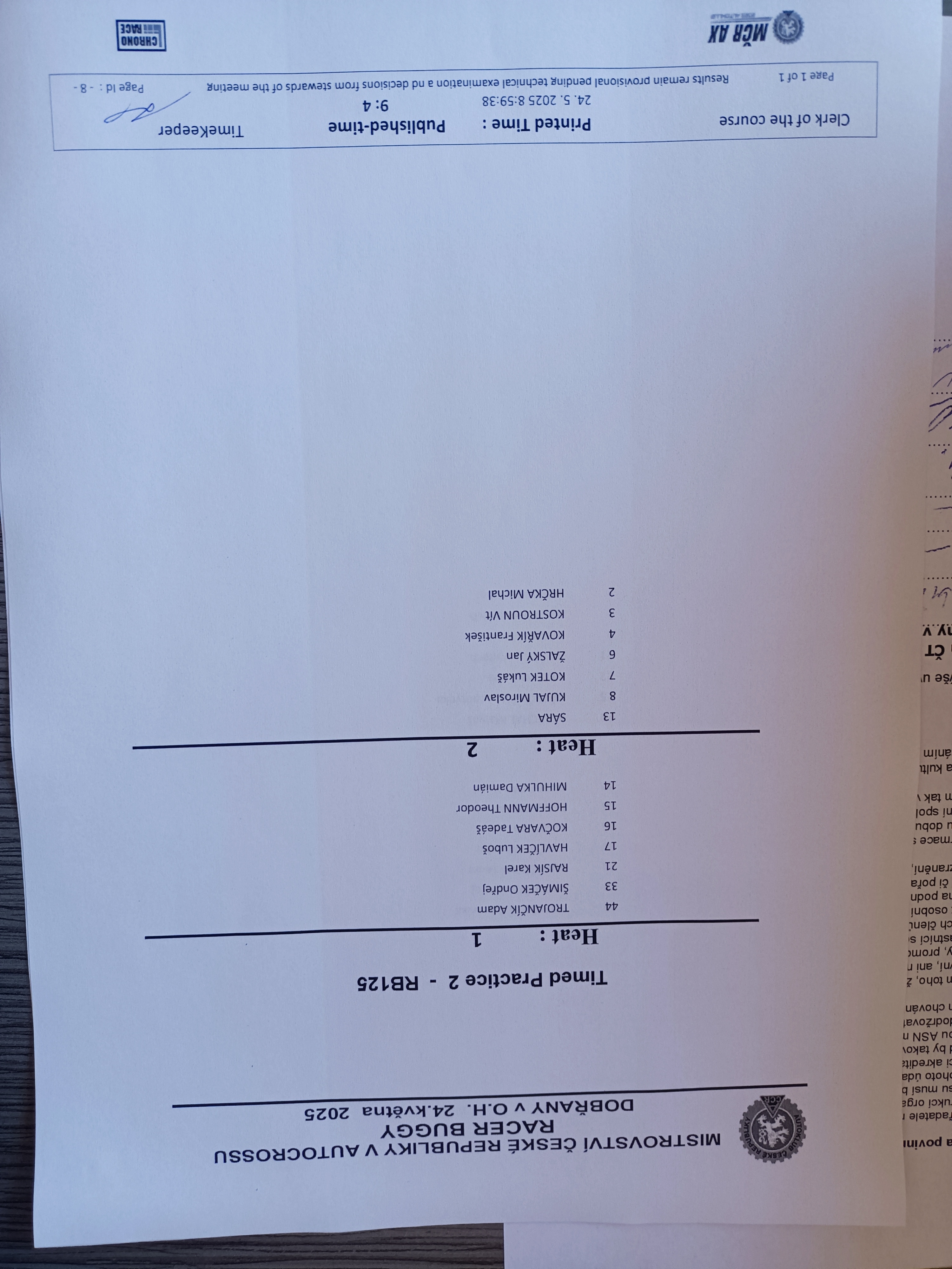 Rozhodnutí ředitele závodu č.2 - pořadí jízd 2.série rozjížděk