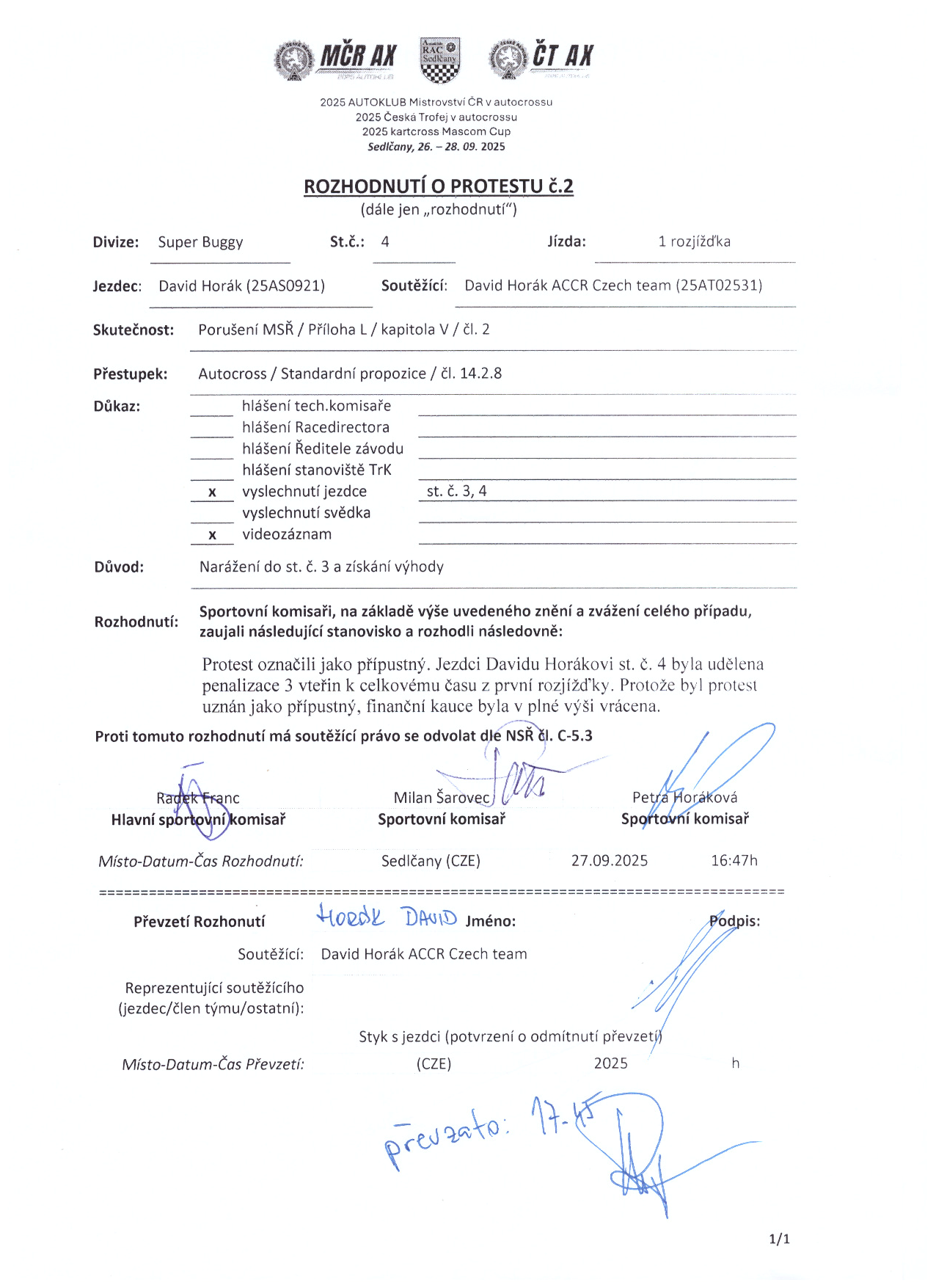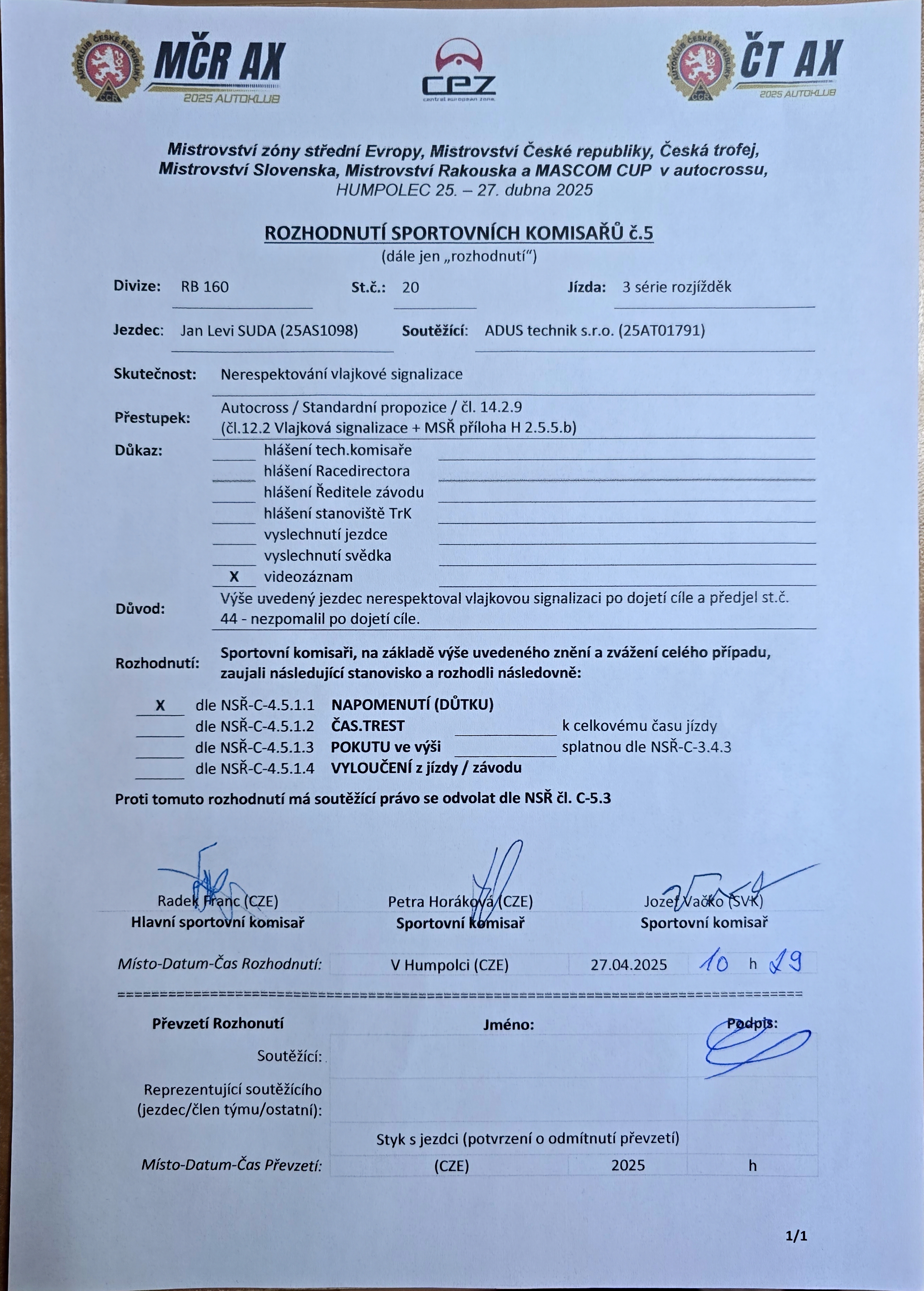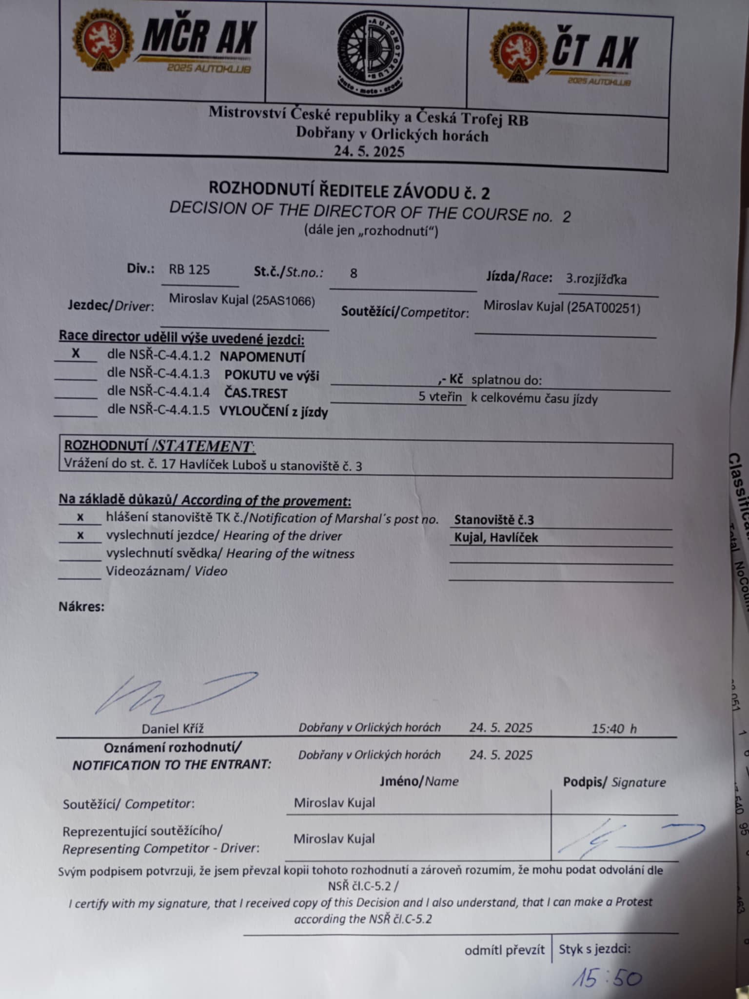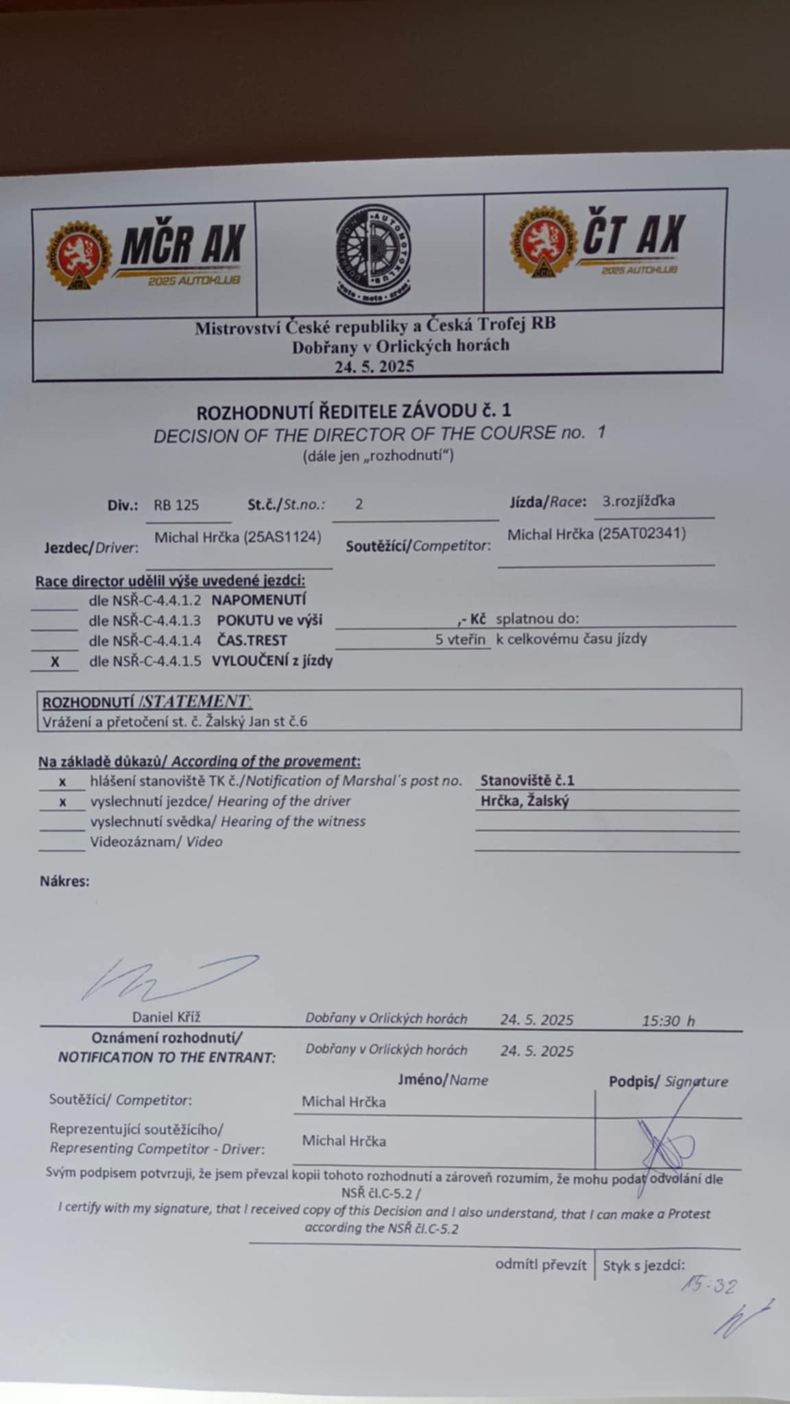 03-02 Rozhodnutí Racedirektora a Ředitele závodu