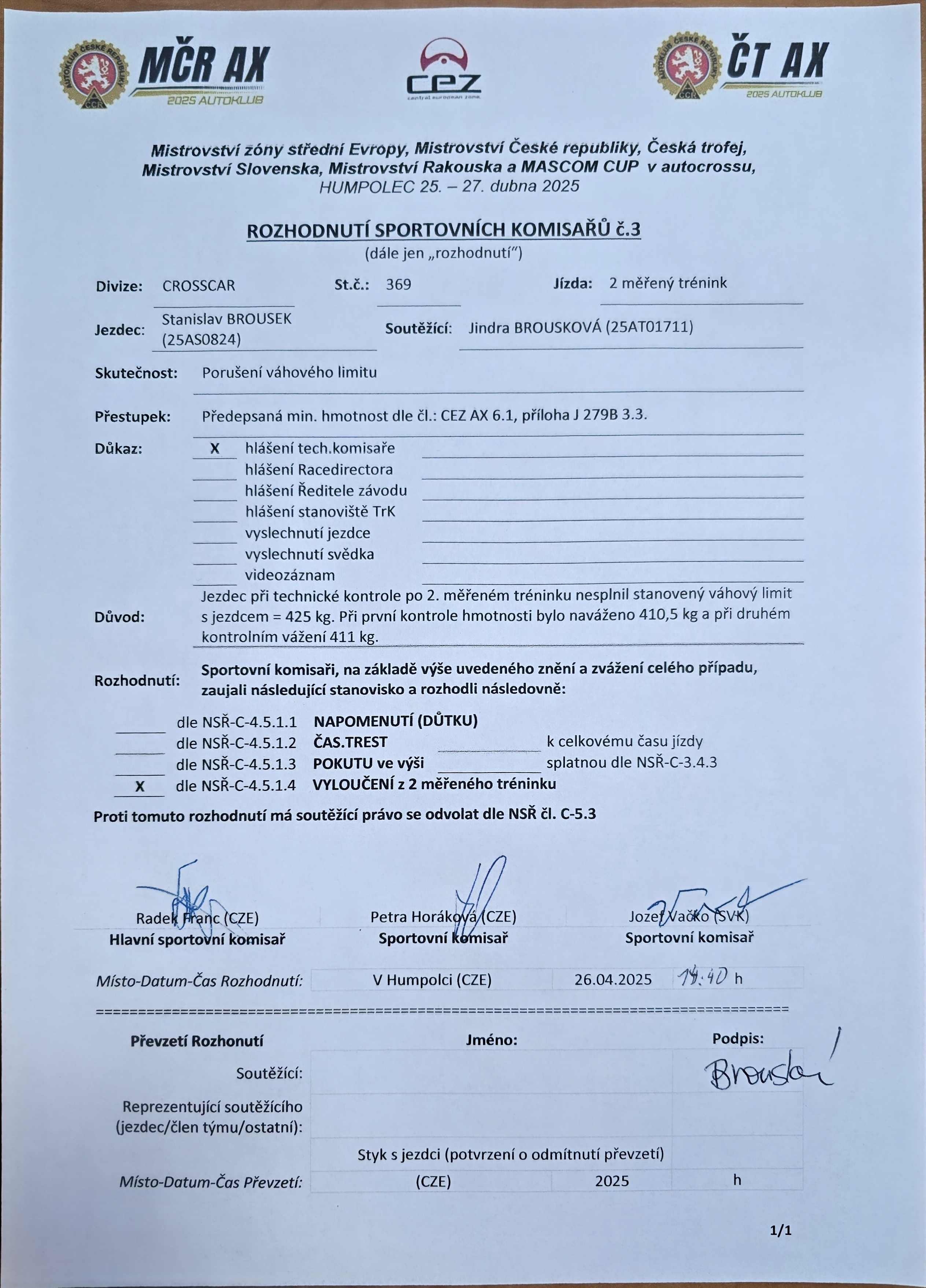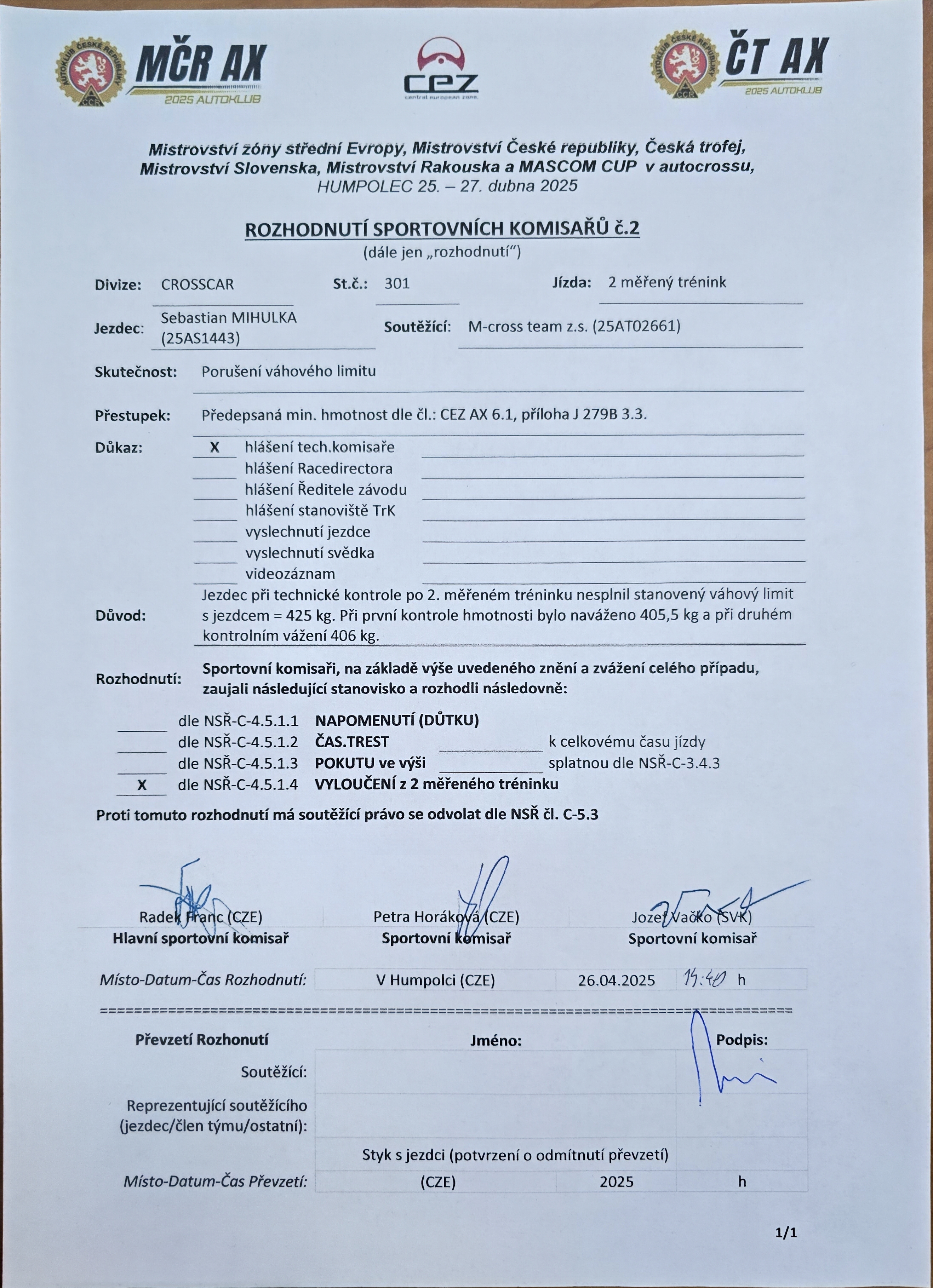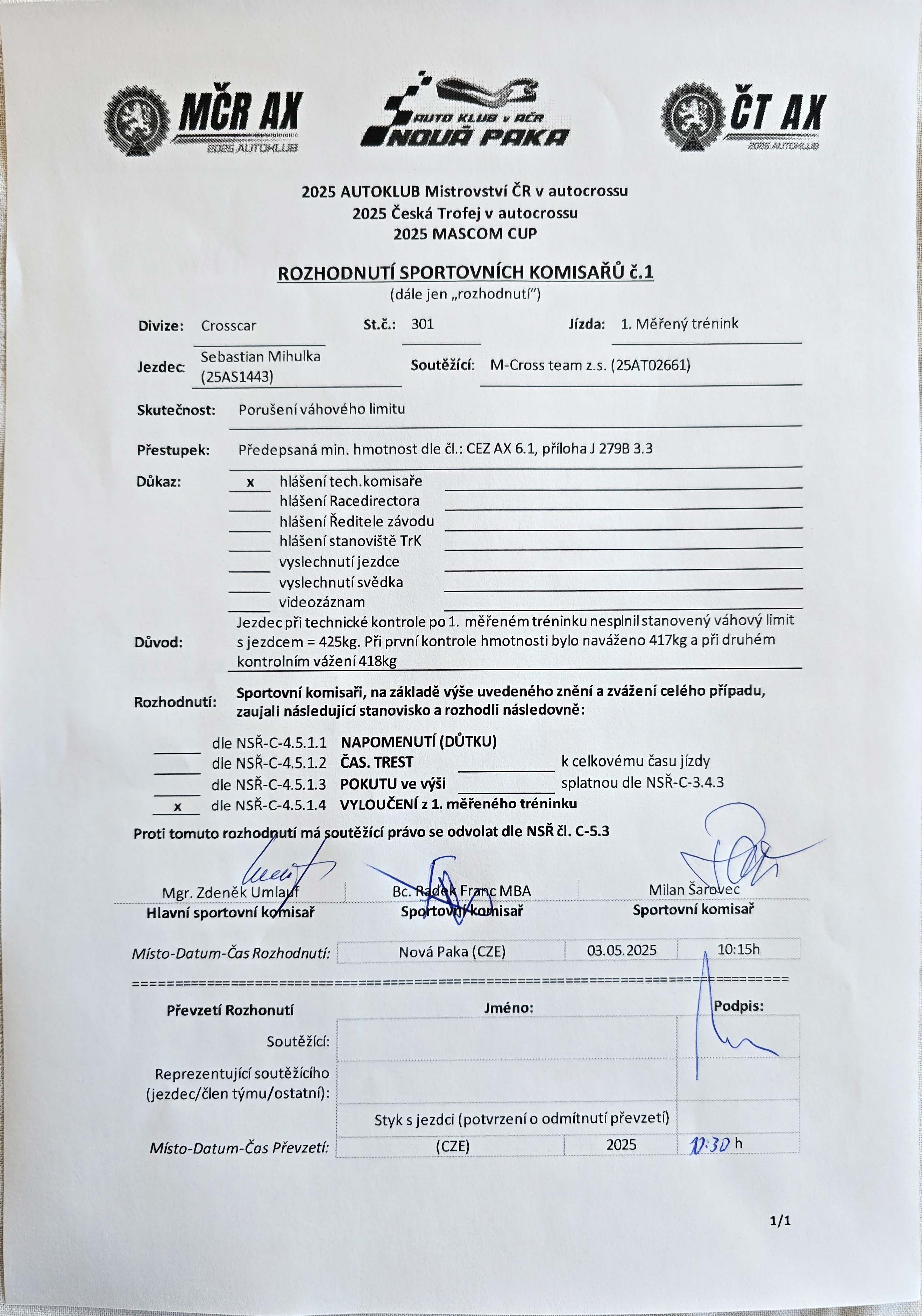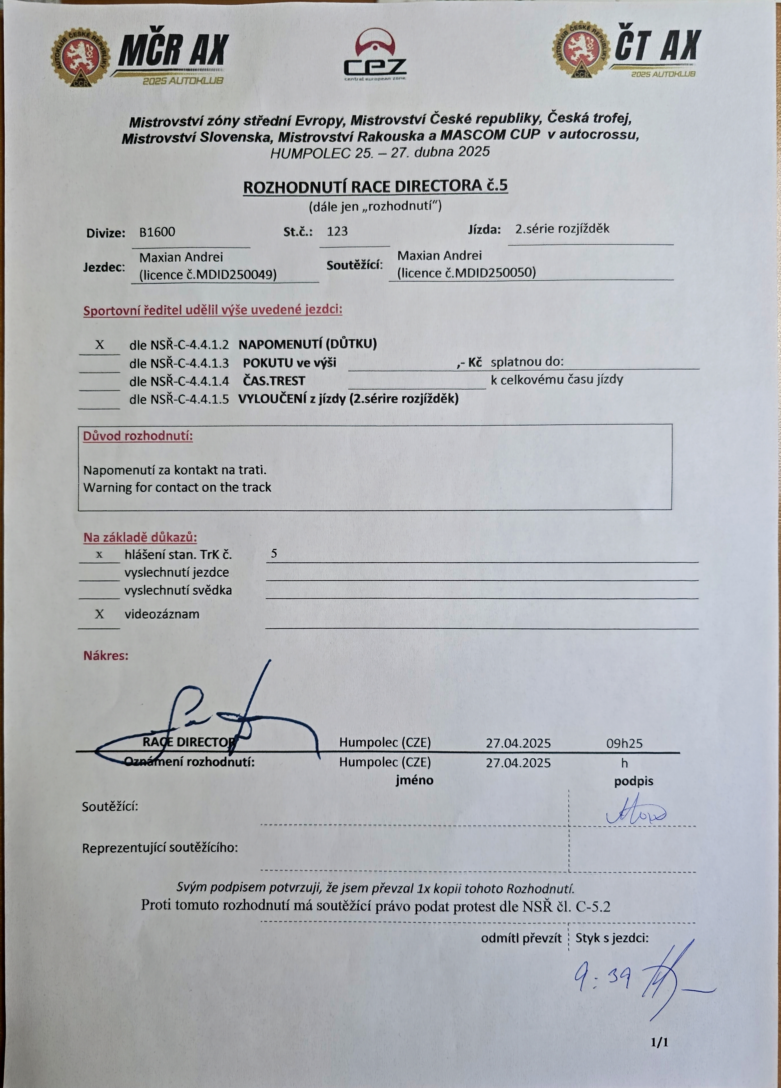 03-02 Rozhodnutí Racedirektora a Ředitele závodu