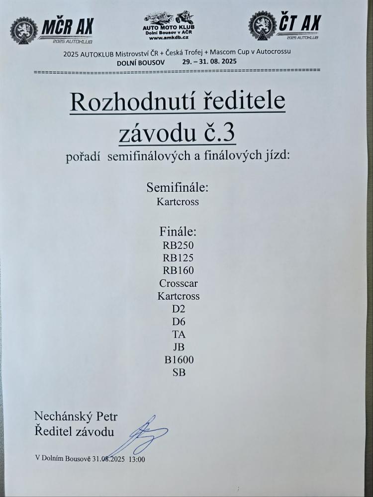 Rozhodnutí ředitele závodu č.3 - semifinále a finále