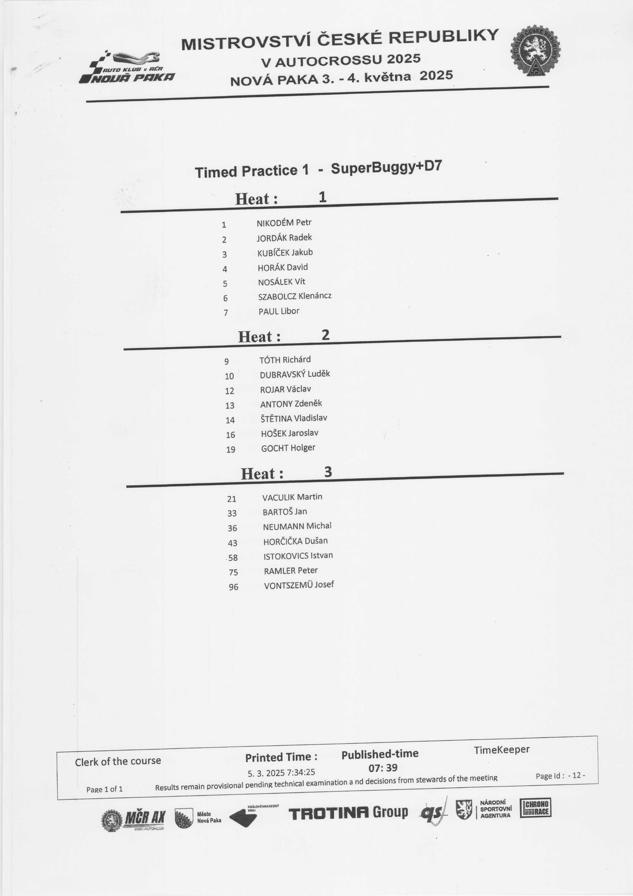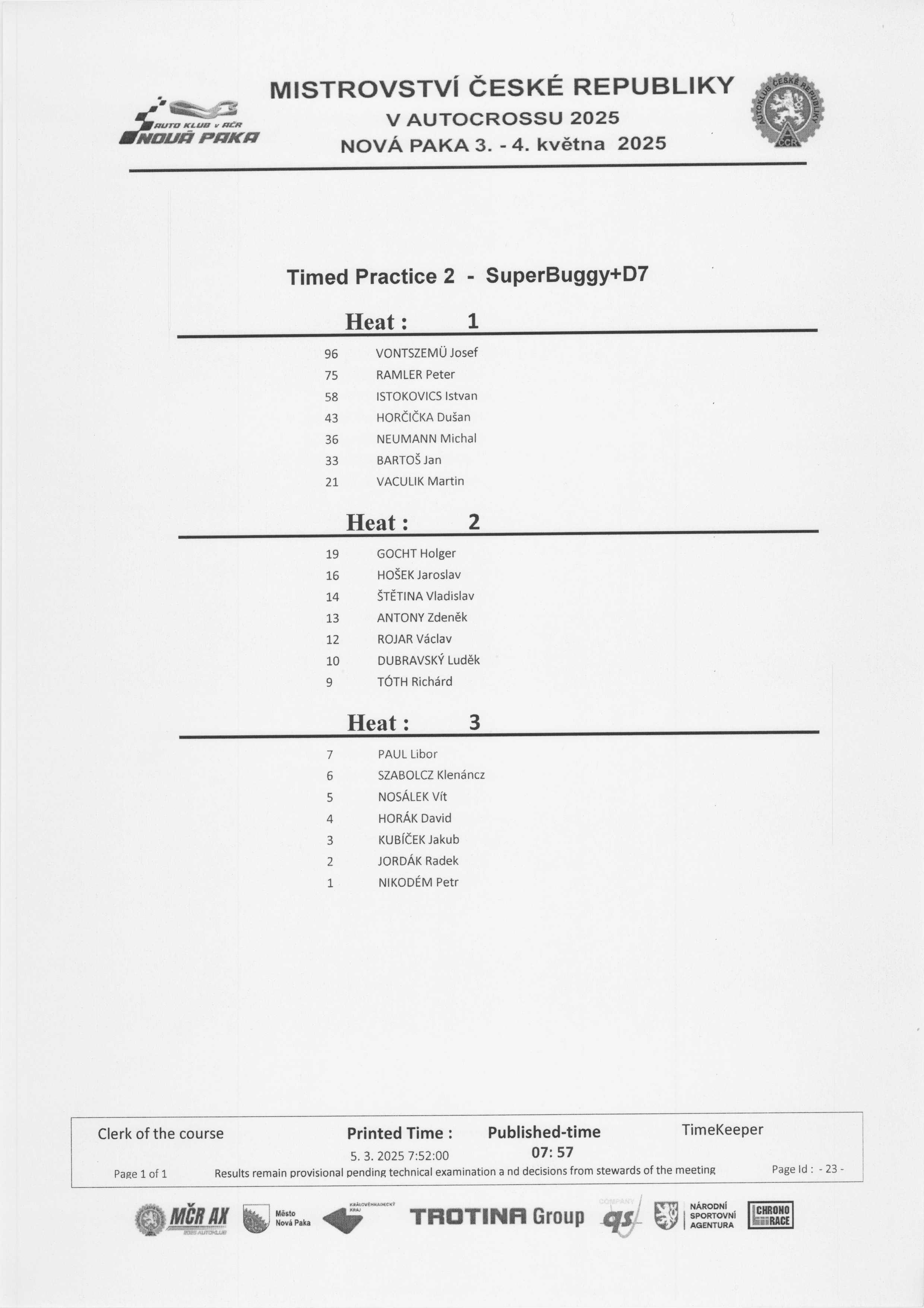 1. série rozjížděk: Opakovaná 1. jízda Super Buggy bude po odjetí 2. jízdy Super Buggy.