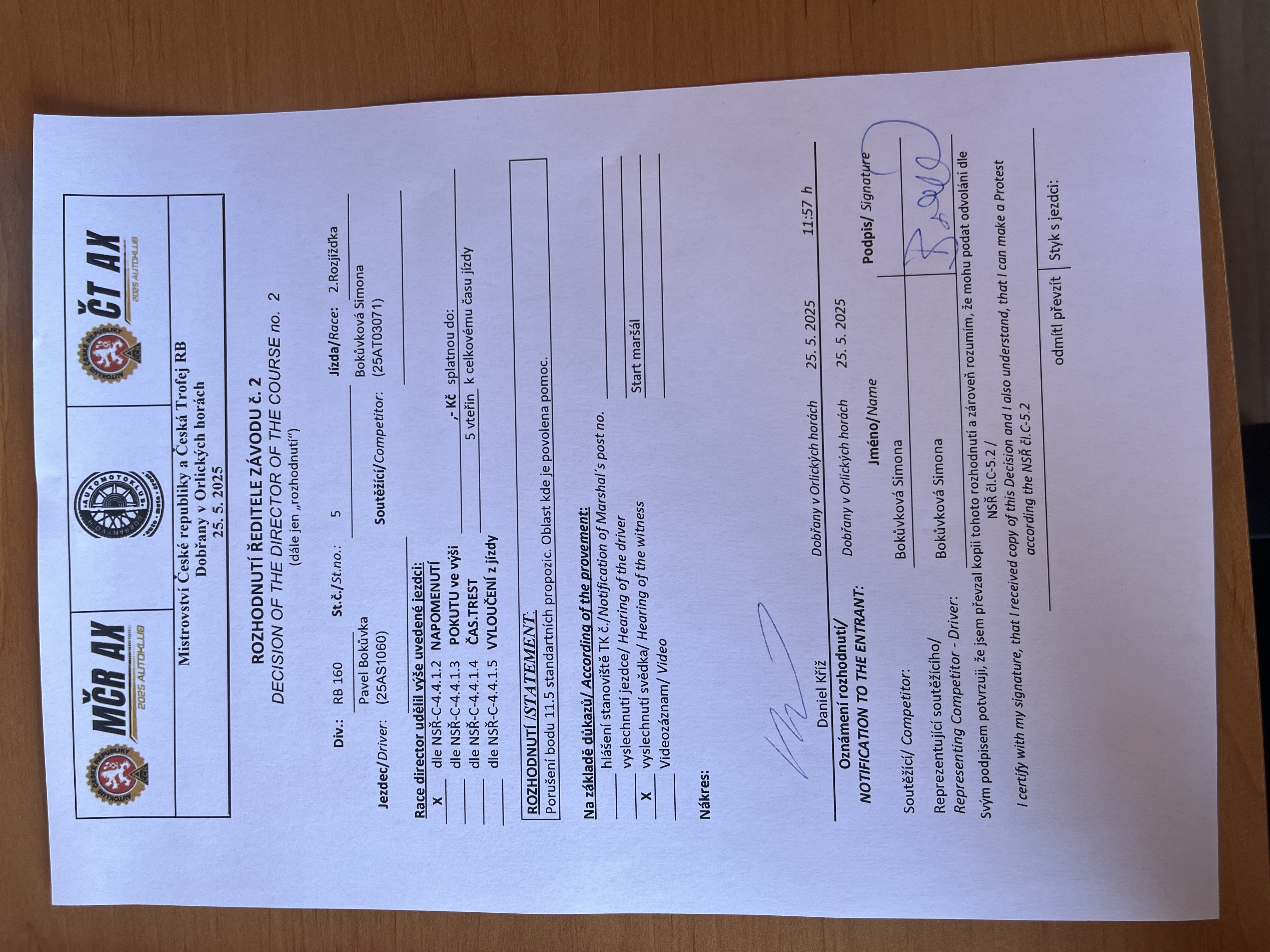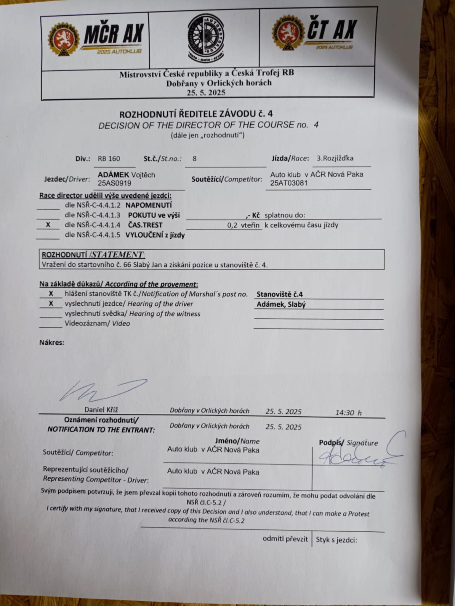02-02 Rozhodnutí Racedirektora a Ředitele závodu