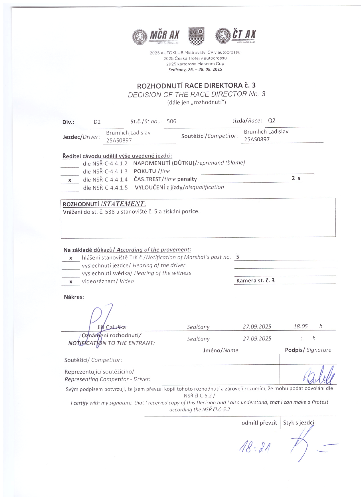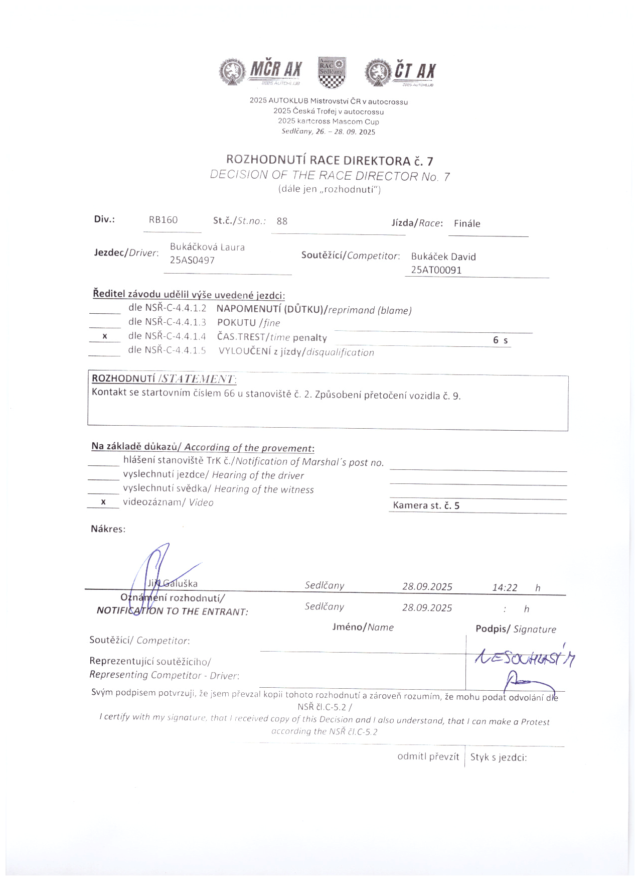 Rozhodnutí Race Direktora č. 5 - #88 Kartcross