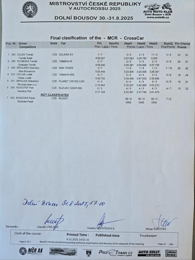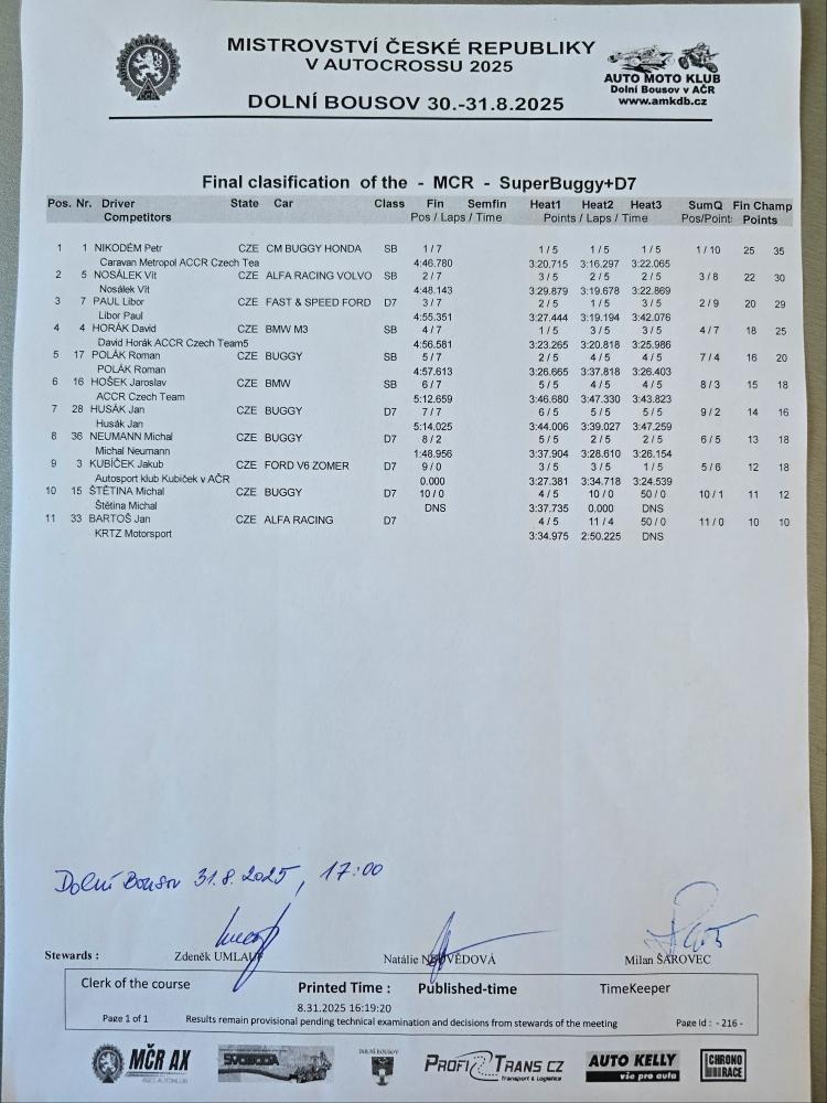 Off-Road: Vyhlášení Mistrovství ČR v Autocrossu a Rallycrossu 2025