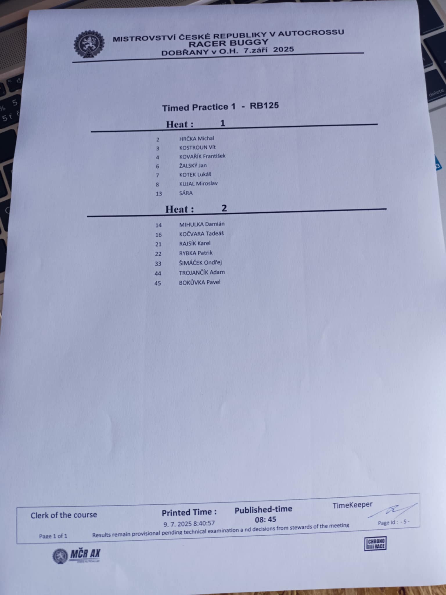 1. série rozjížděk - opakovaná jízda Junior Buggy proběhne před divizí Super Buggy
