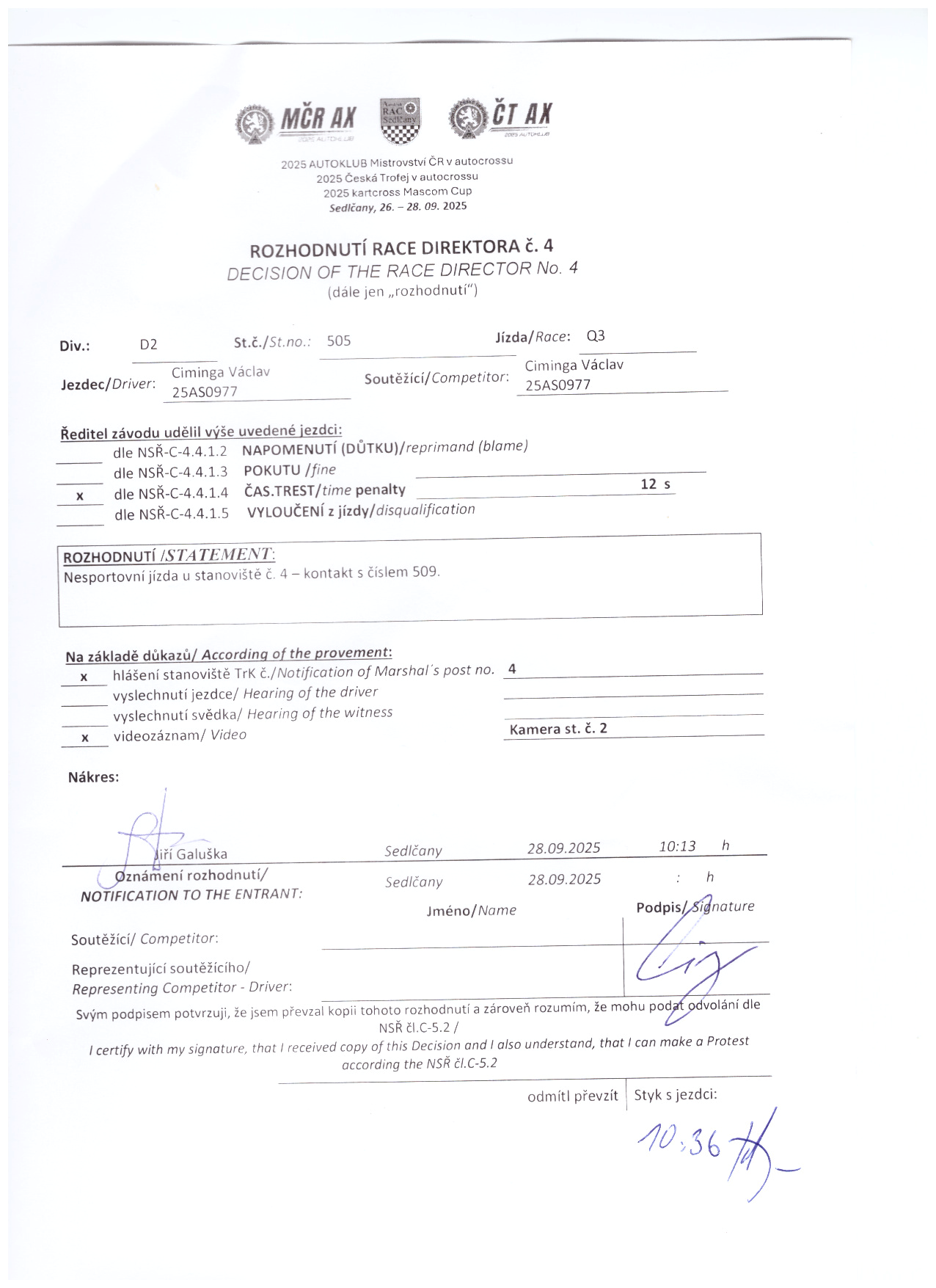 Rozhodnutí Race Direktora č. 4 - #505 D2
