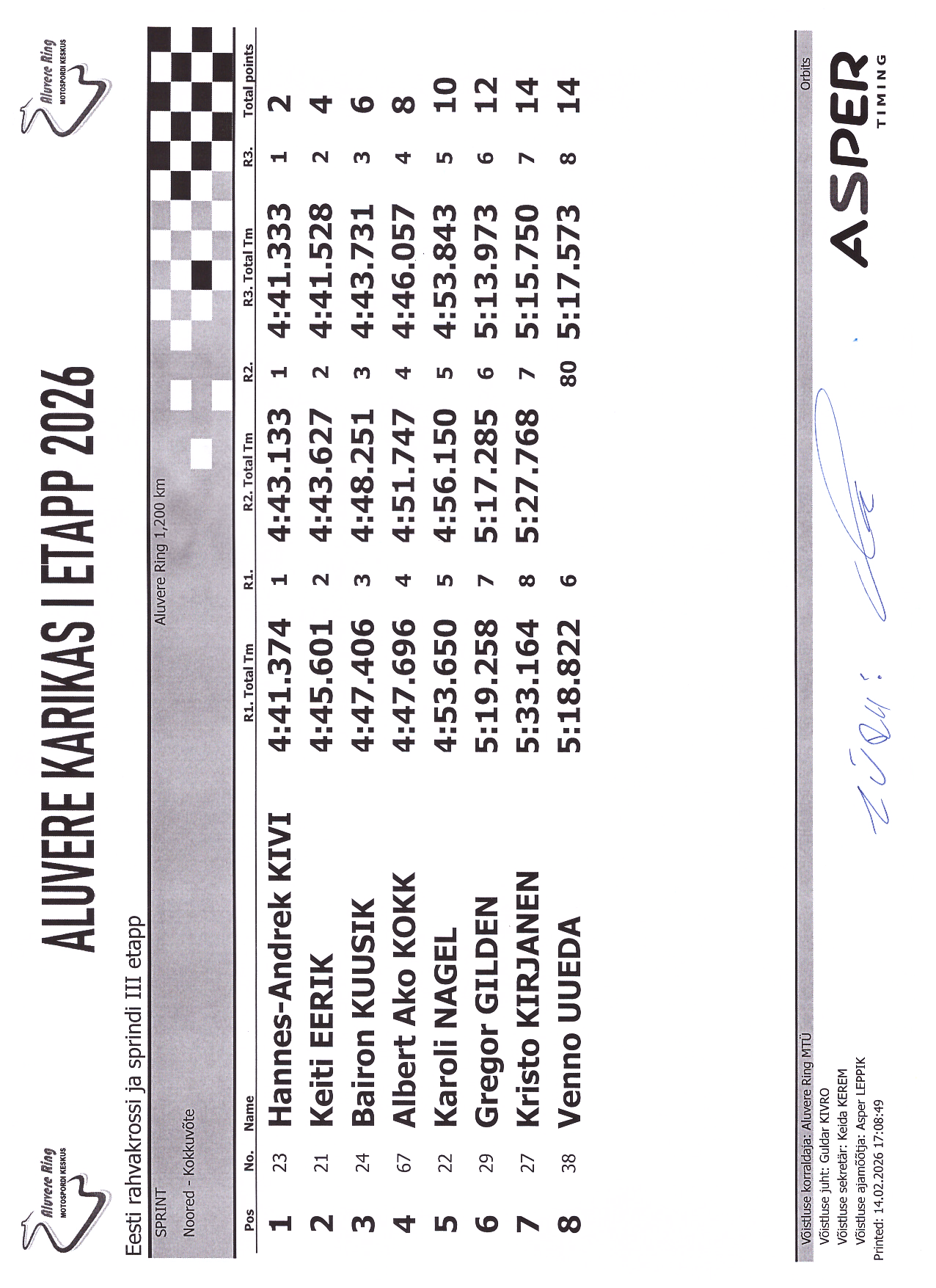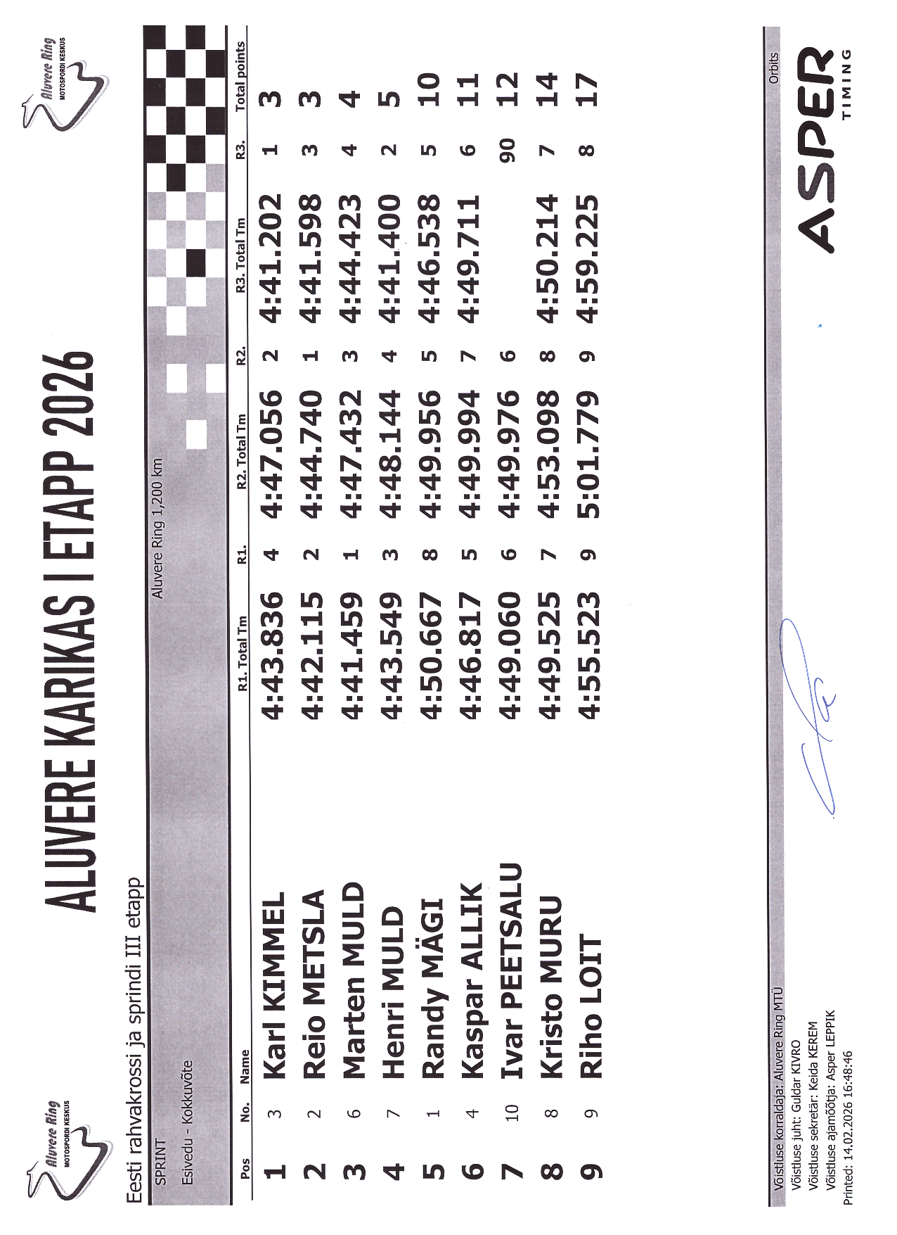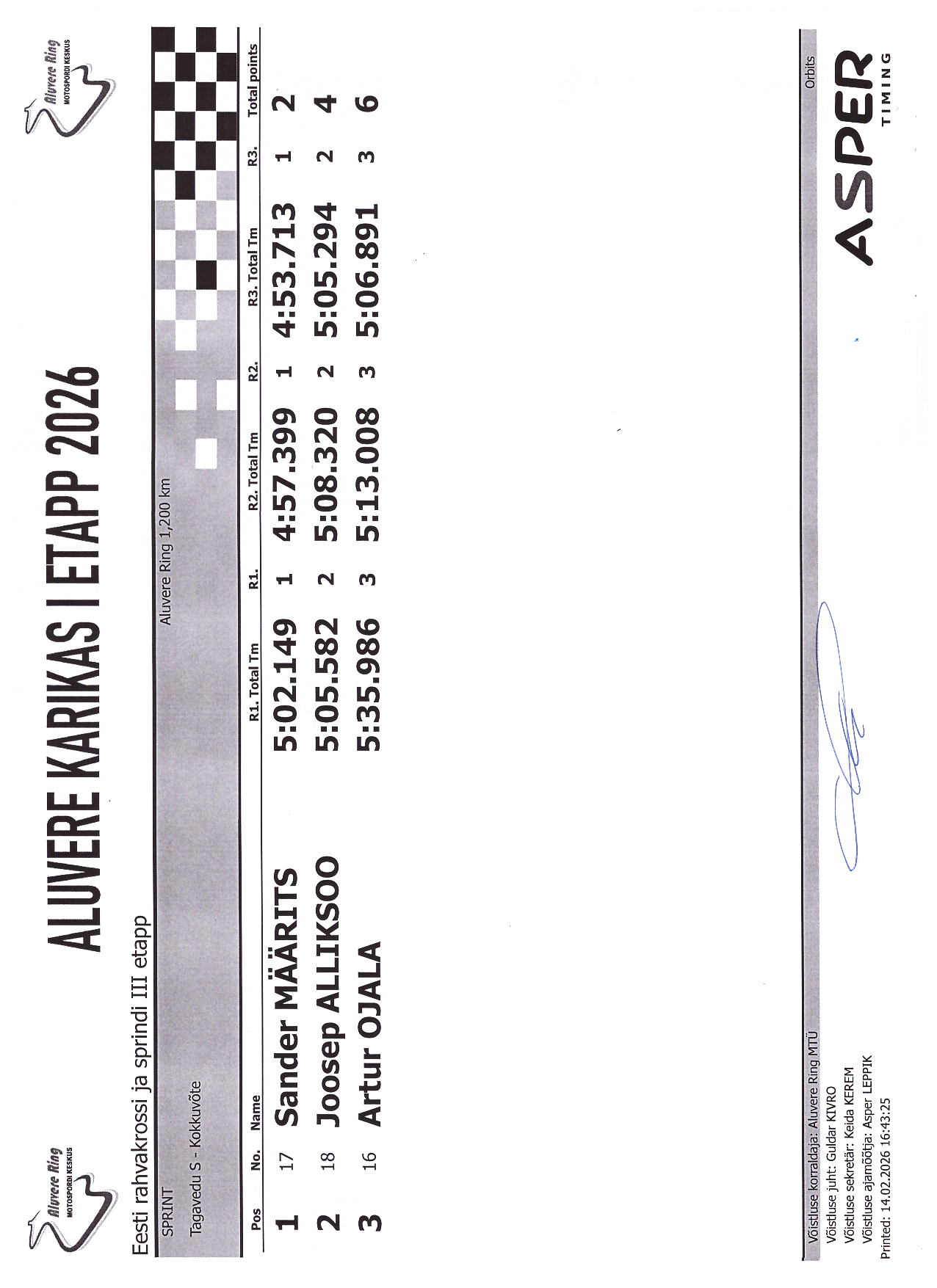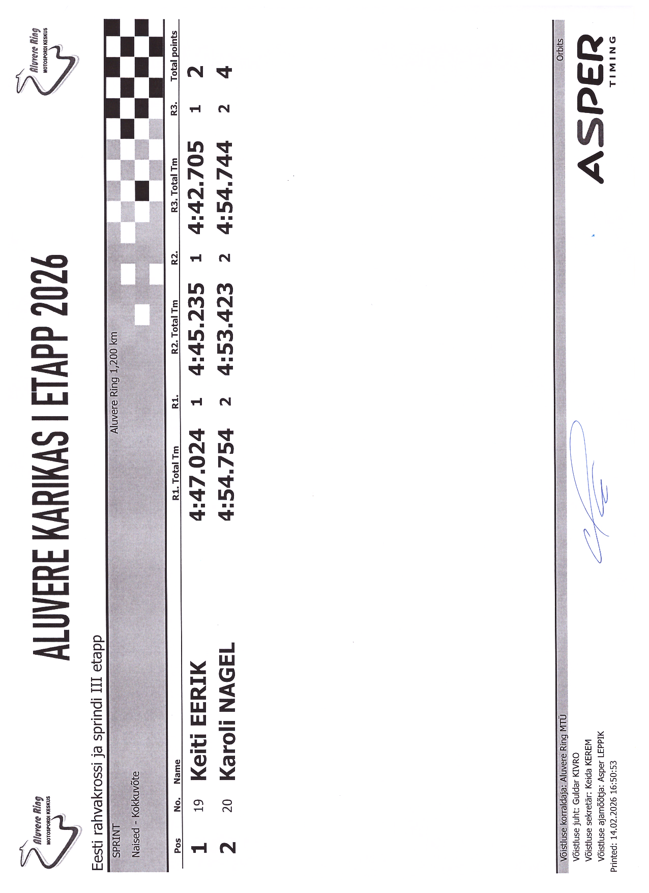 PUNKTITABEL Aluvere Karikas 2026 krossisprint