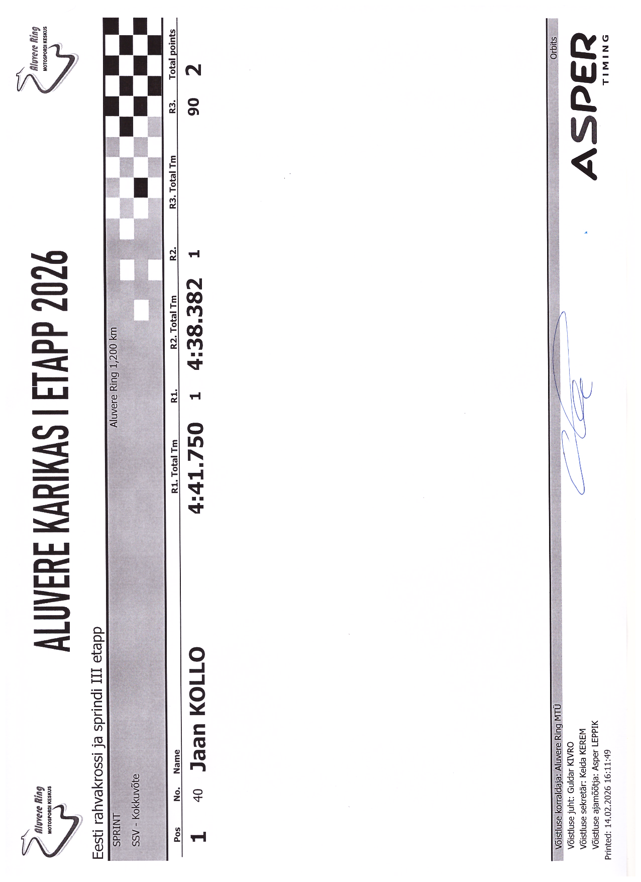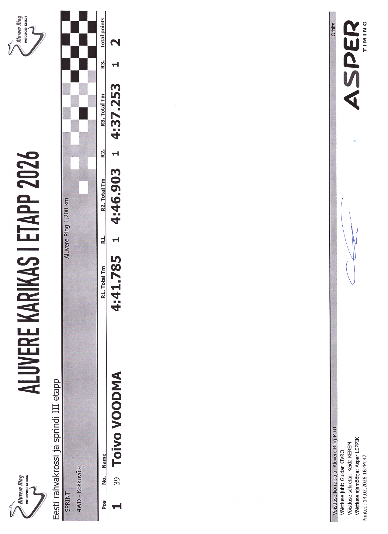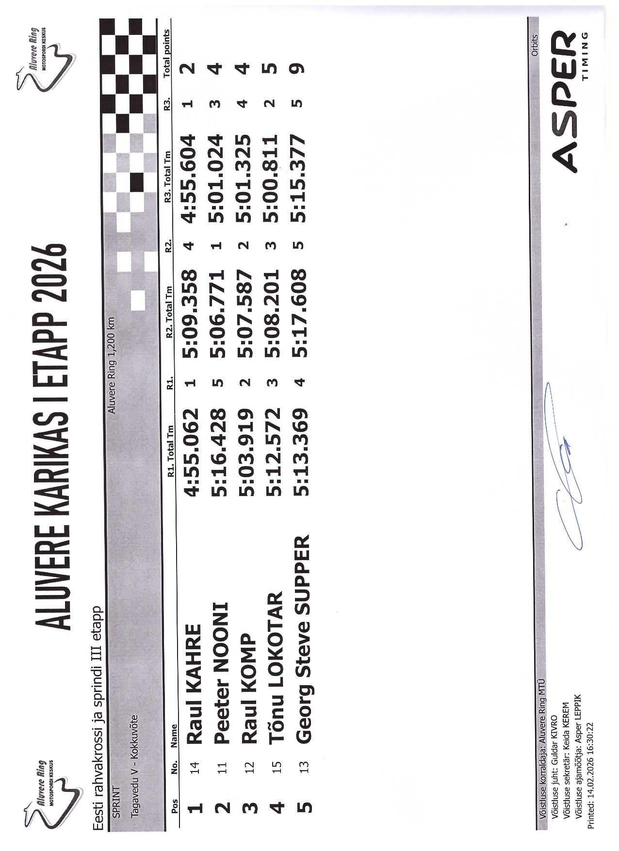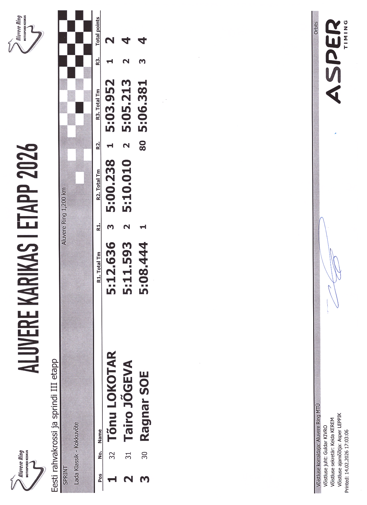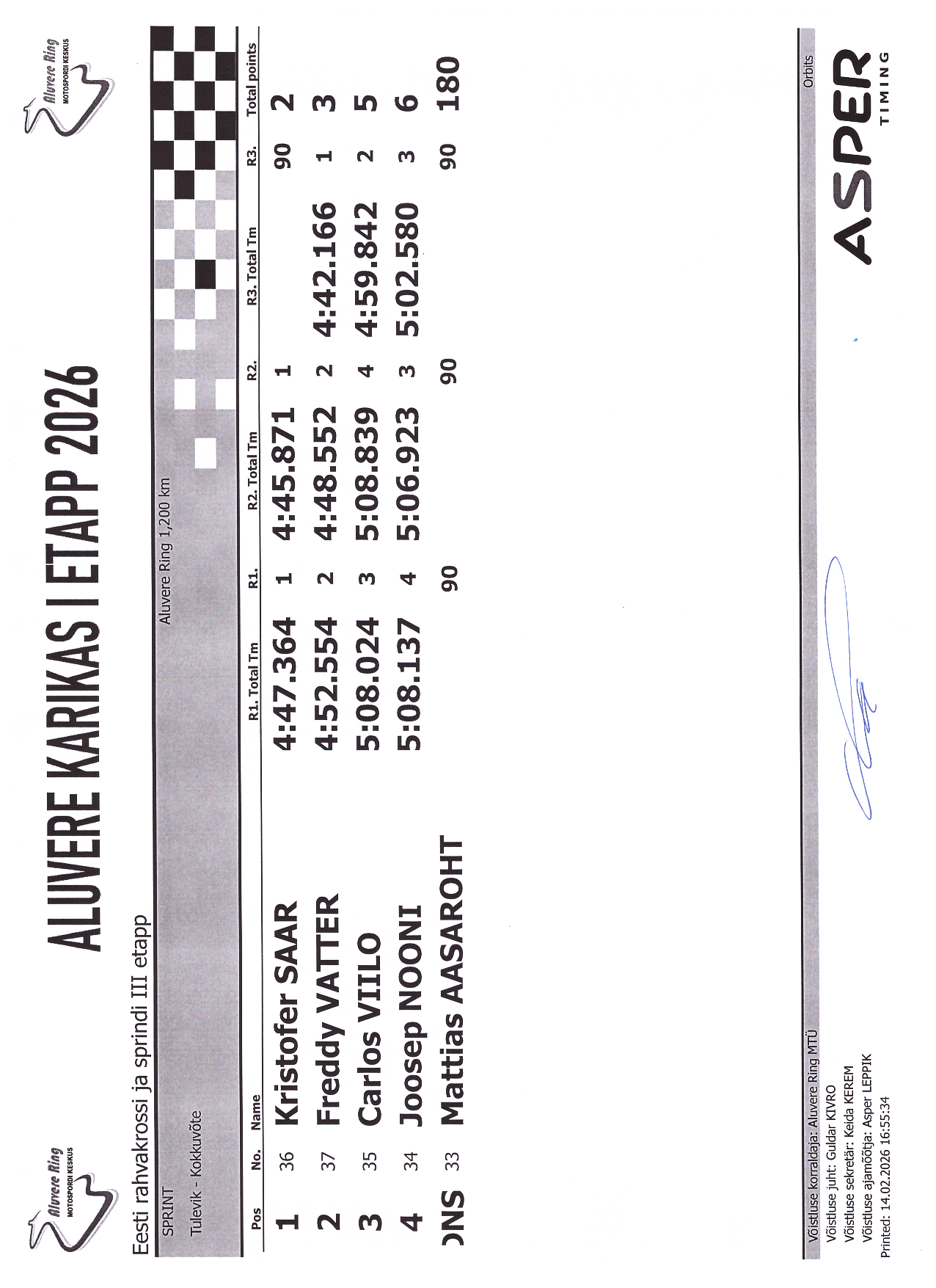 PUNKTITABEL Aluvere Karikas 2026 krossisprint