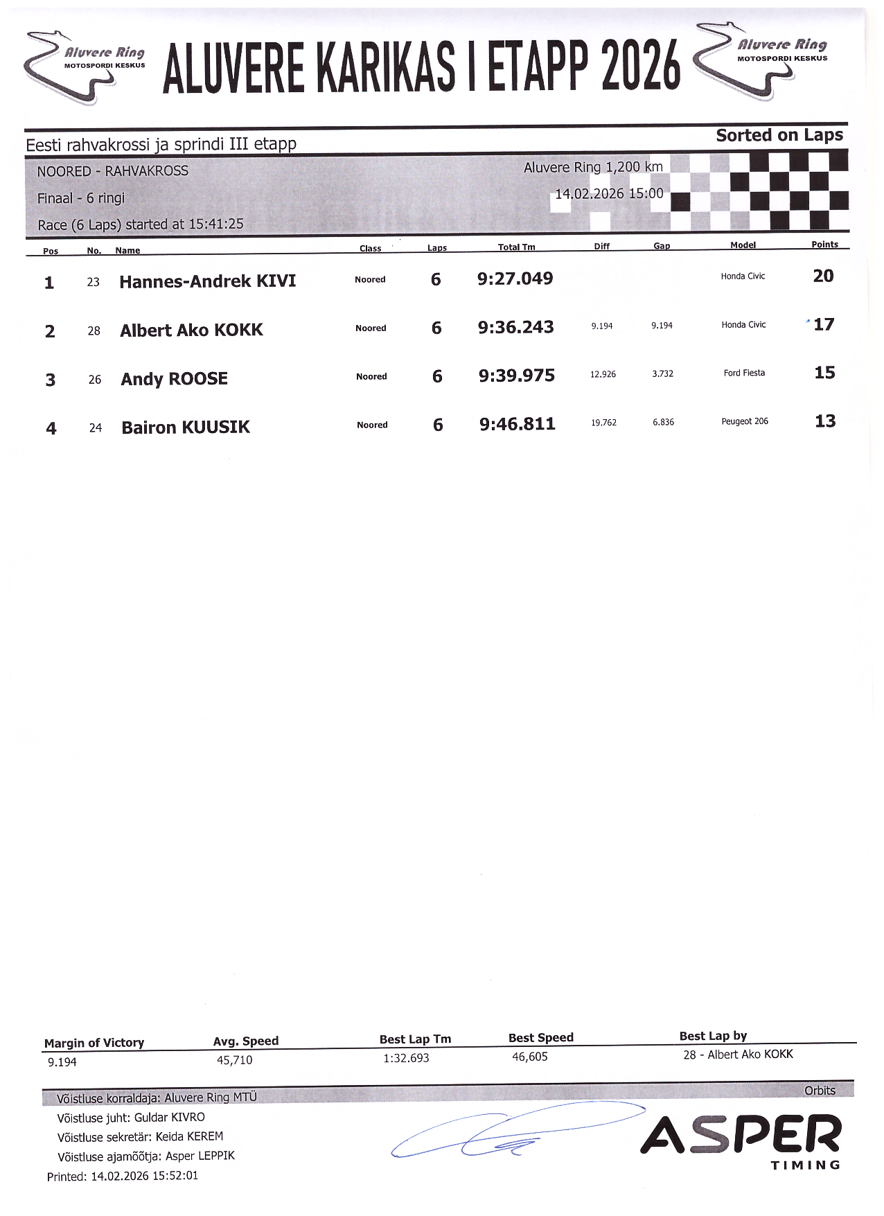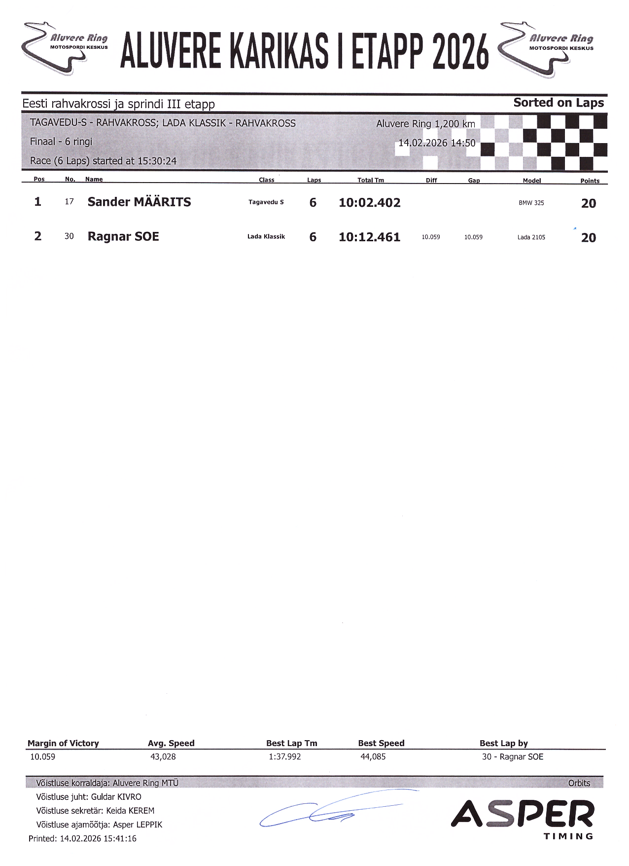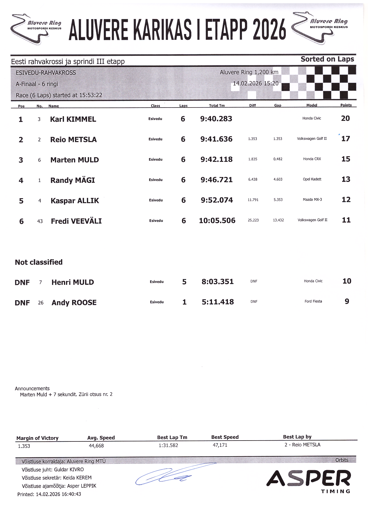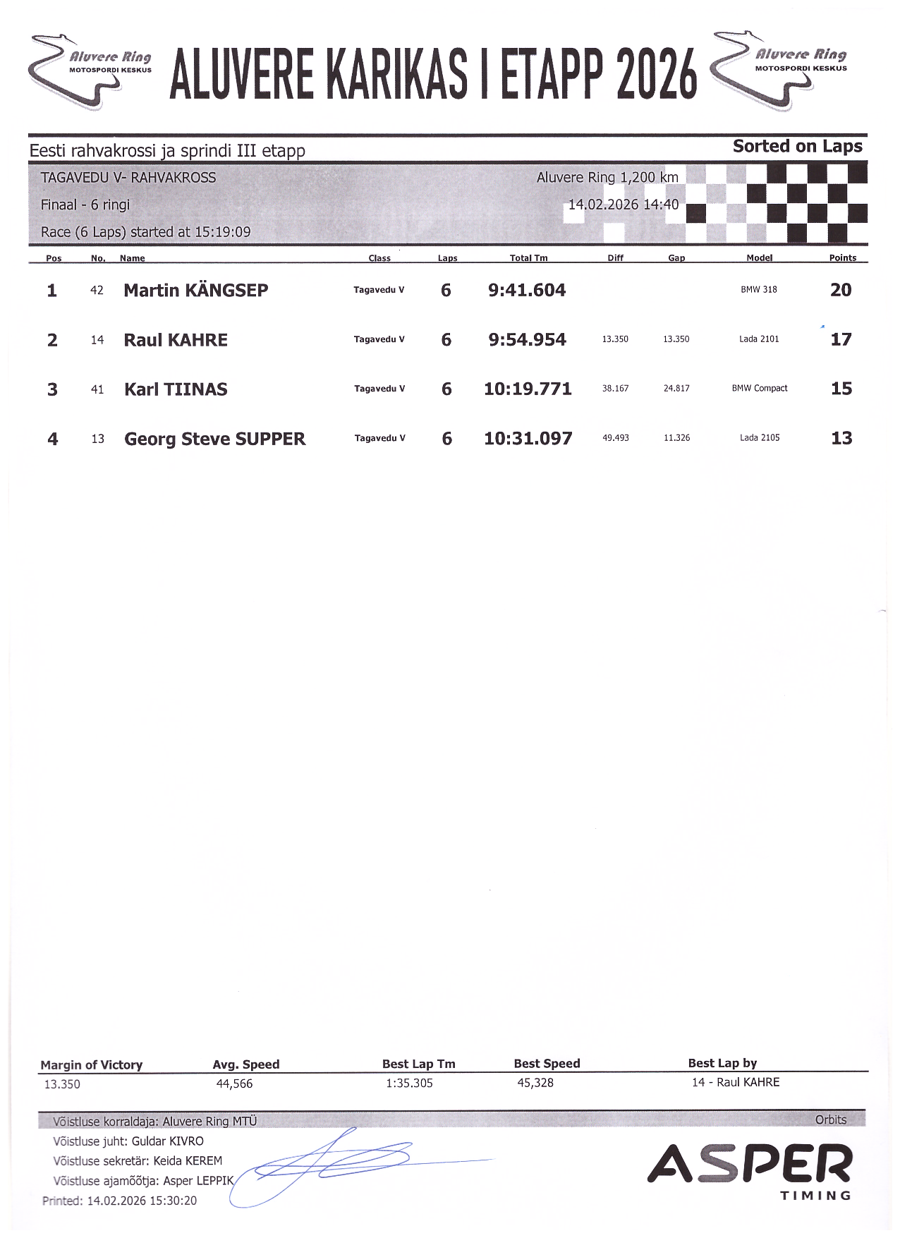 PUNKTITABEL Aluvere Karikas 2026 rahvakross