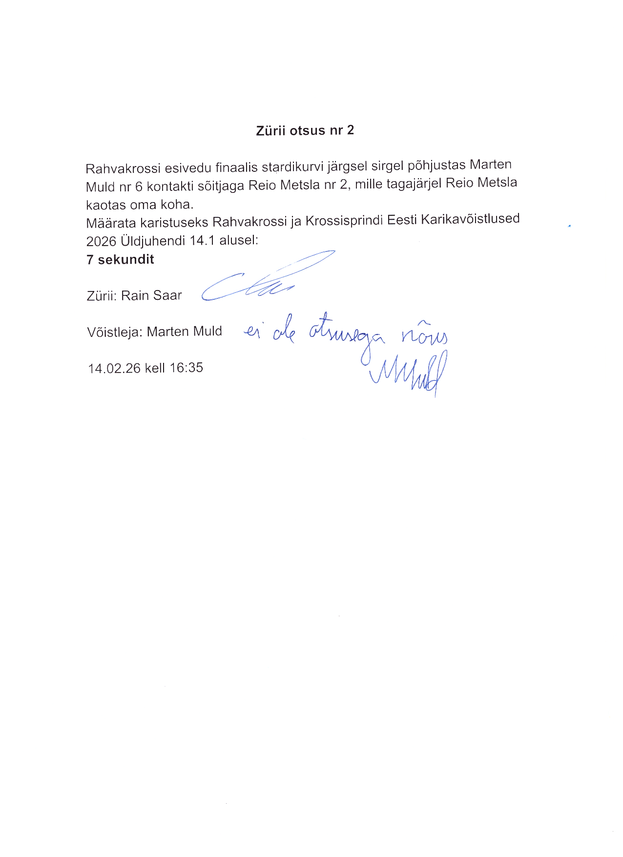 Zürii otsus nr 2