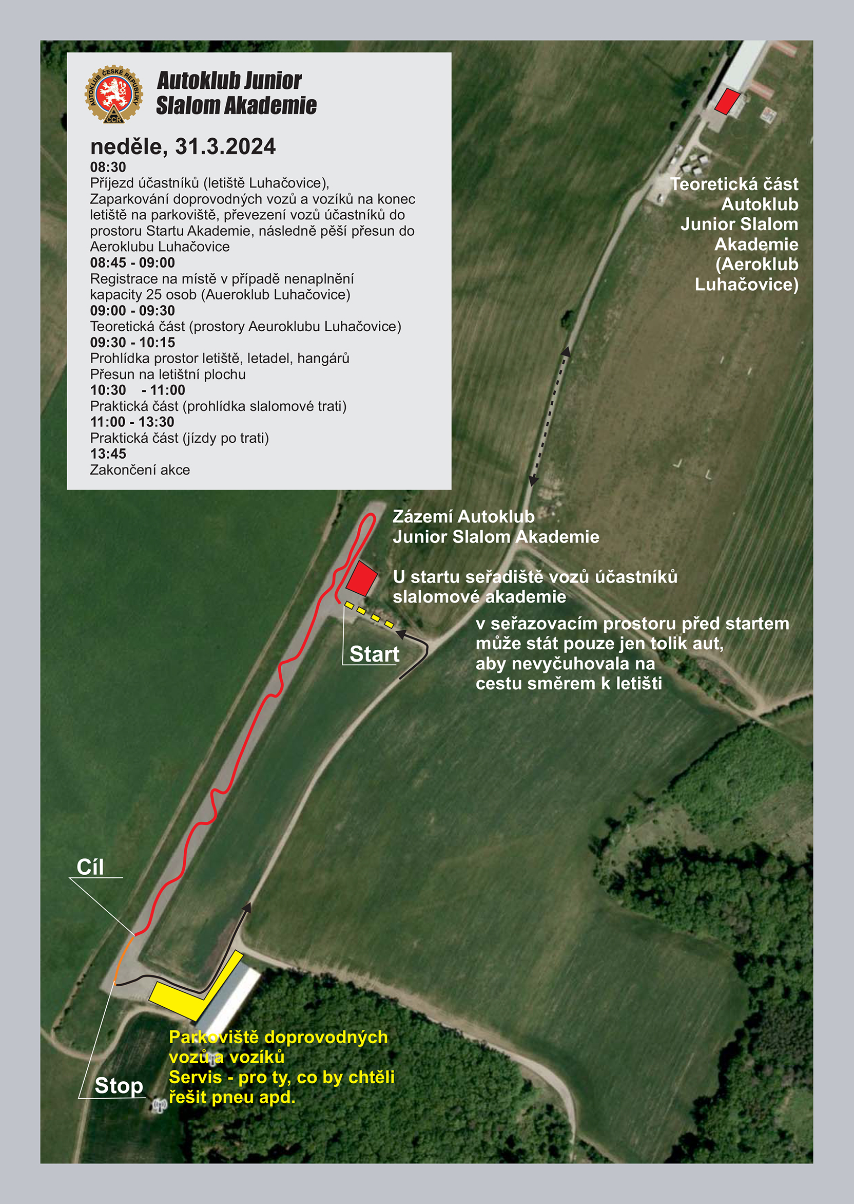 Mapa a aktualizovaný časový harmonogram Autoklub Junior Slalom Akademie