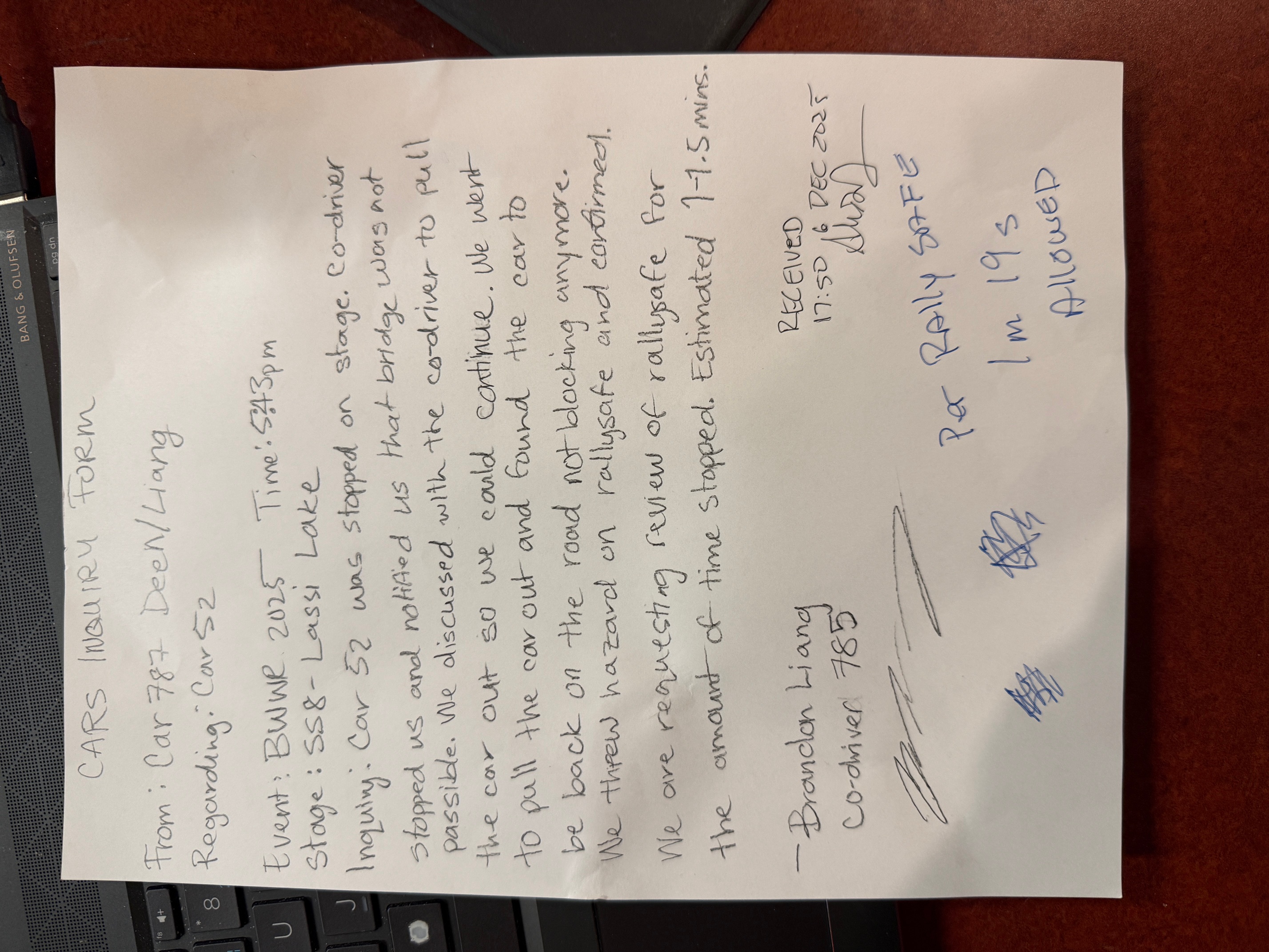BWWR Competitor Bulletin 5 - RECCE DELAY