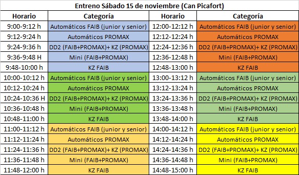 Horario detallado entrenamientos sábado 15-11