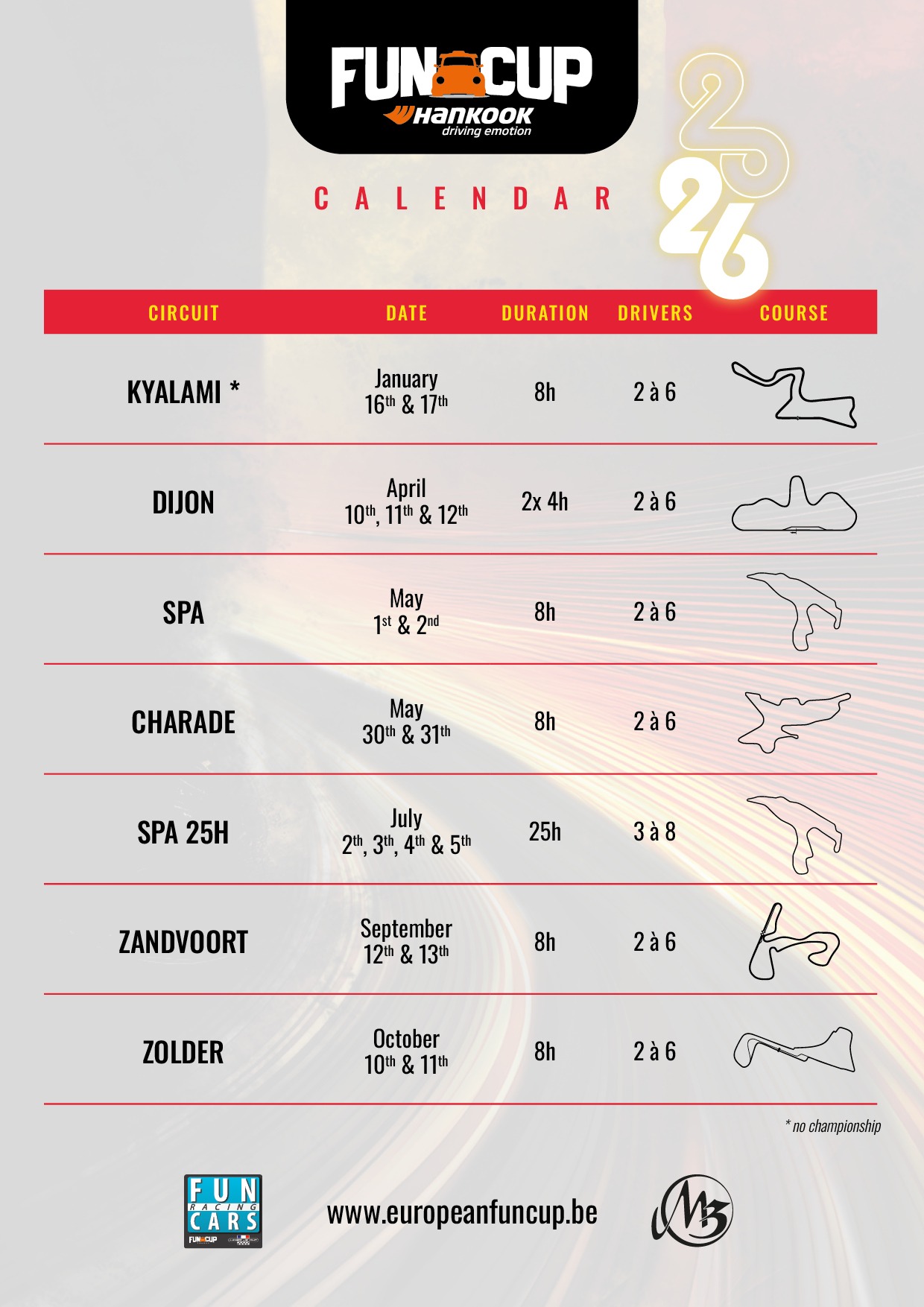 Toegang tot het circuit van Kyalami op donderdag en vrijdag via het wachtwoord “ABDELATIF” + toegang tot het circuit op zaterdag via een polsband die bij uw team kan worden opgehaald.