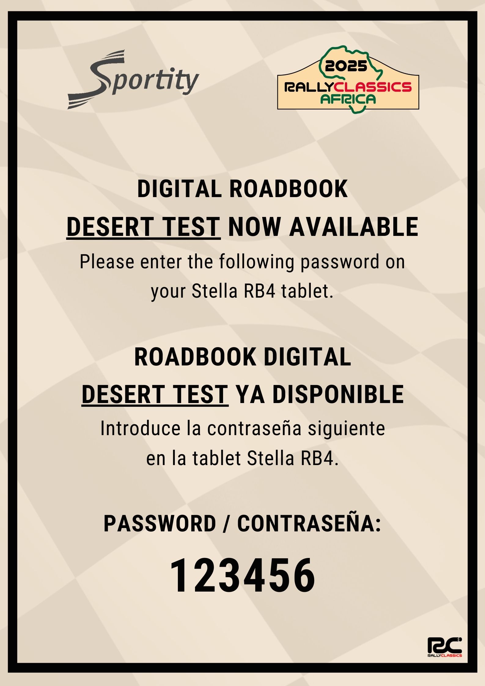 Digital RoadBook Password - Desert Test