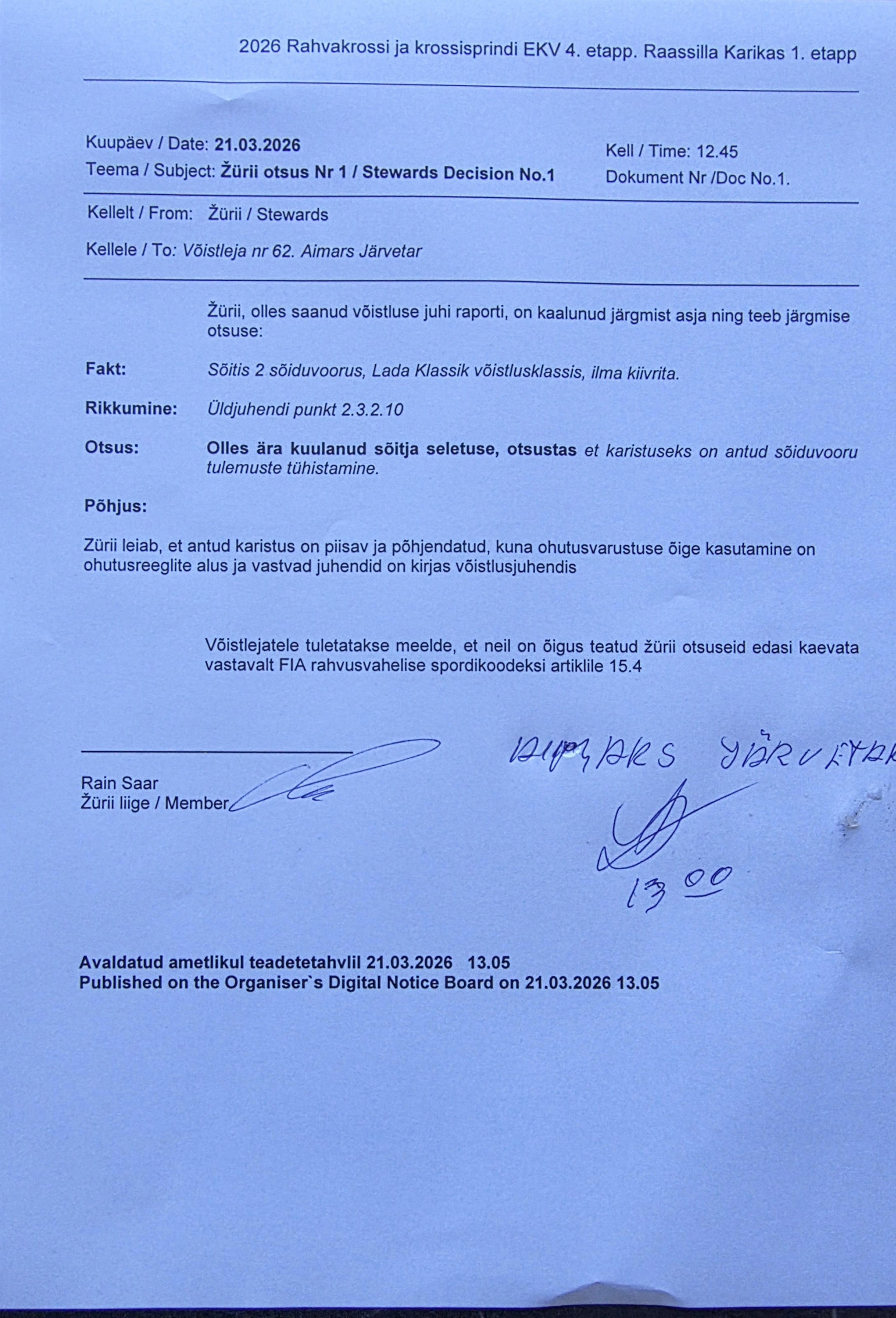 Raassilla Karikas 1. etapp ja Rahvakrossi ja sprindikrossi EKV 4. etapp - 21.03.2026