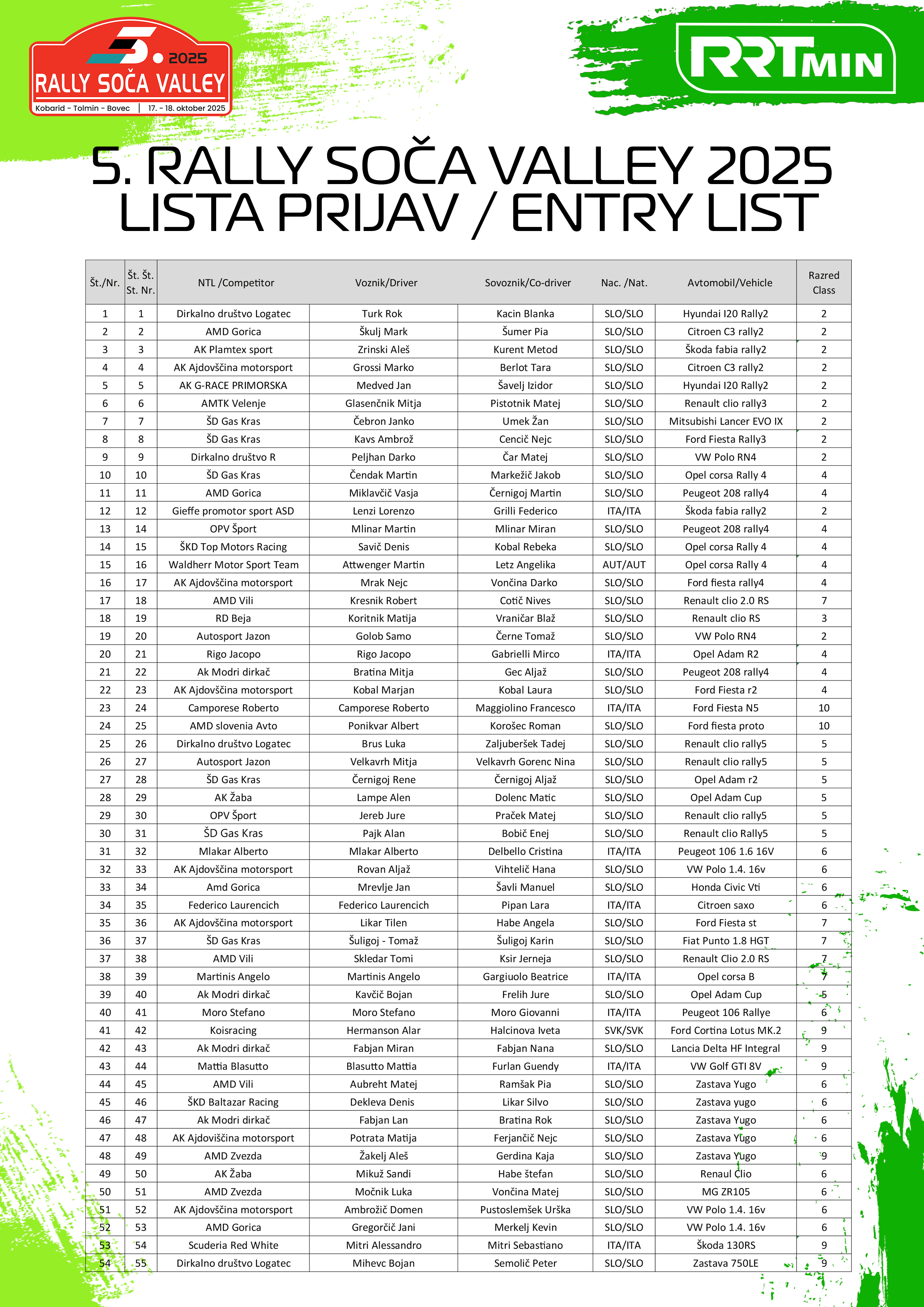 Amended Entry List / Popravljena lista prijav