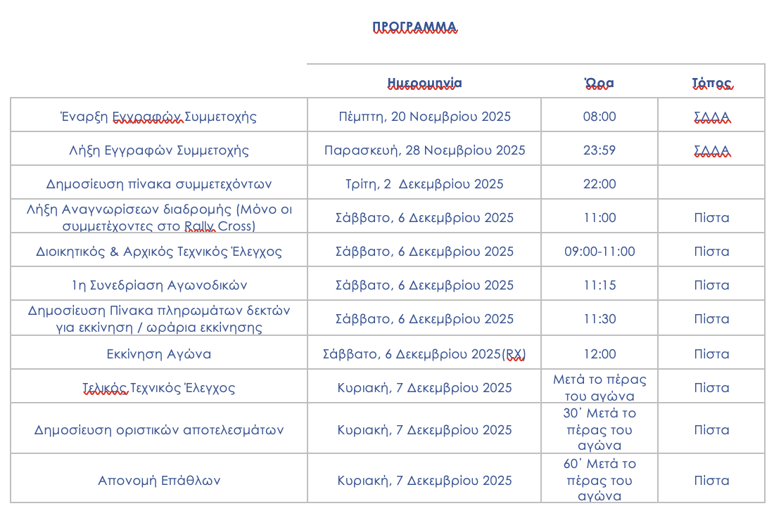 5. ΣΥΜΜΕΤΟΧΕΣ - STARTING LIST - ΣΧΑΡΕΣ ΕΚΚΙΝΗΣΗΣ