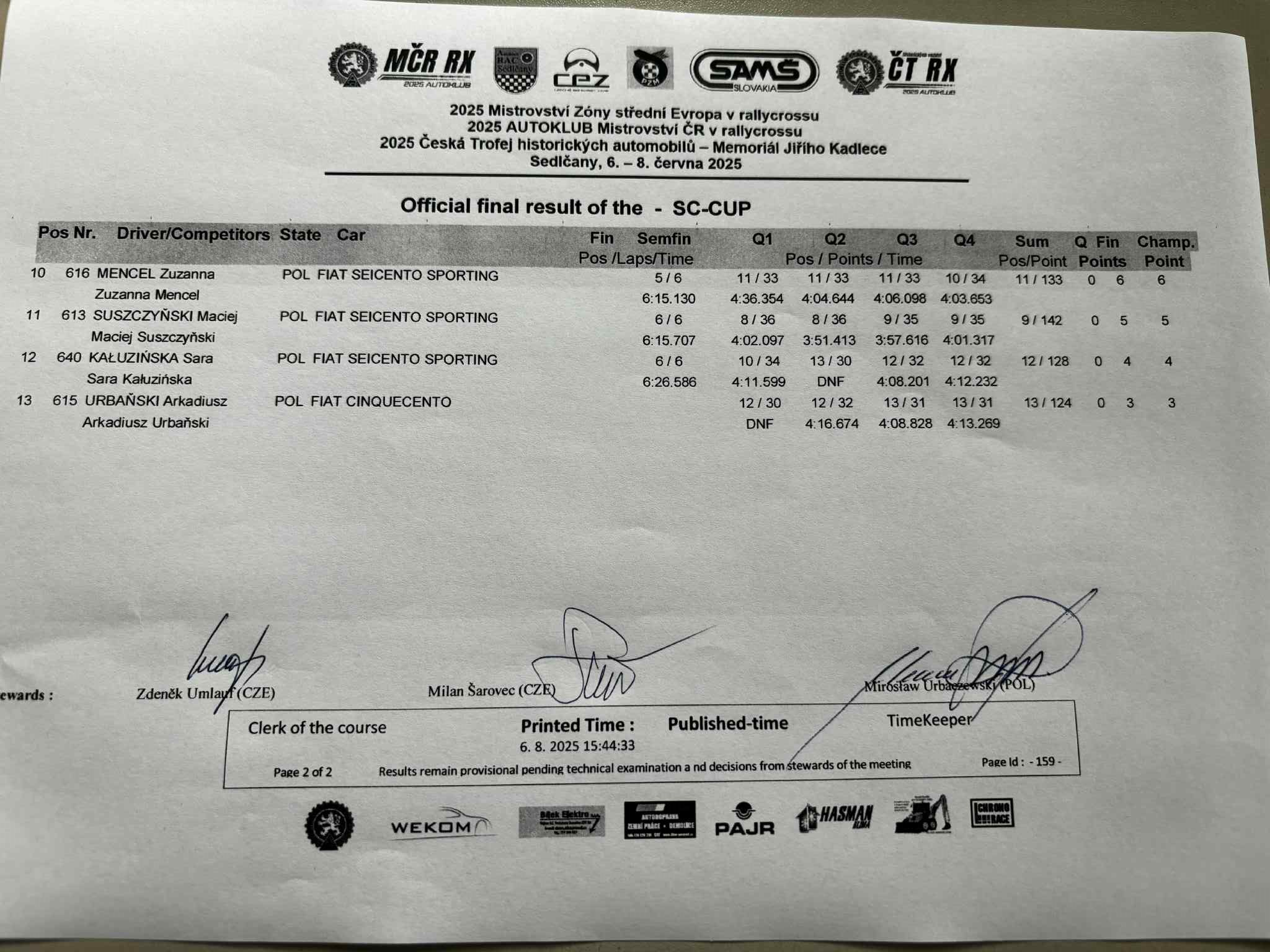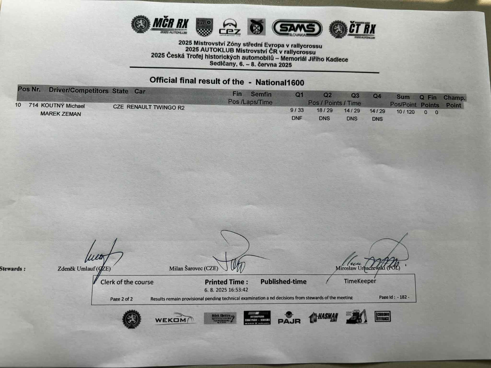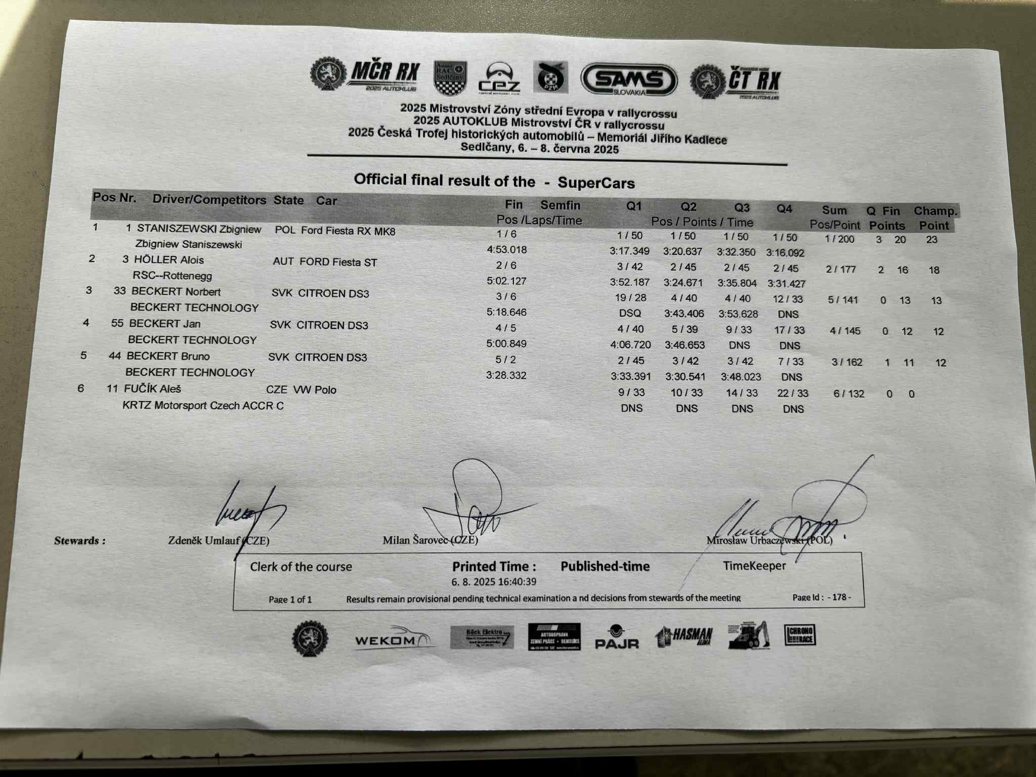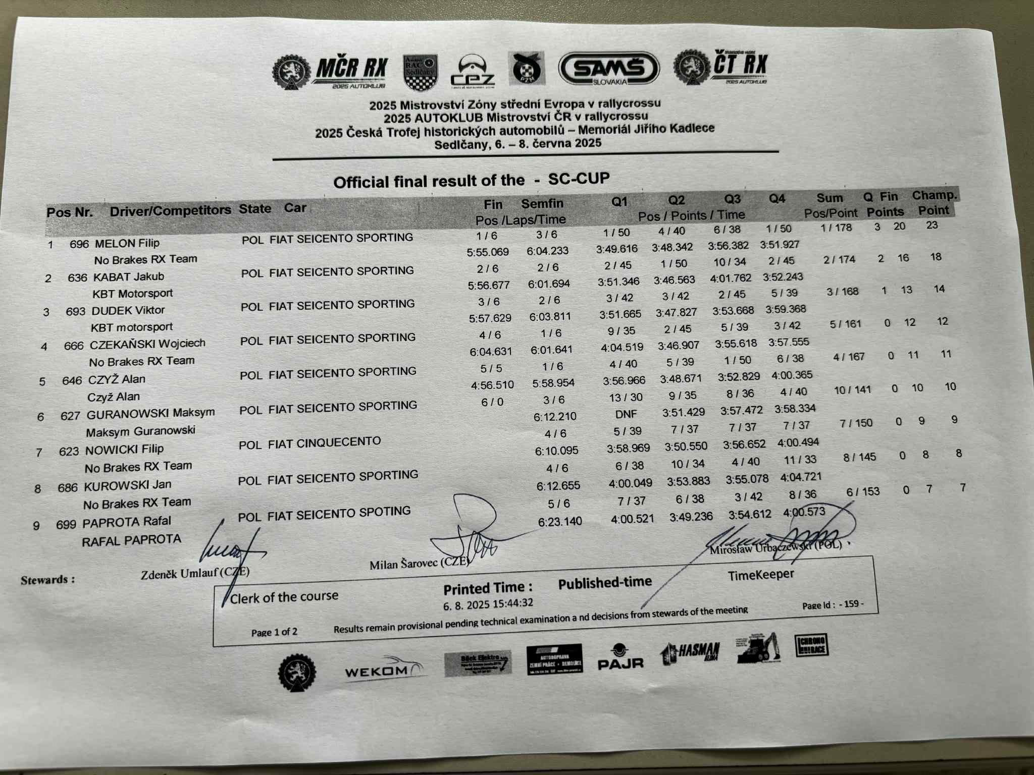 Sobotní program bude končit Q3 divizí N1600 CZE, divize STC startují ráno / Saturday's program will end with Q3 of the N1600 CZE division, STC divisions start in the morning
