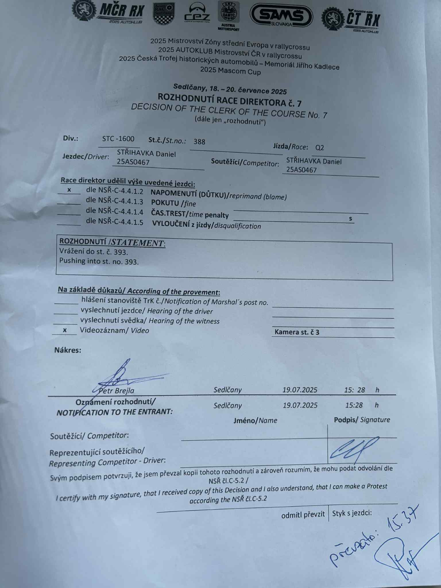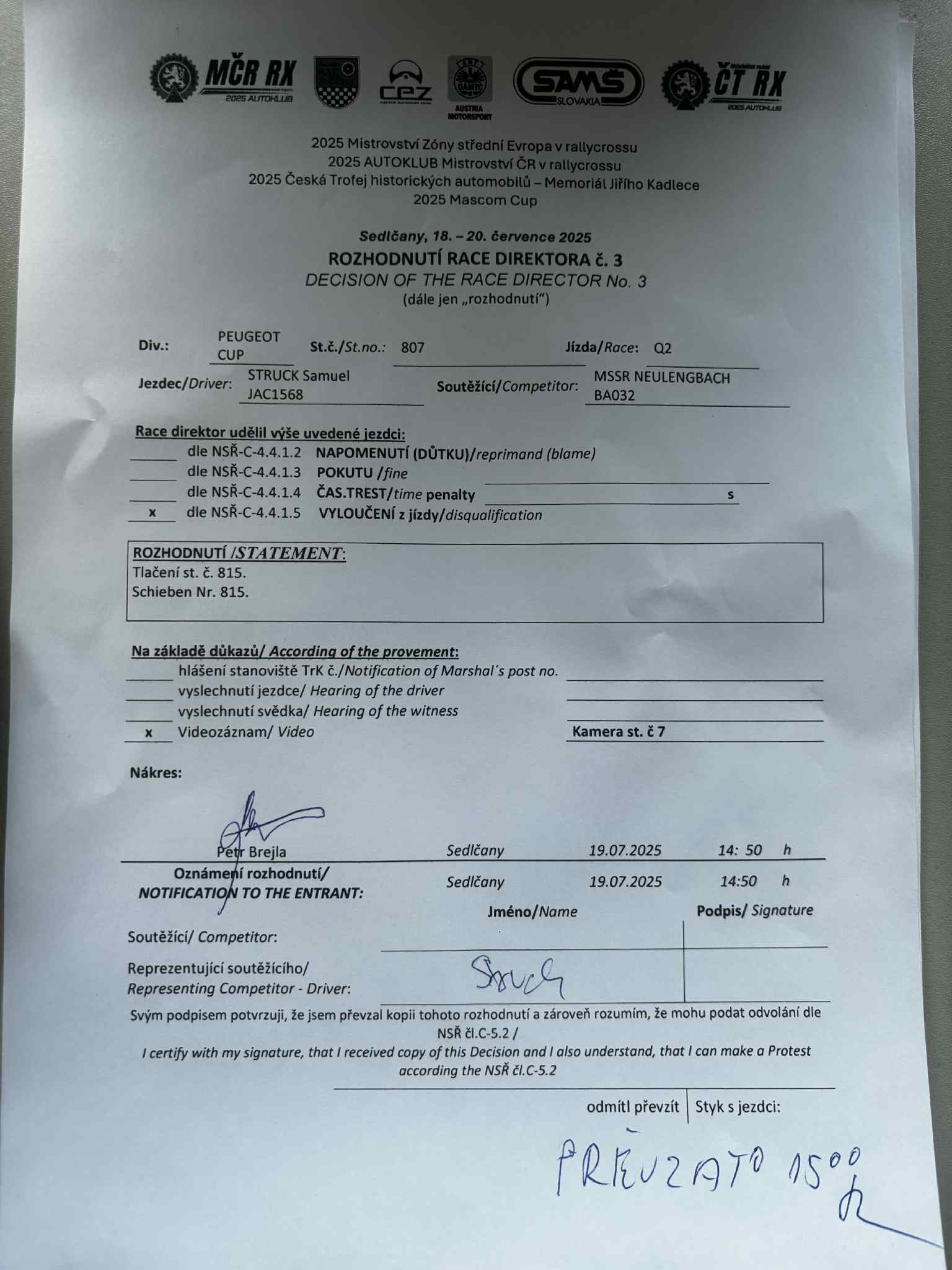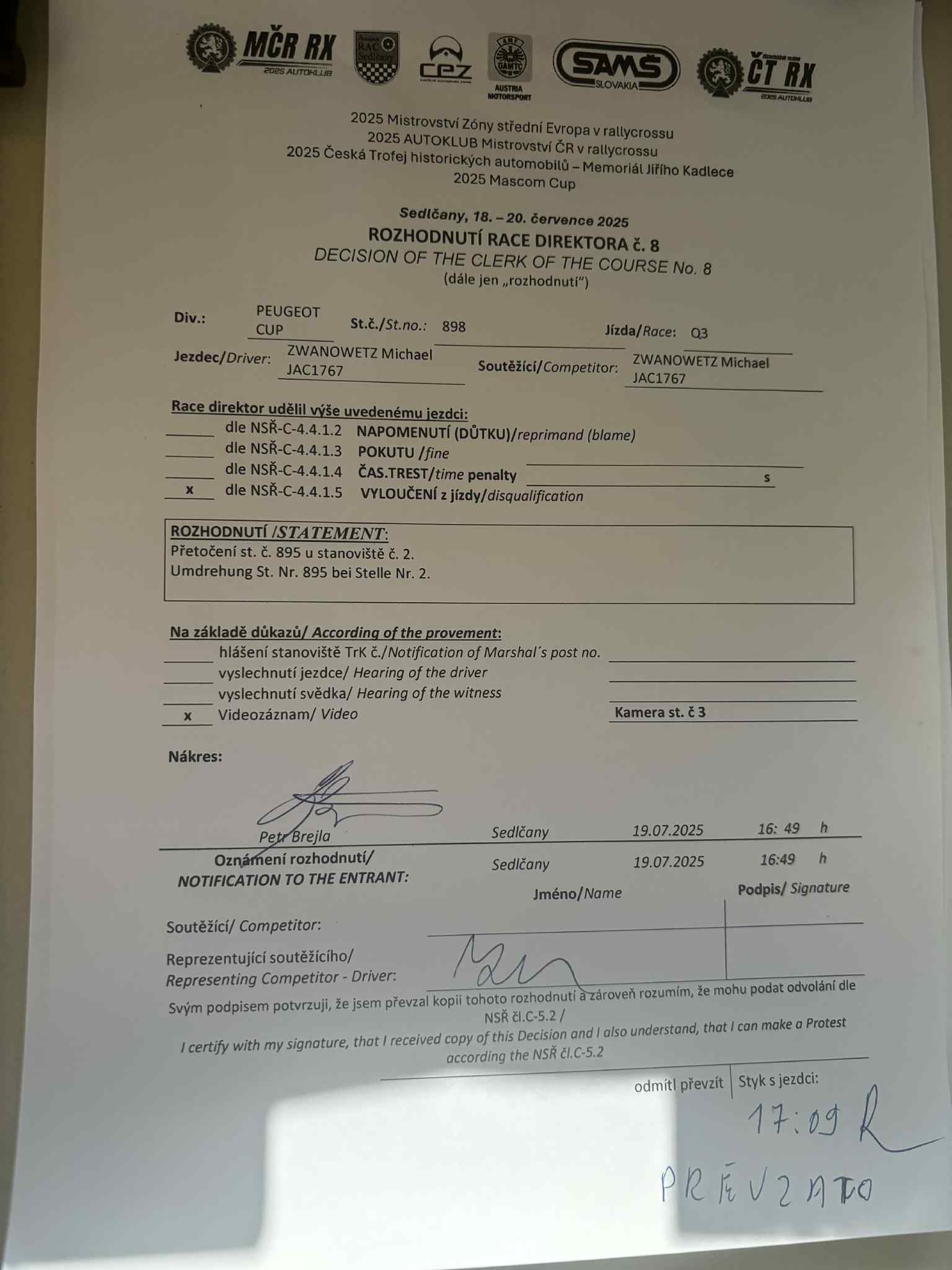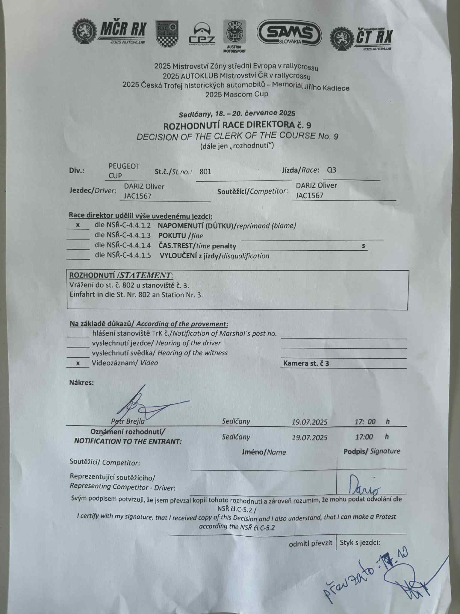 Rozhodnutí - 3 / Decision - 3 #807 PEUGEOT CUP