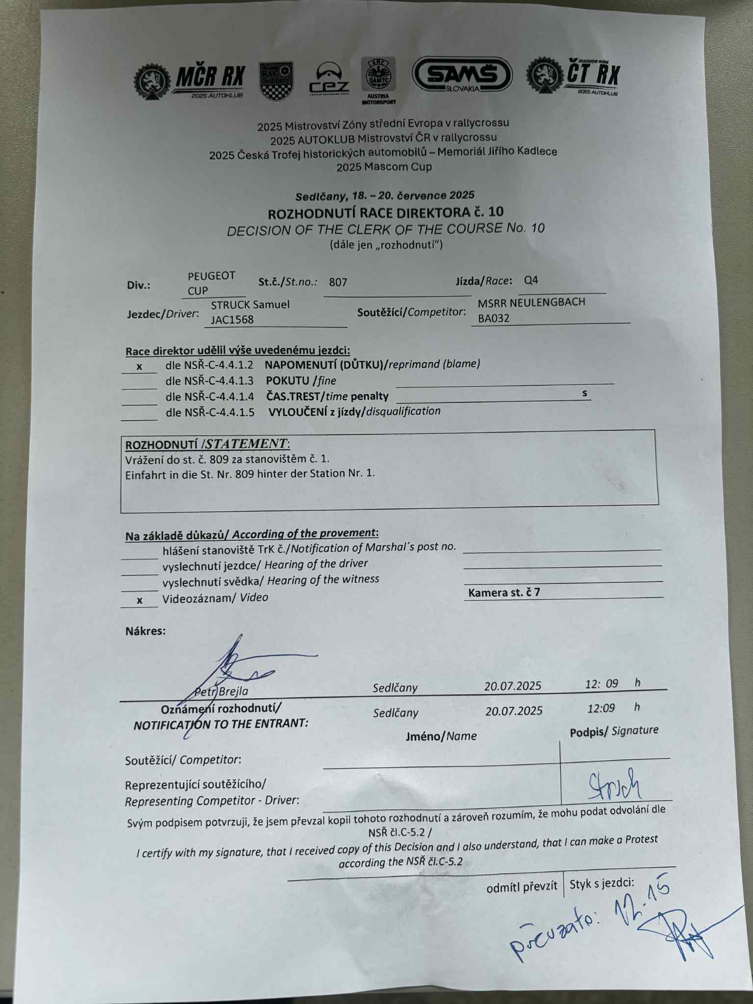 Rozhodnutí - 10 / Decision - 10 #807 PEUGEOT CUP