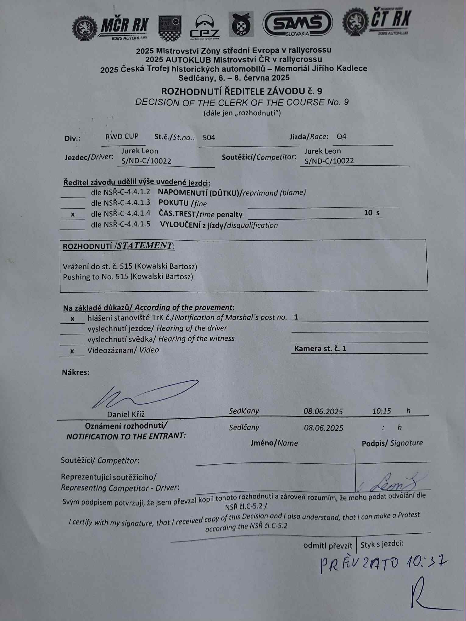 Rozhodnutí - 9 / Decision - 9 #504 RWD CUP