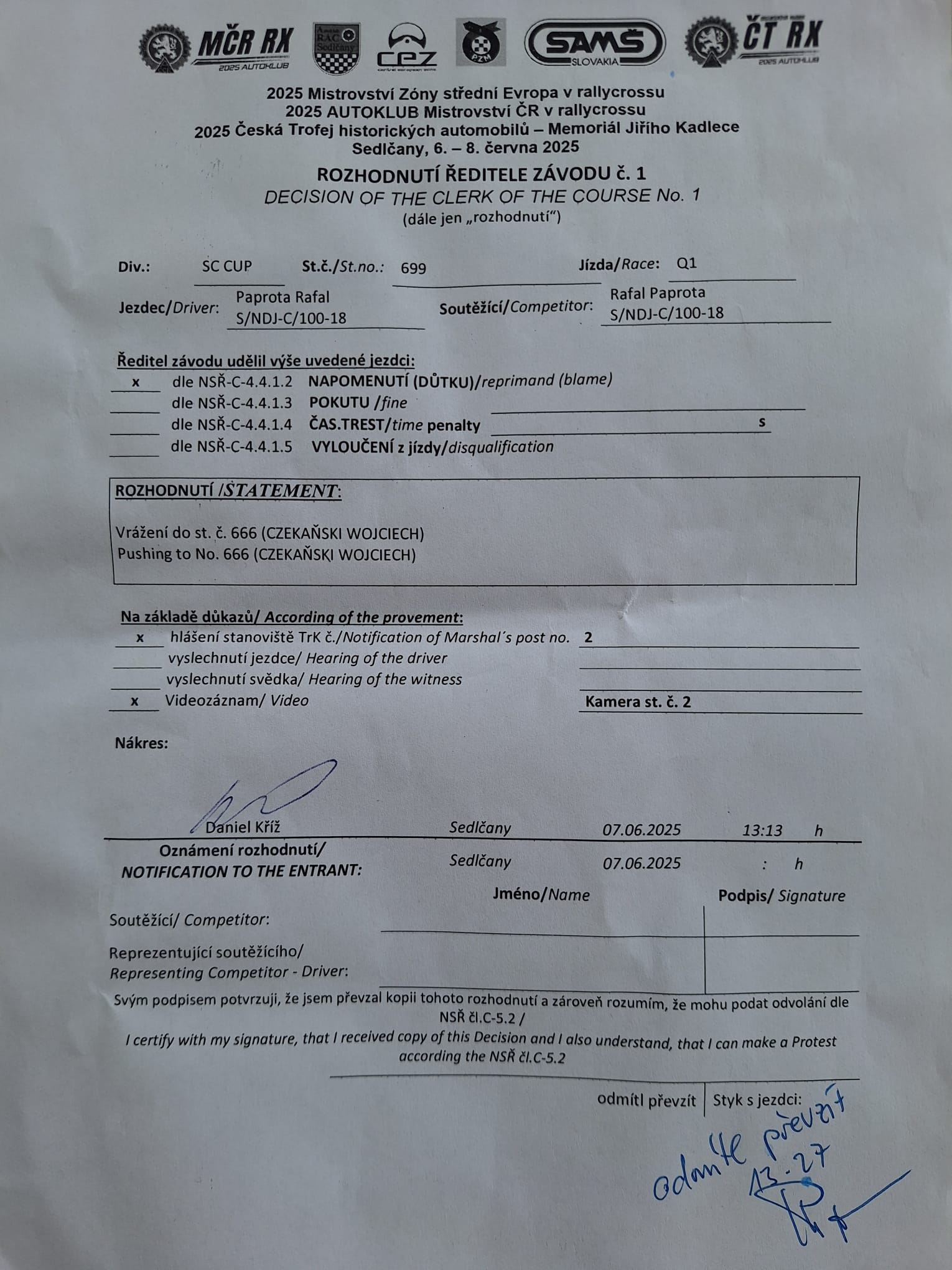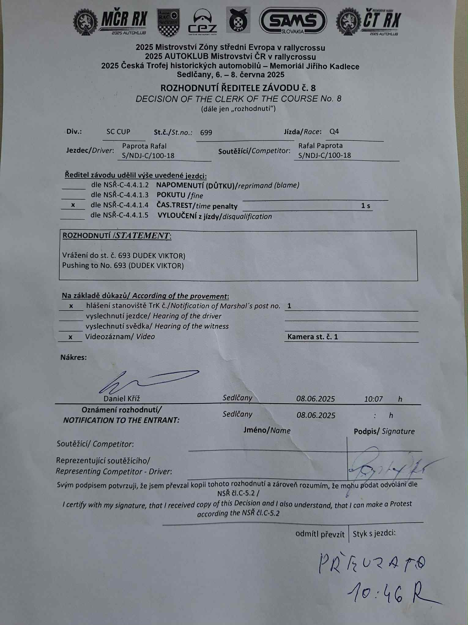 Rozhodnutí - 1 / Decision - 1 #699 SC CUP