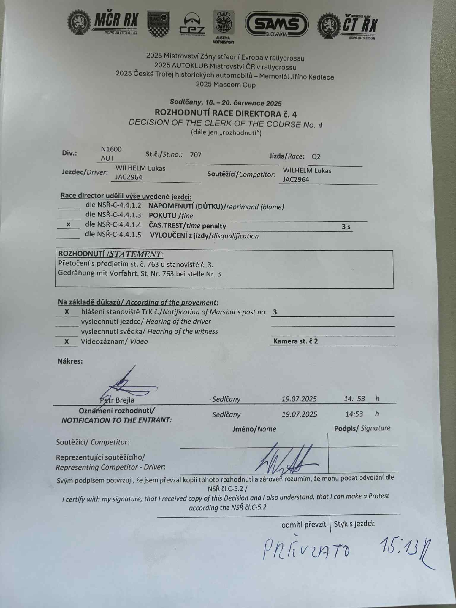 02-03 Rozhodnutí Sportovních komisařů / Steward's decisions