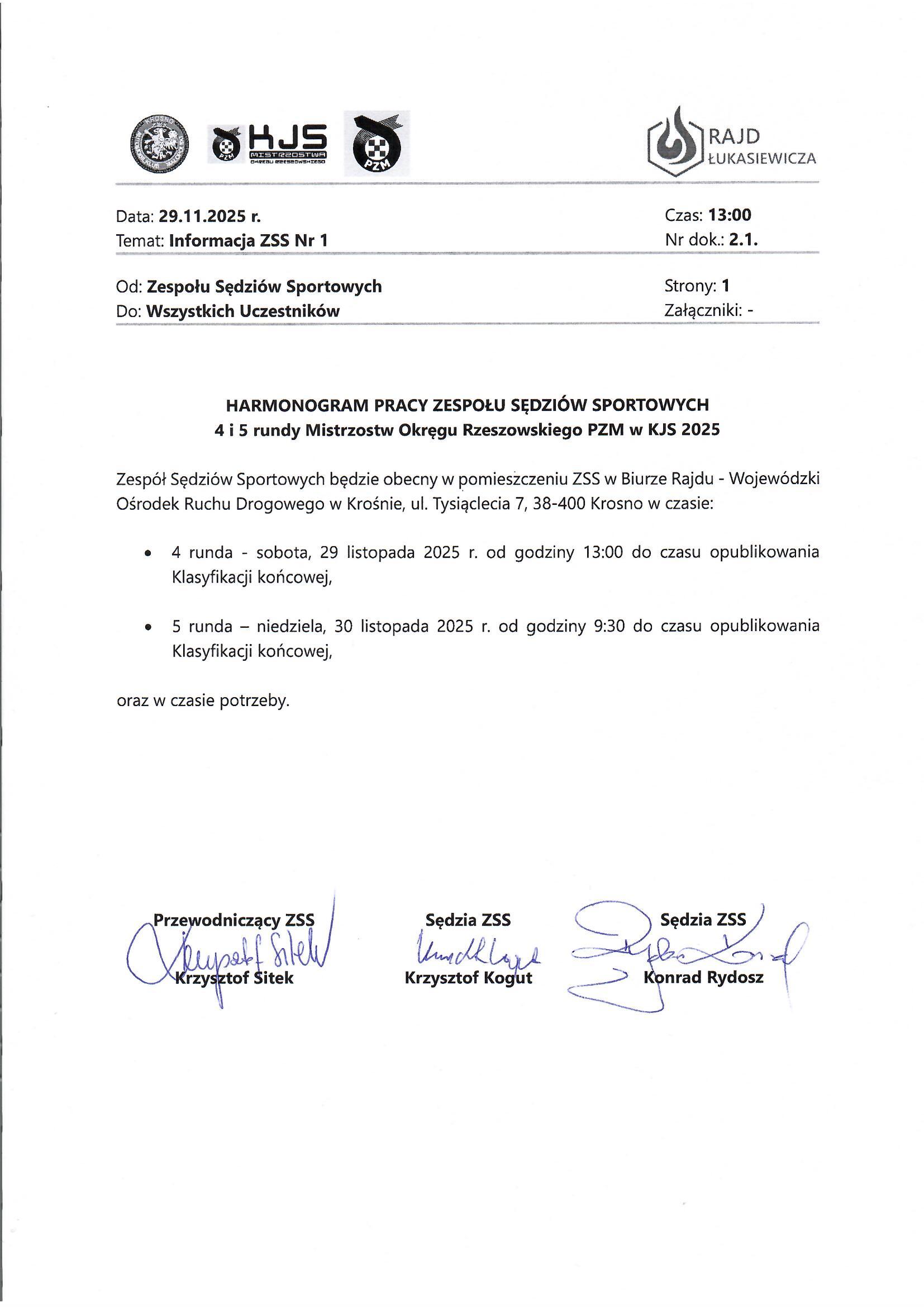 Informacja ZSS nr 1