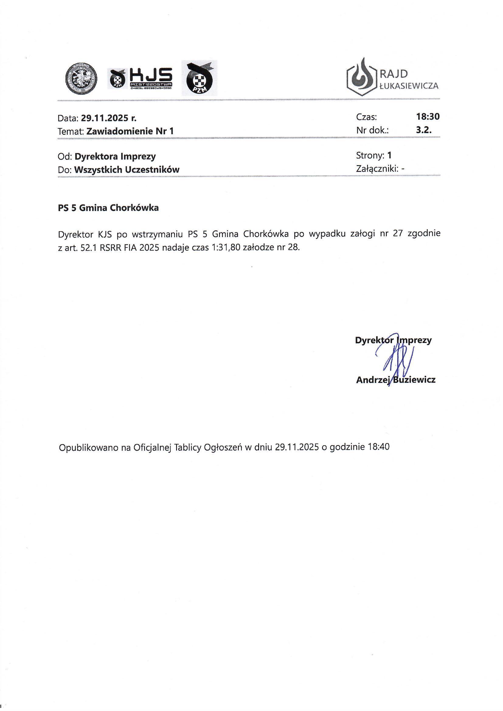 KOMUNIKAT NR 1