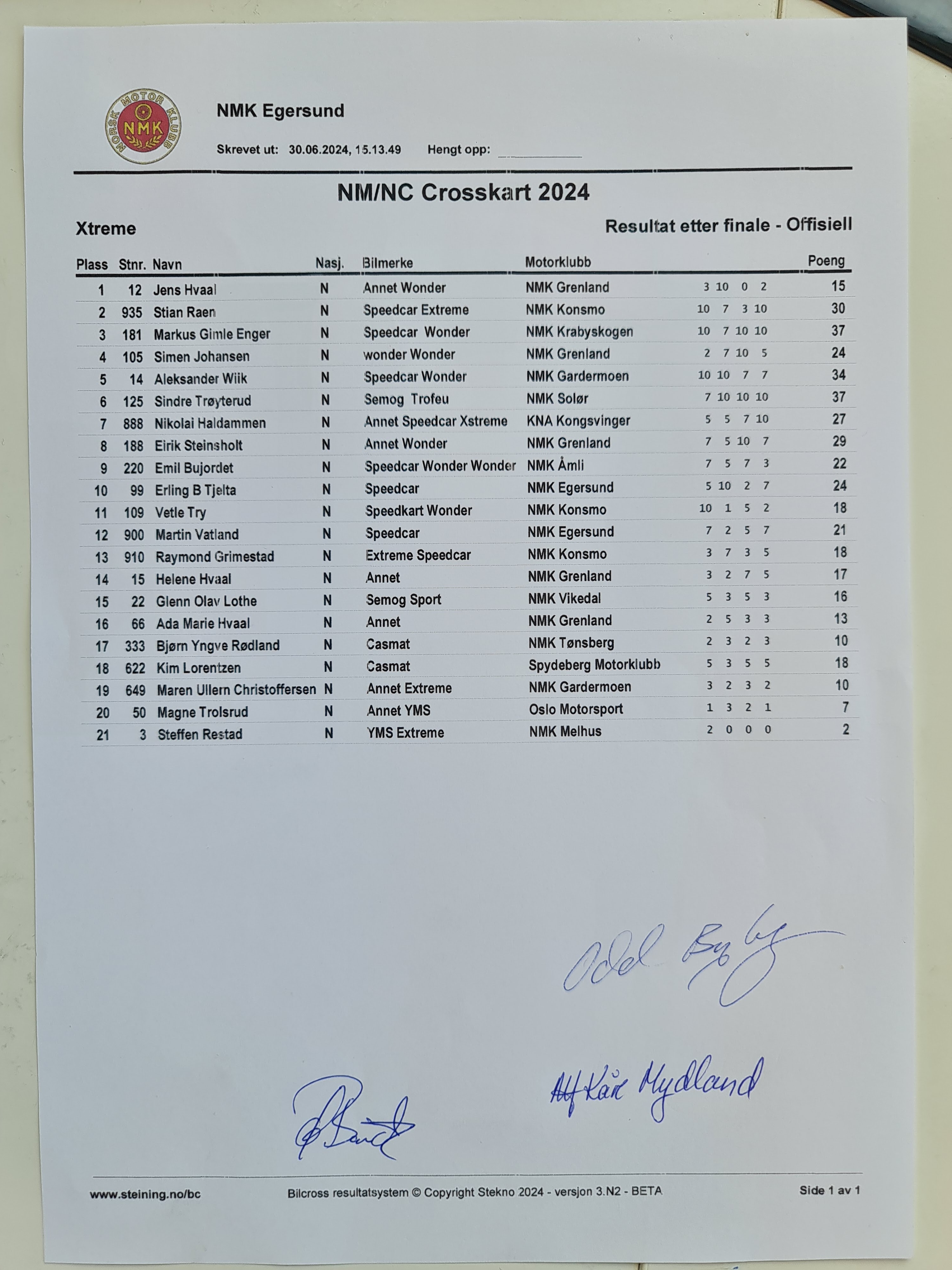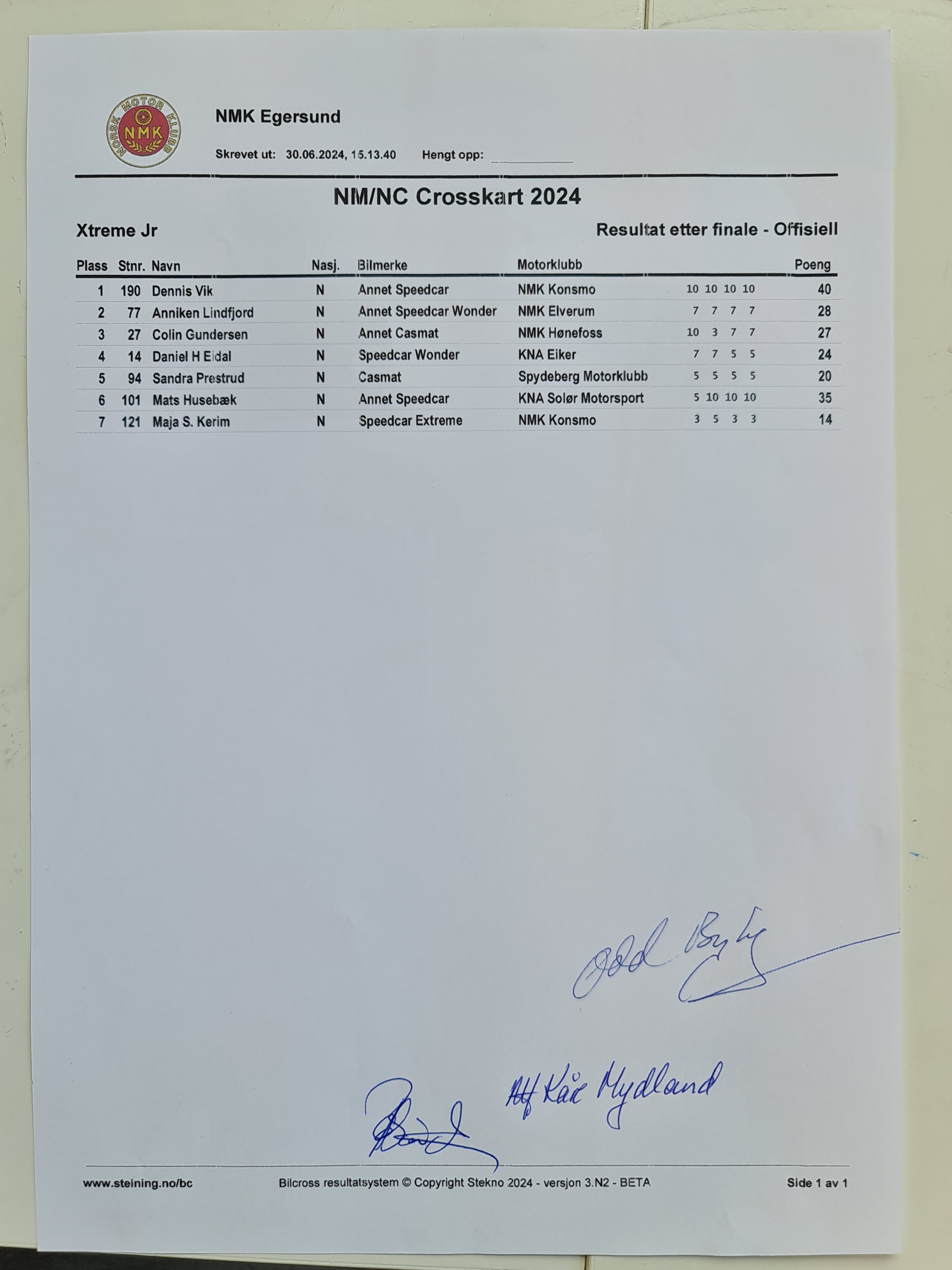 Offisiell resultatliste - Xtreme Jr