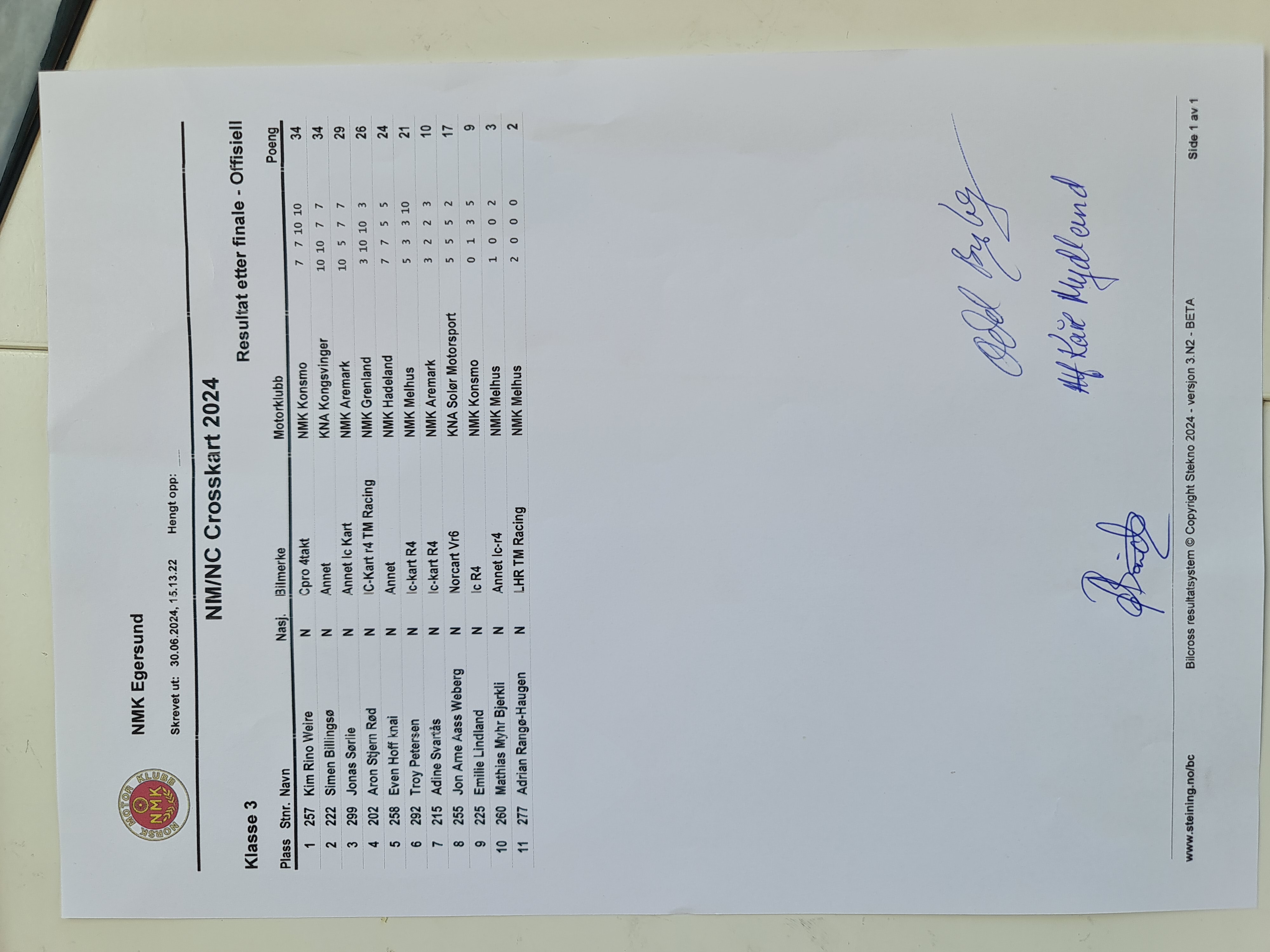 Offisiell resultatliste - Klasse 3