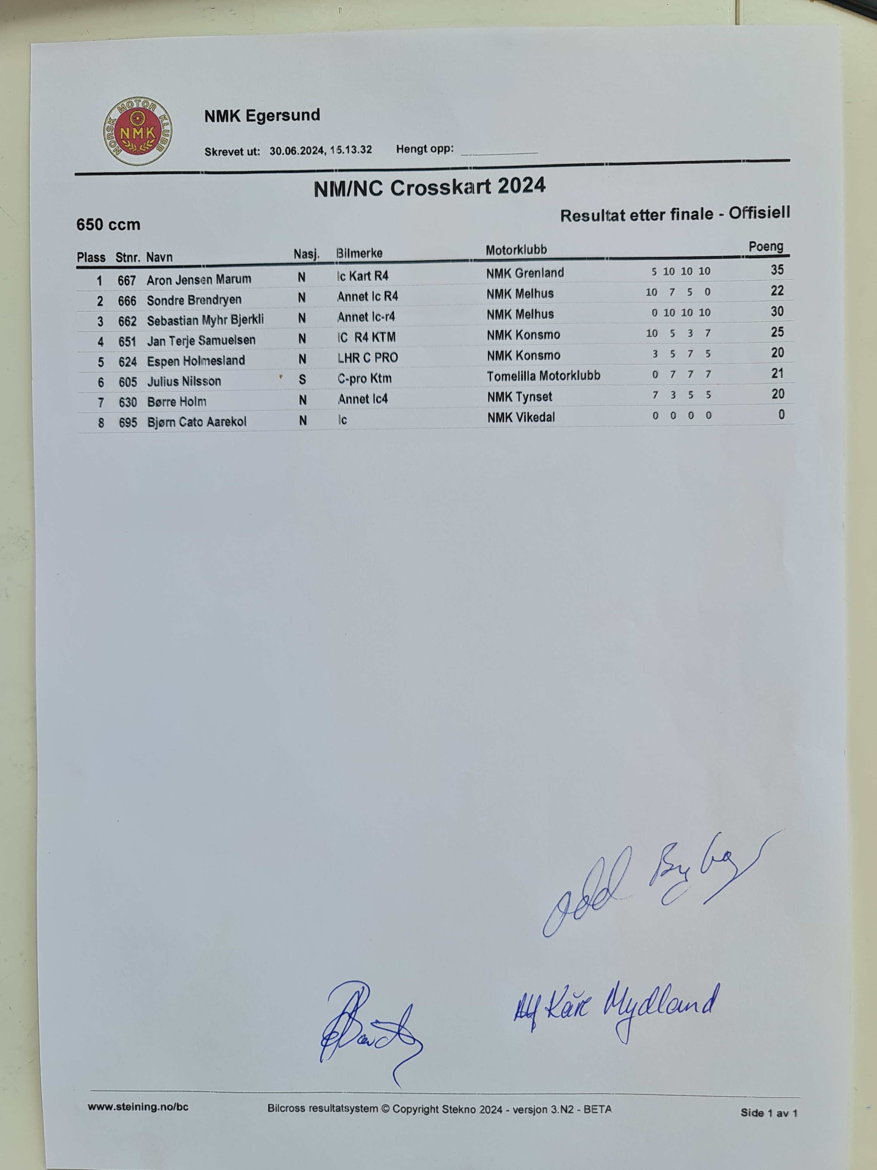 Offisiell resultatliste - 650