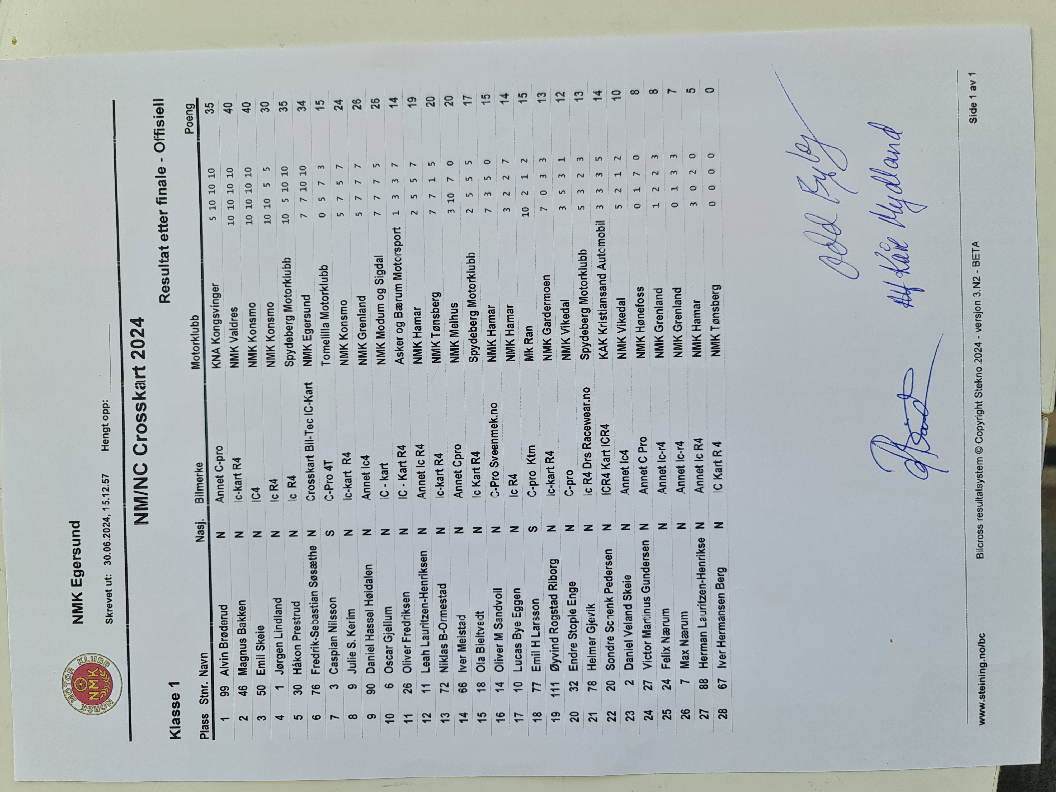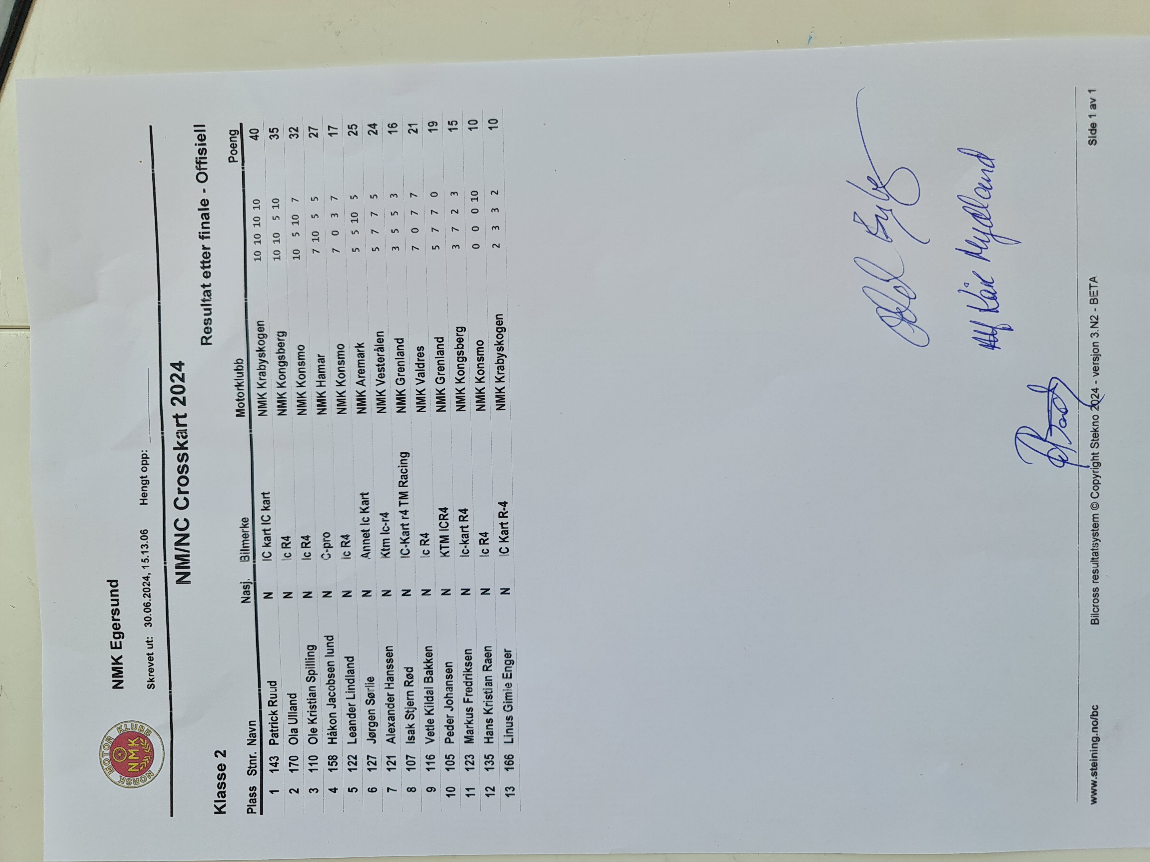Offisiell resultatliste - Klasse 2