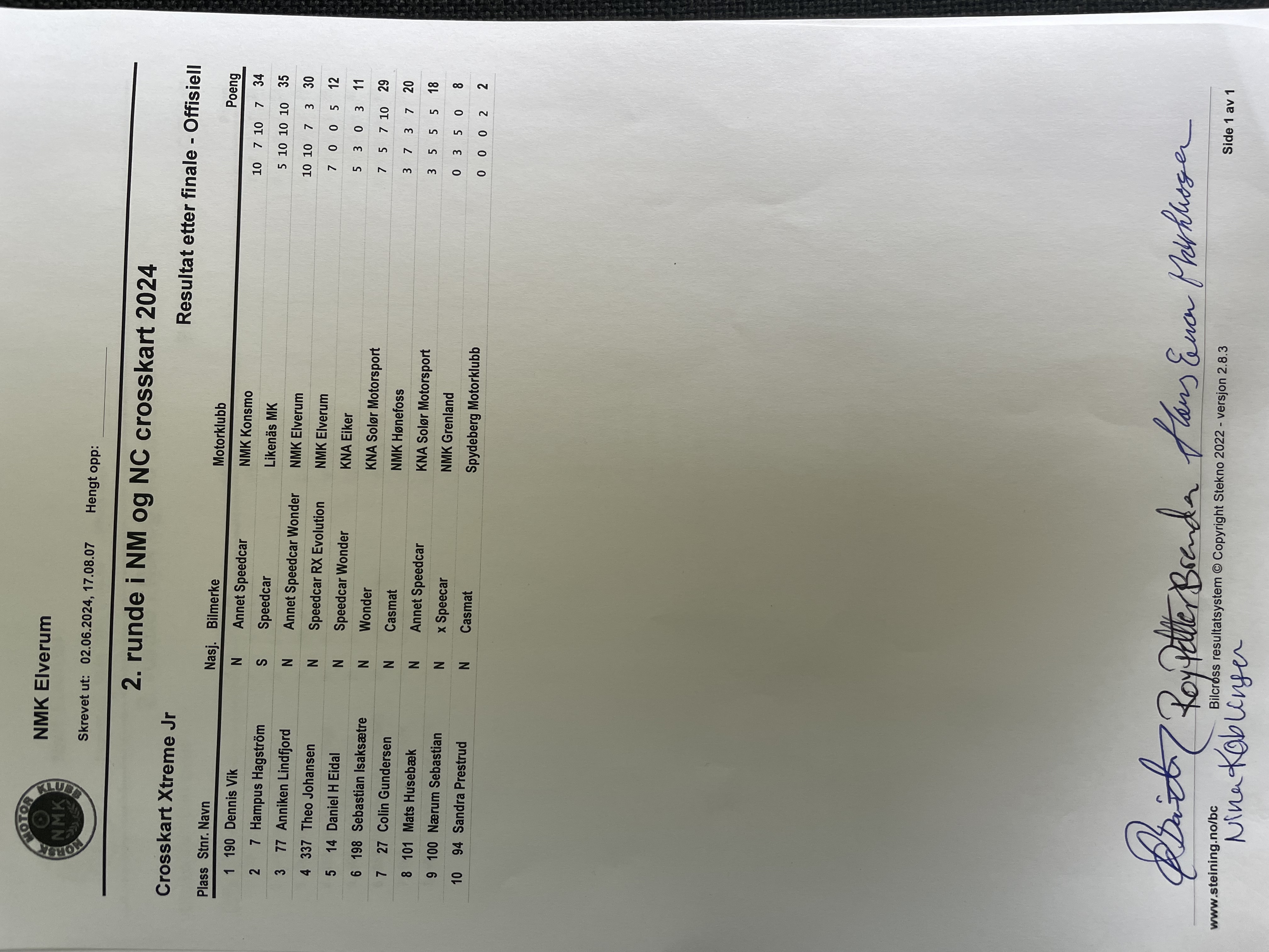 Offisiell resultatliste - Klasse 2